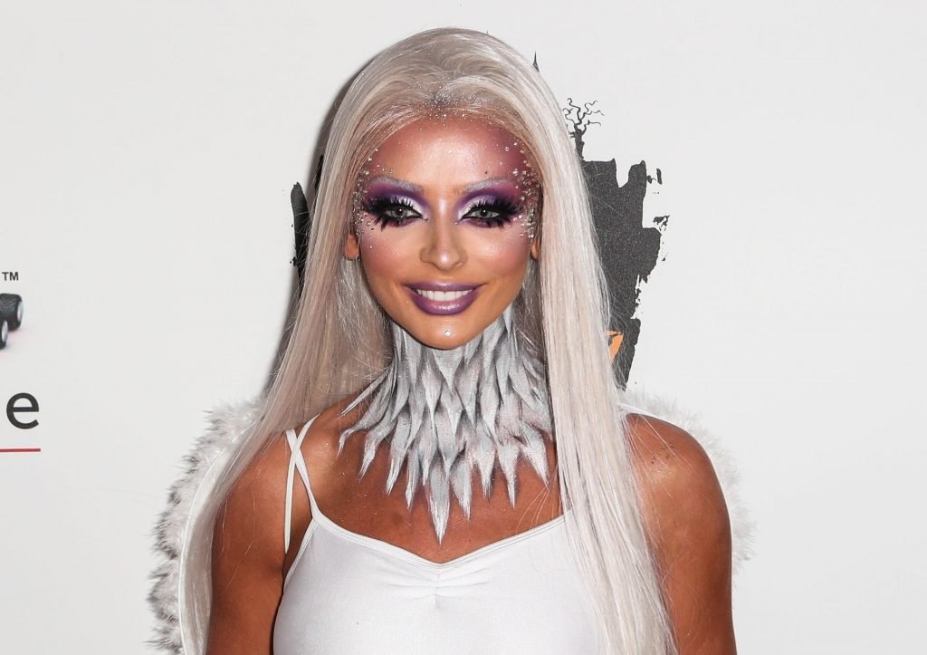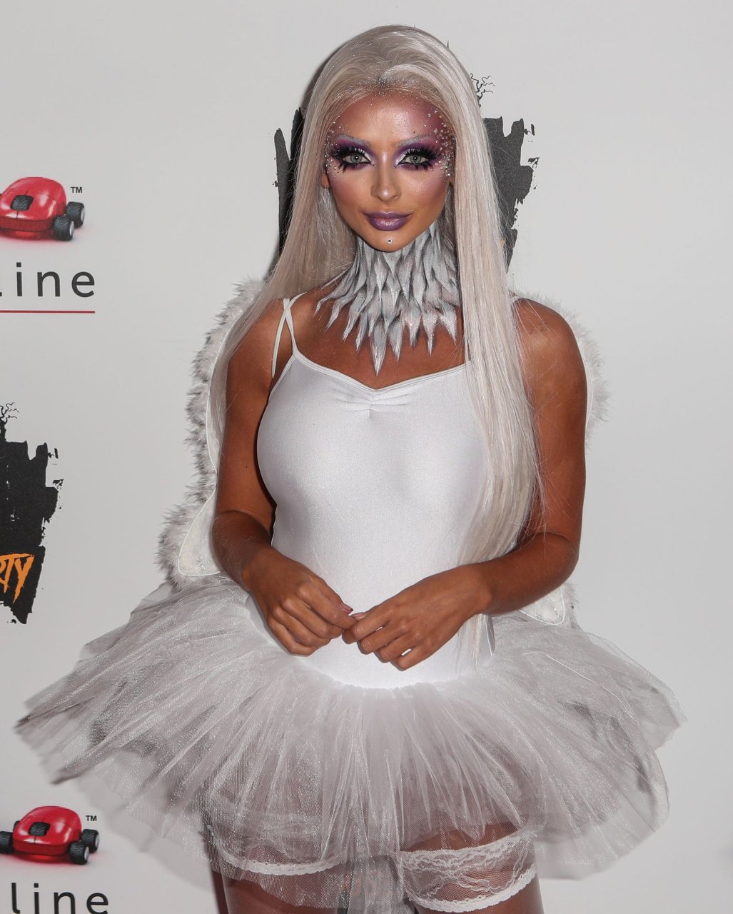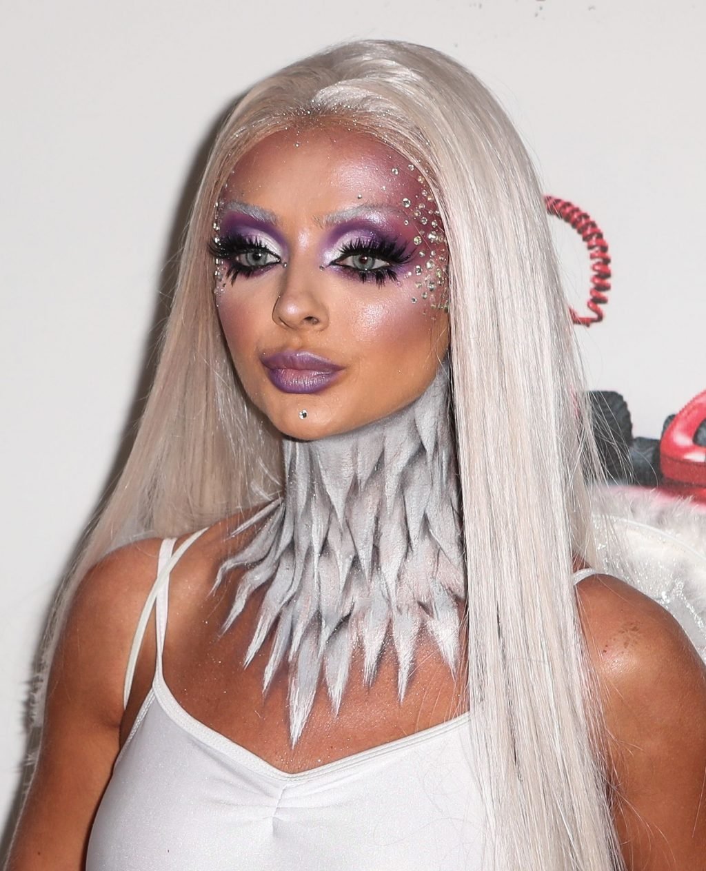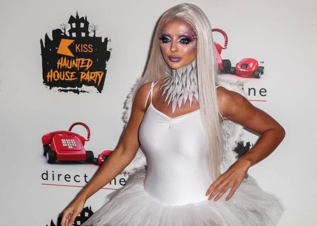 Makeup artist and reality TV show contestant Kady McDermott exhibe son costume d’Halloween innocent à la KISS Haunted House Party à la SSE Arena, Wembley, le 25/10/2019.