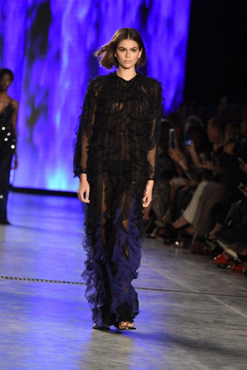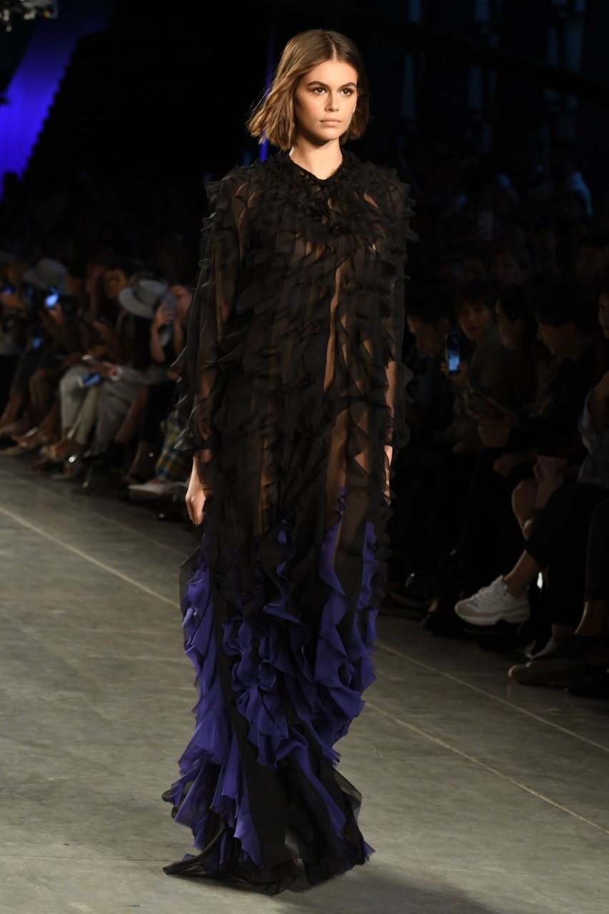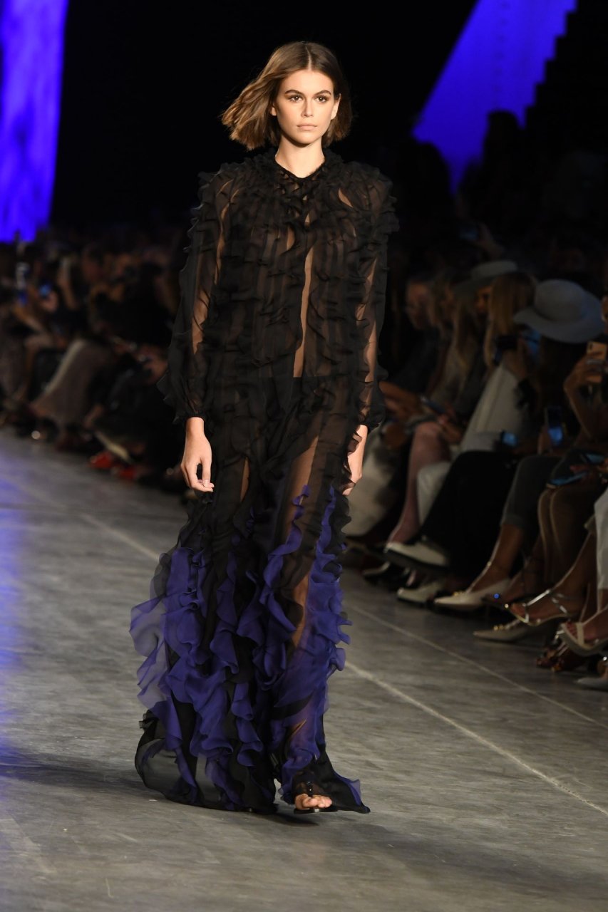 Model Kaia Gerber (18) a montré ses seins au défilé de mode Alberta Ferretti Printemps/Été 2020 lors de la Fashion Week de Milan, le 18/09/2019.
