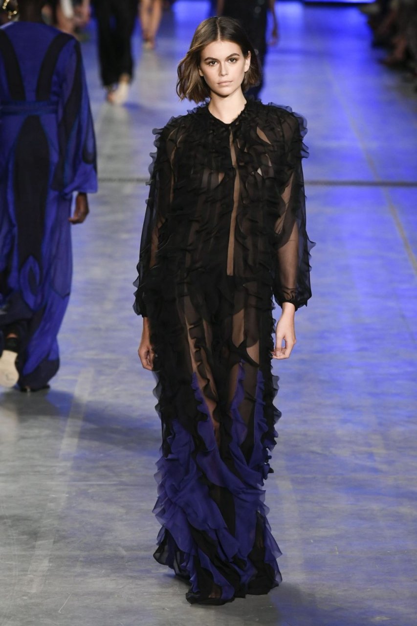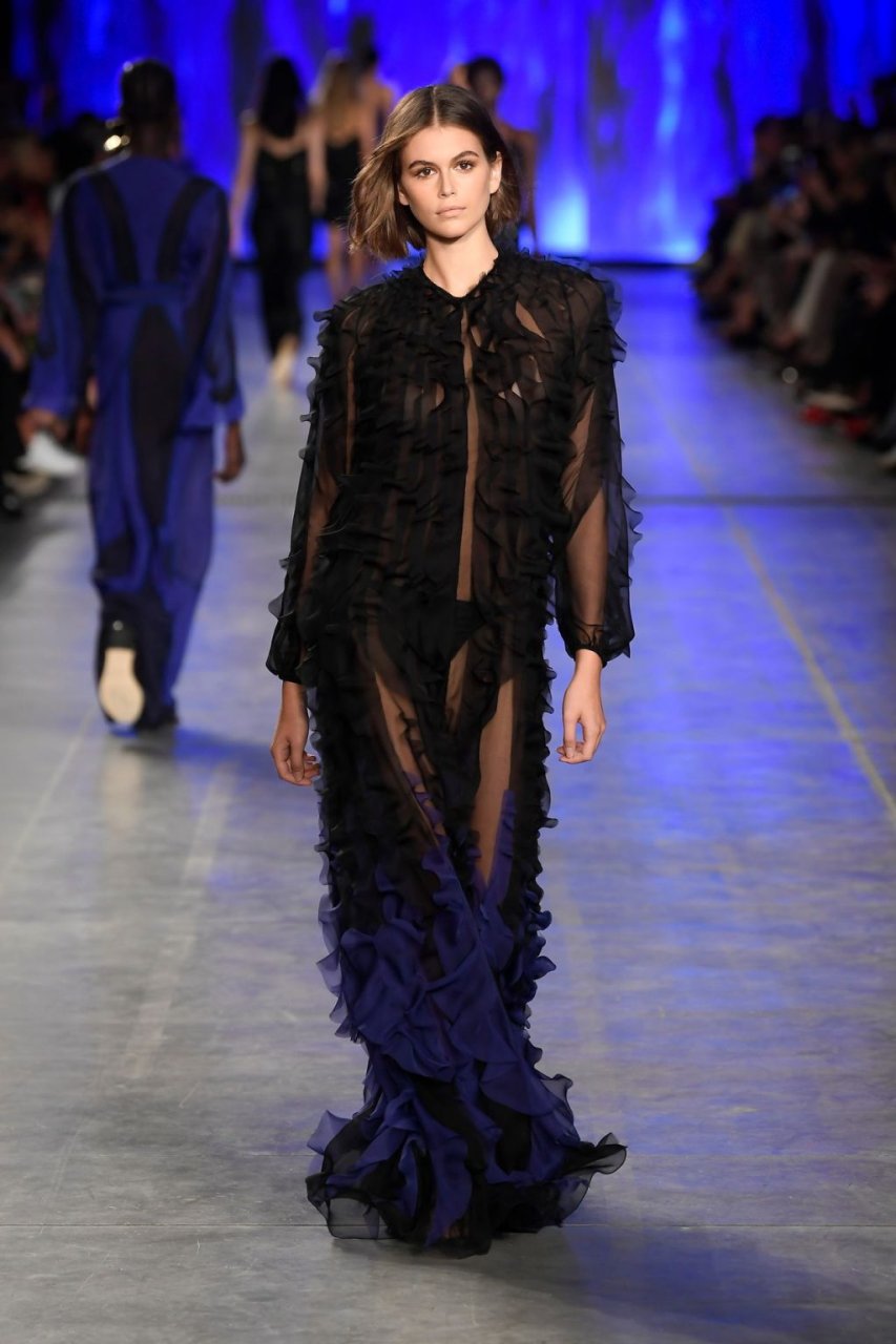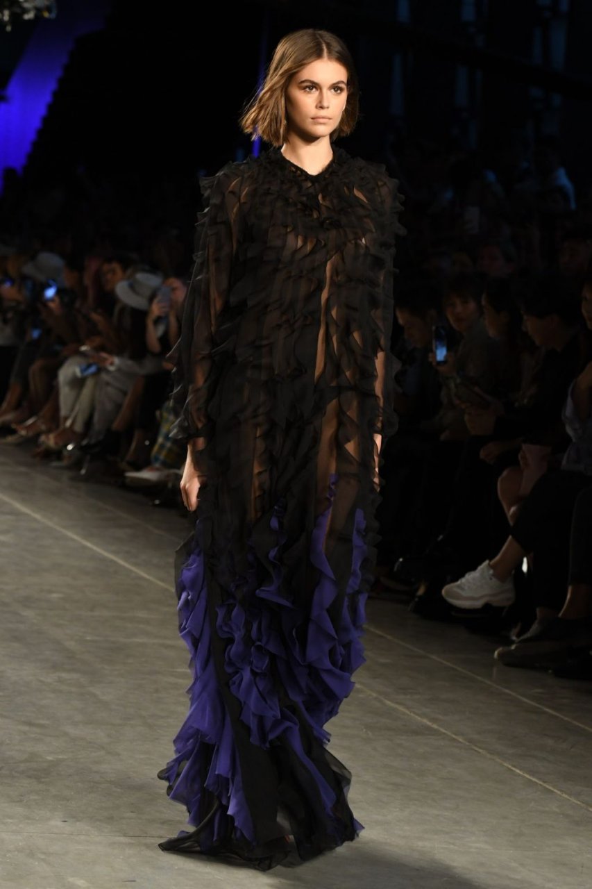 Model Kaia Gerber (18) a montré ses seins au défilé de mode Alberta Ferretti Printemps/Été 2020 lors de la Fashion Week de Milan, le 18/09/2019.
