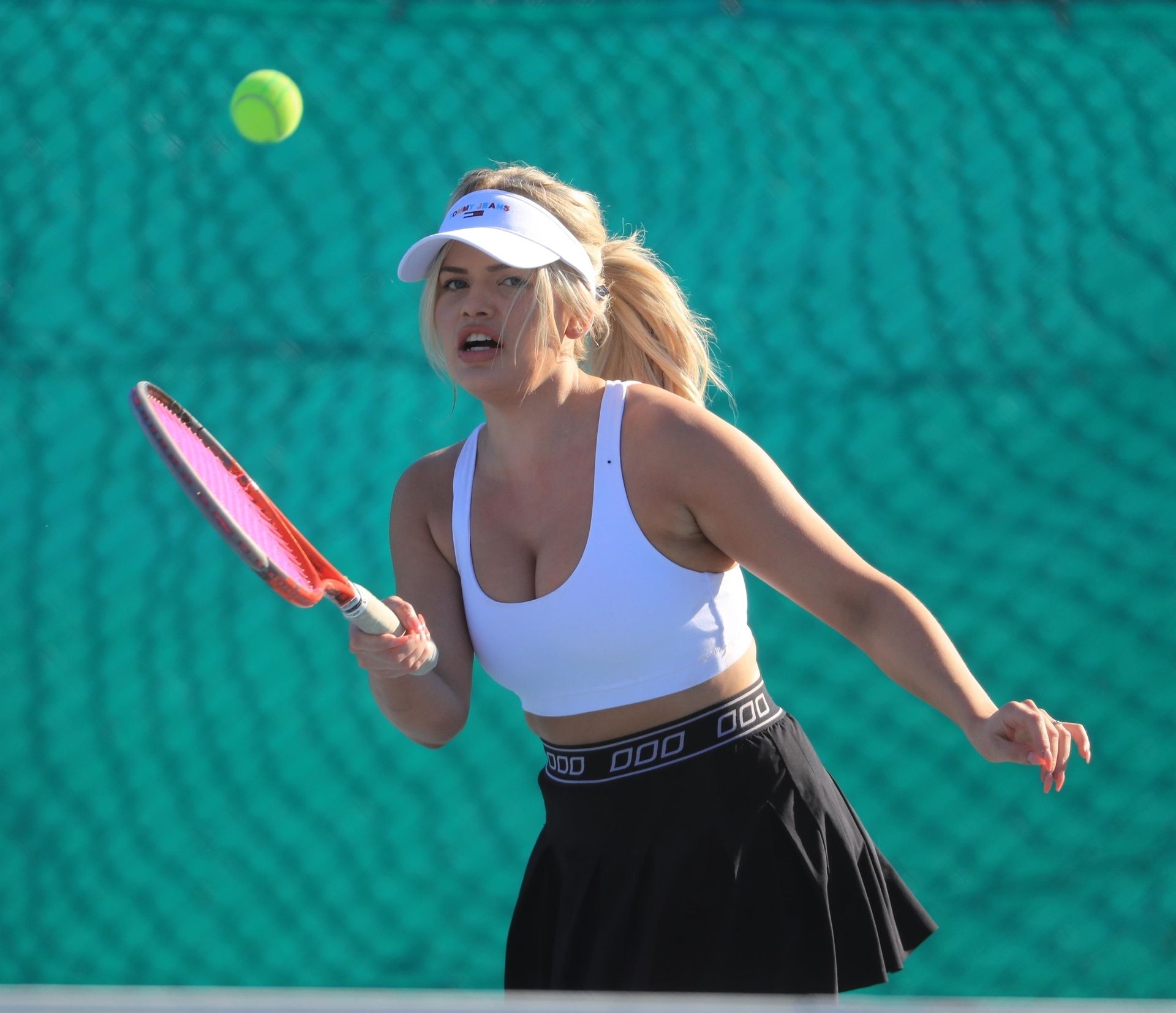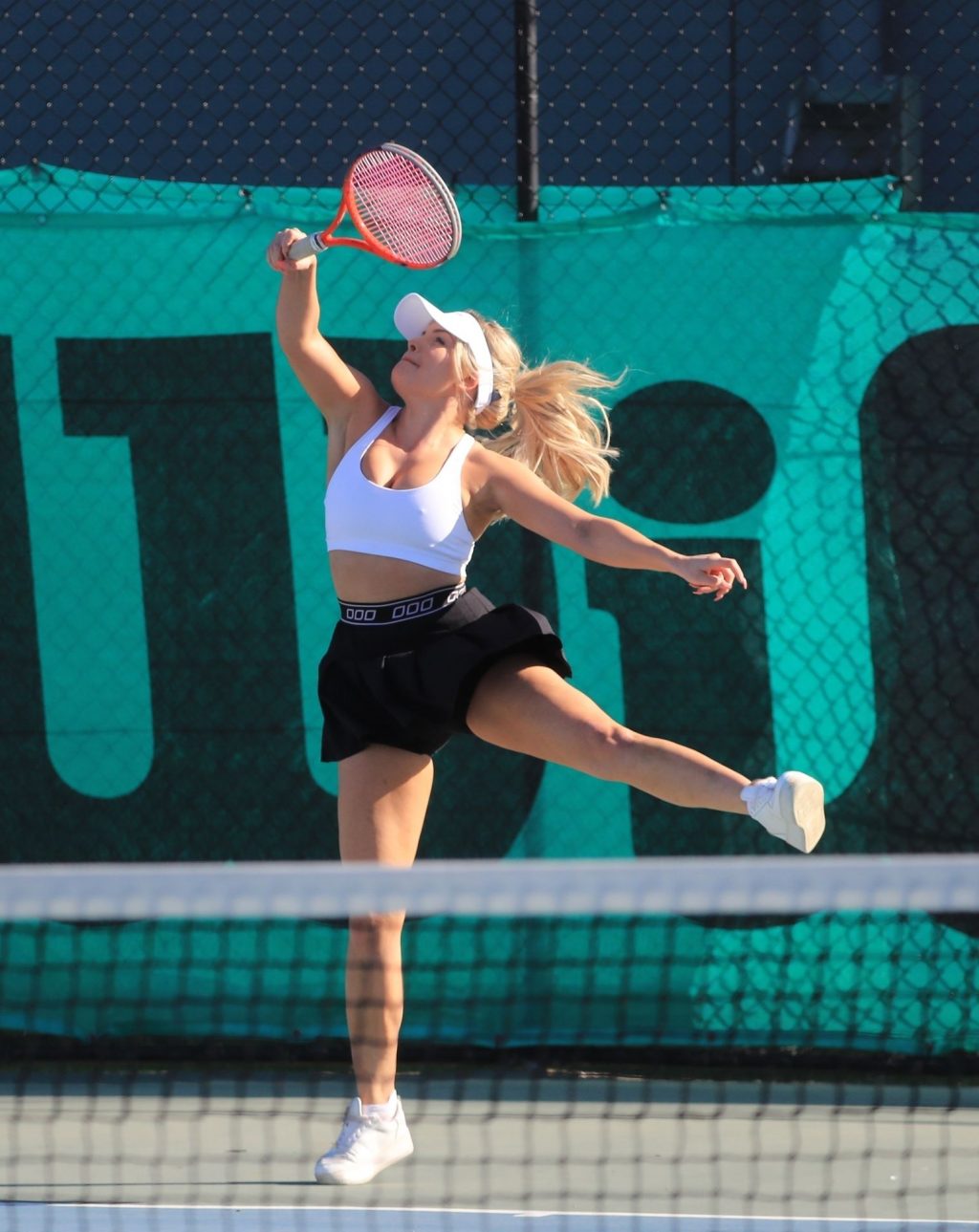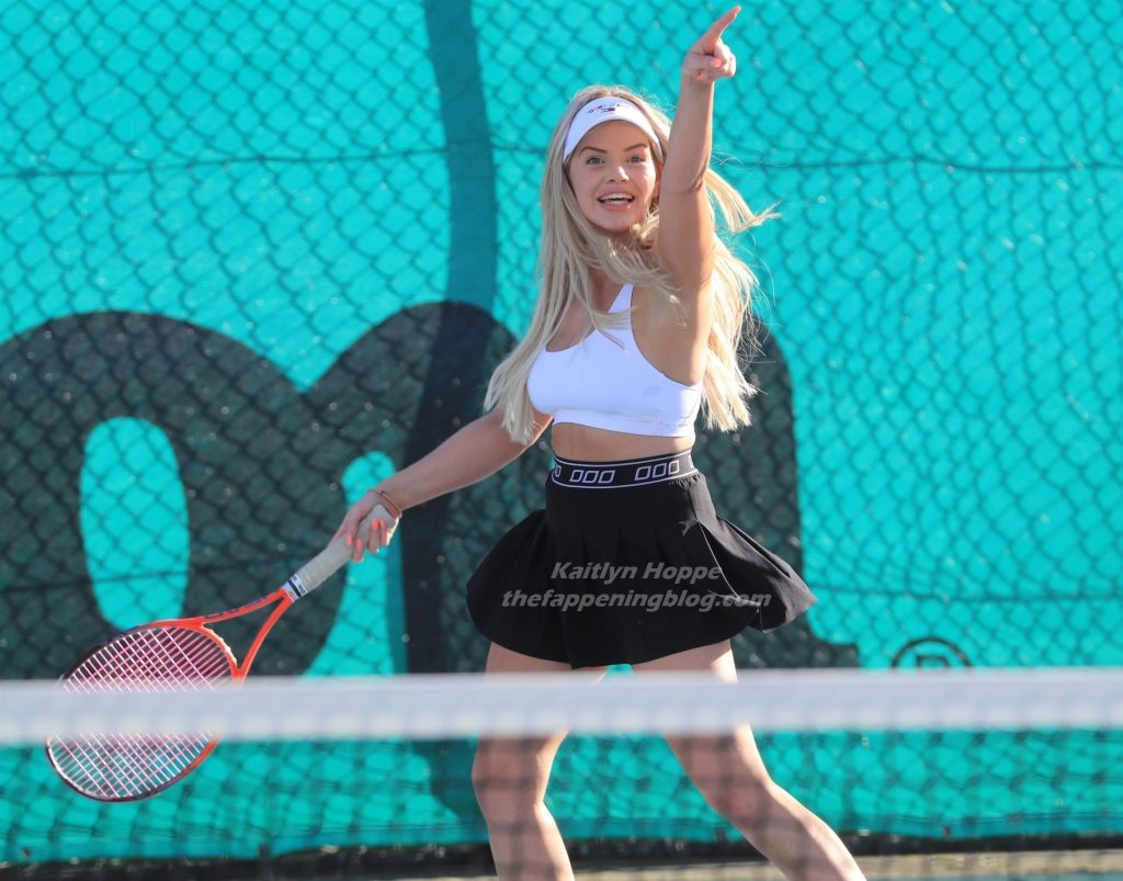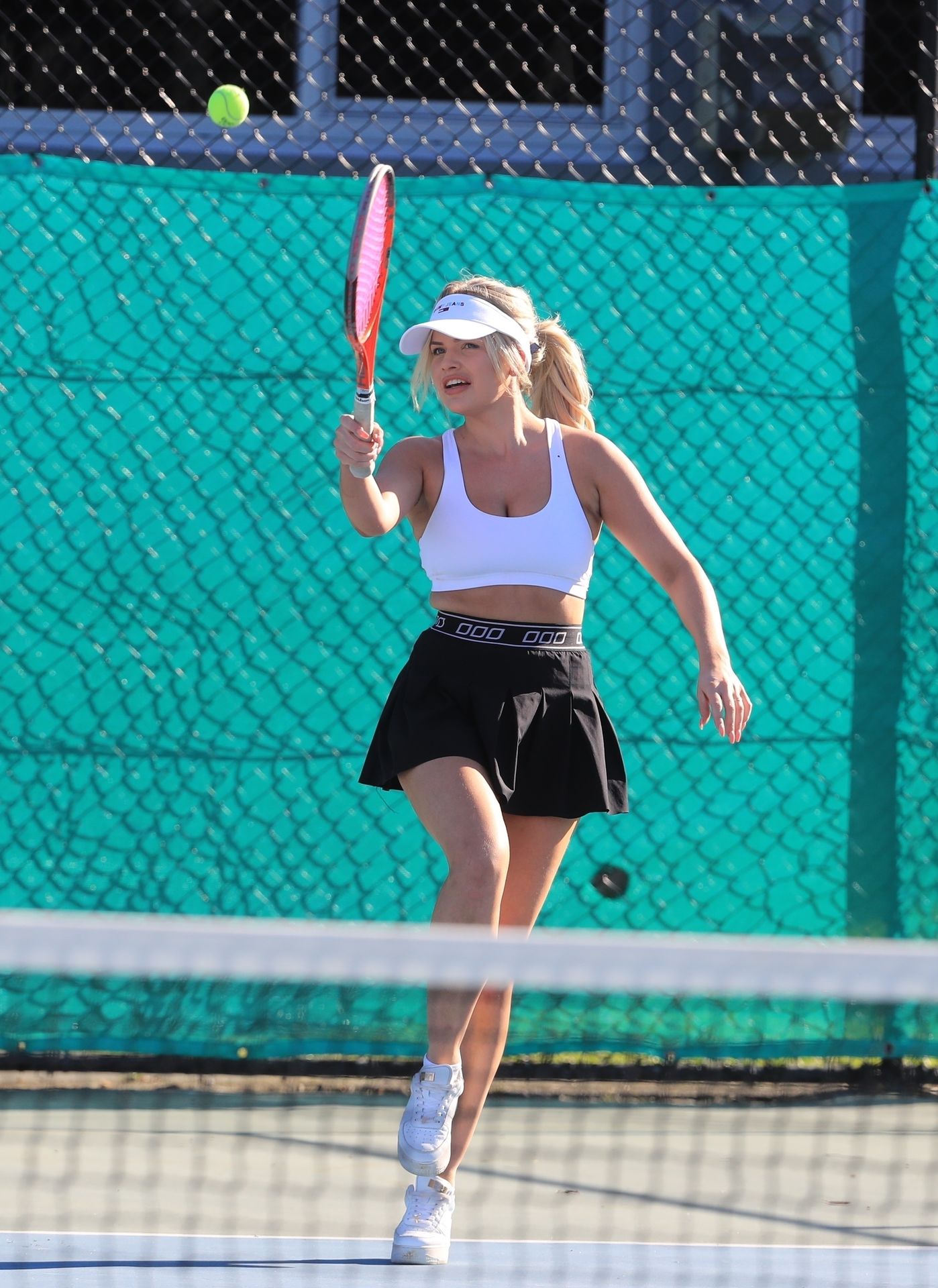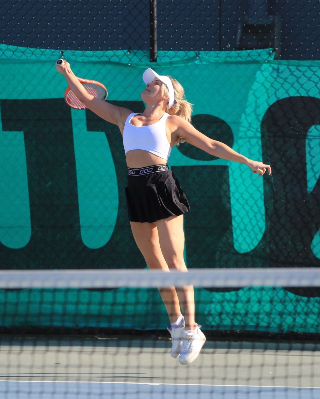 The Bachelor’s Kaitlyn Hoppe exhibe ses courbes alors qu’elle est photographiée en train de profiter d’un match de tennis avec une amie sur la Gold Coast, 17/09/2020.