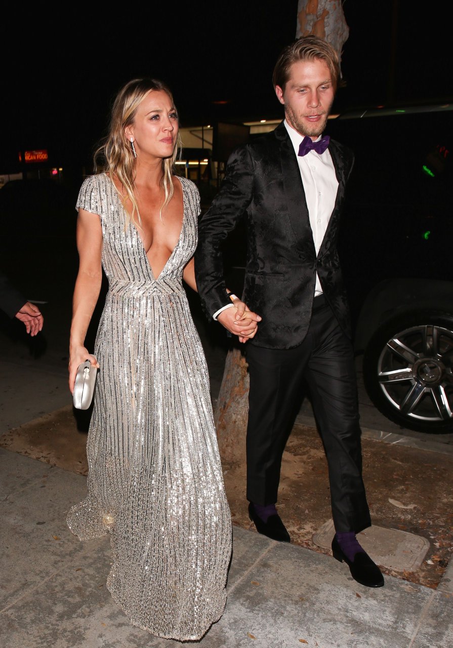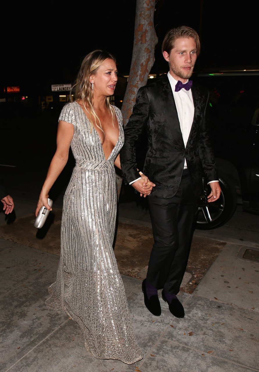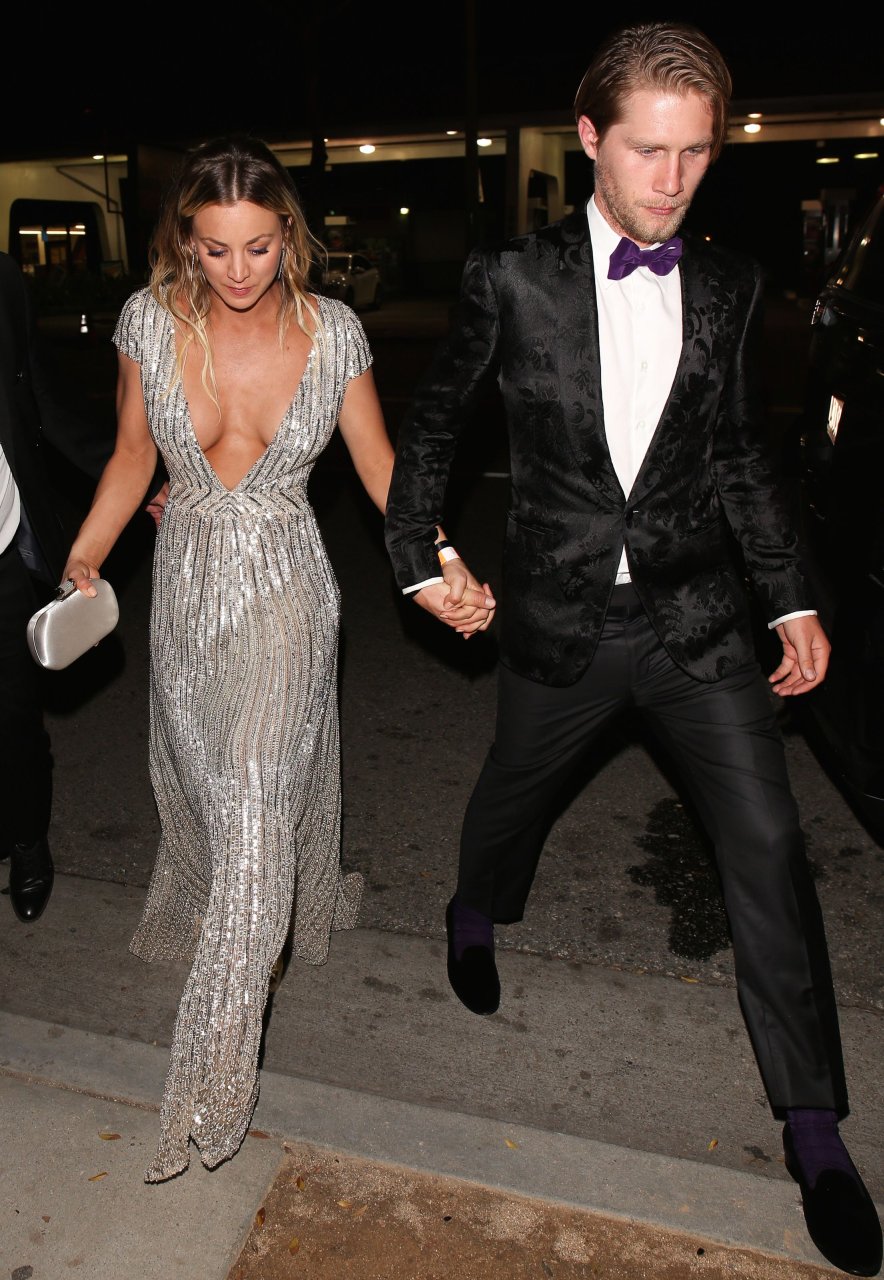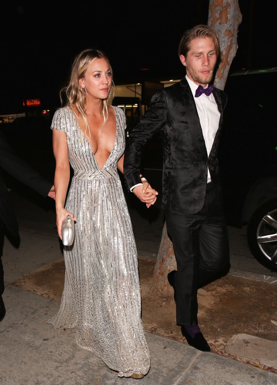 Kaley Cuoco porte une robe argentée sexy lors de la 18e fête annuelle post-Golden Globes à Beverly Hills, le 08/01/17. Kaley Cuoco est une actrice américaine. Âge : 31 ans (née le 30 novembre 1985).