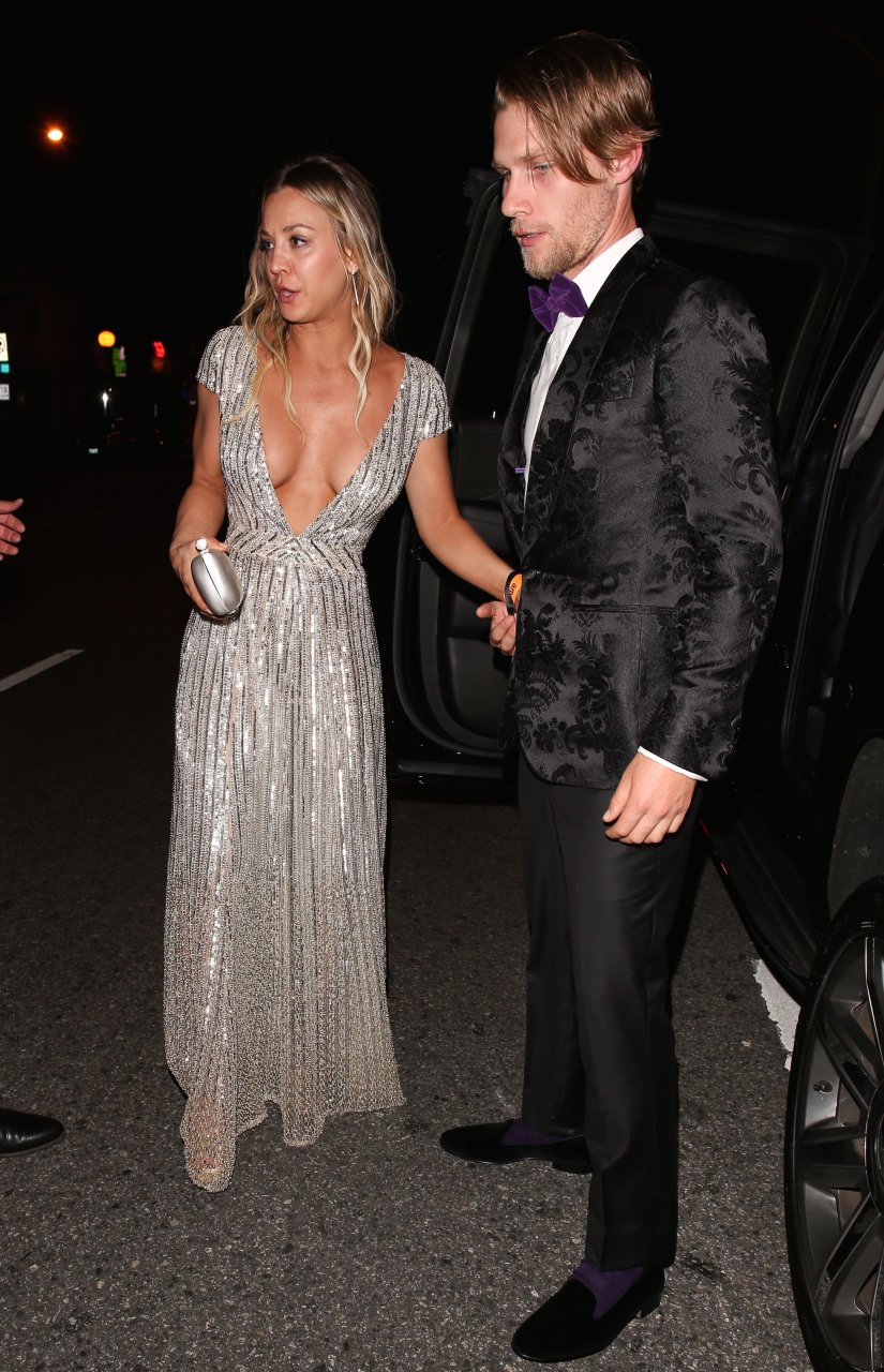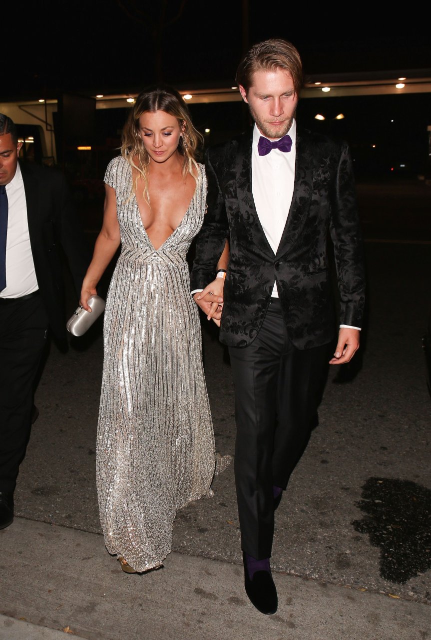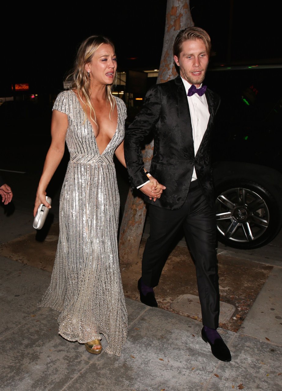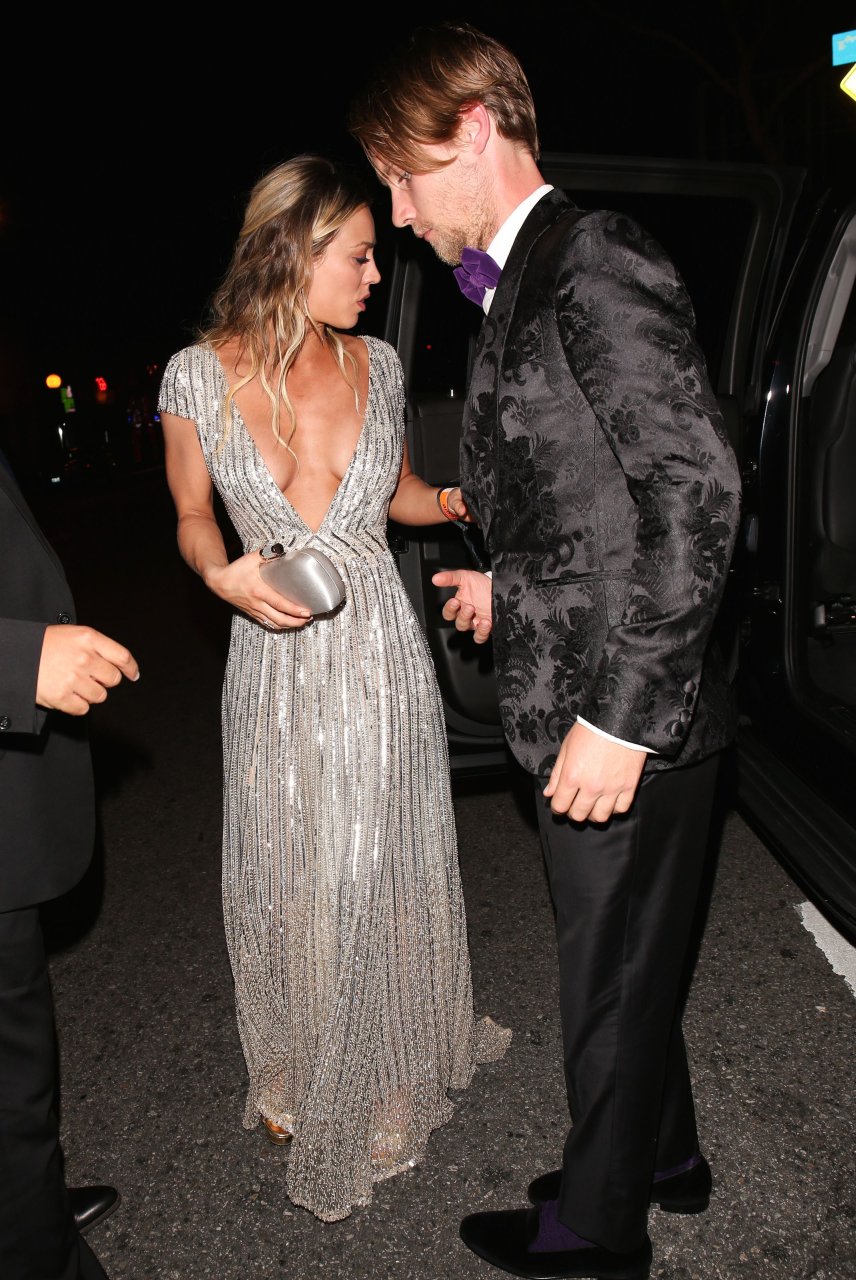 Kaley Cuoco porte une robe argentée sexy lors de la 18e fête annuelle post-Golden Globes à Beverly Hills, le 08/01/17. Kaley Cuoco est une actrice américaine. Âge : 31 ans (née le 30 novembre 1985).