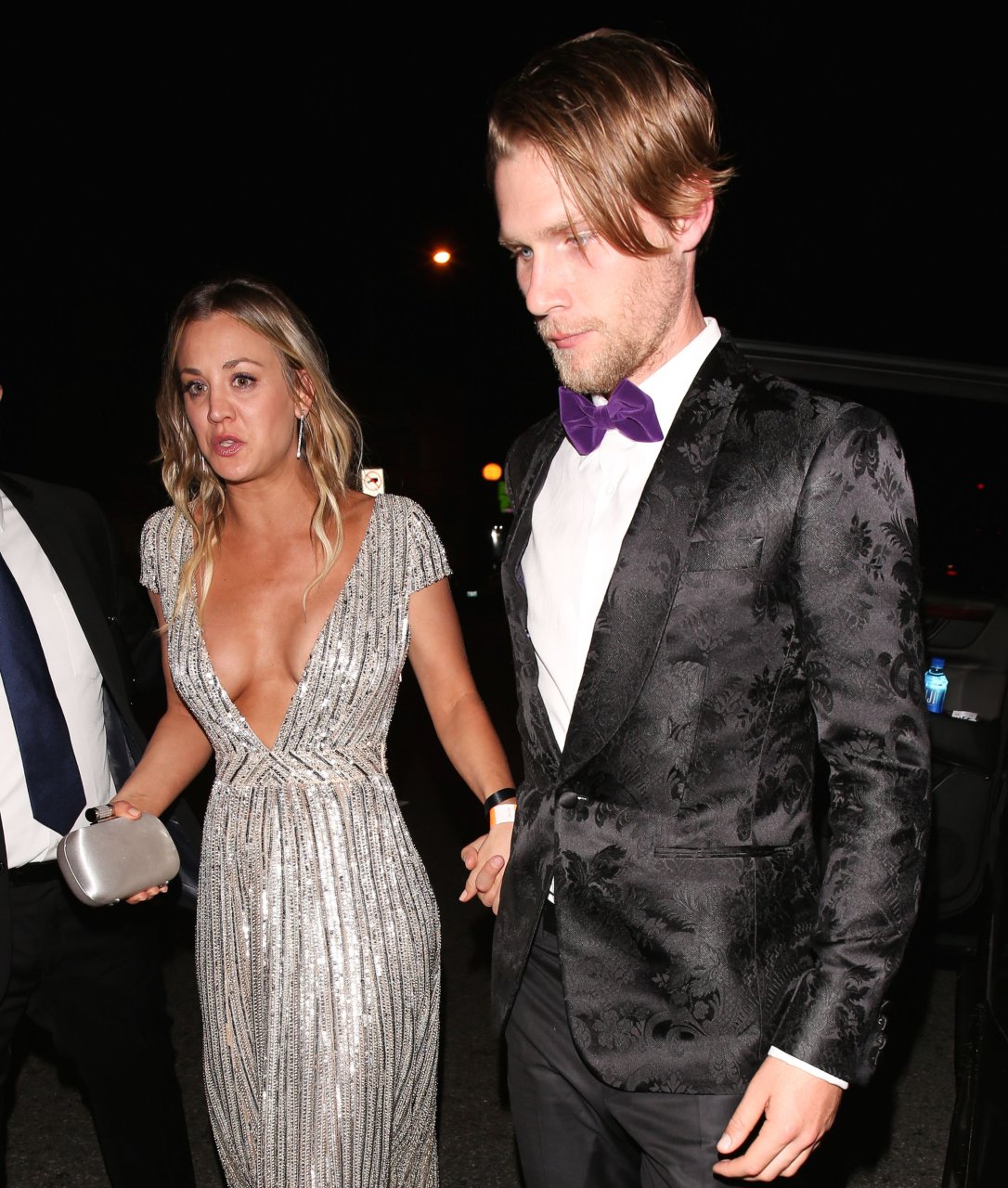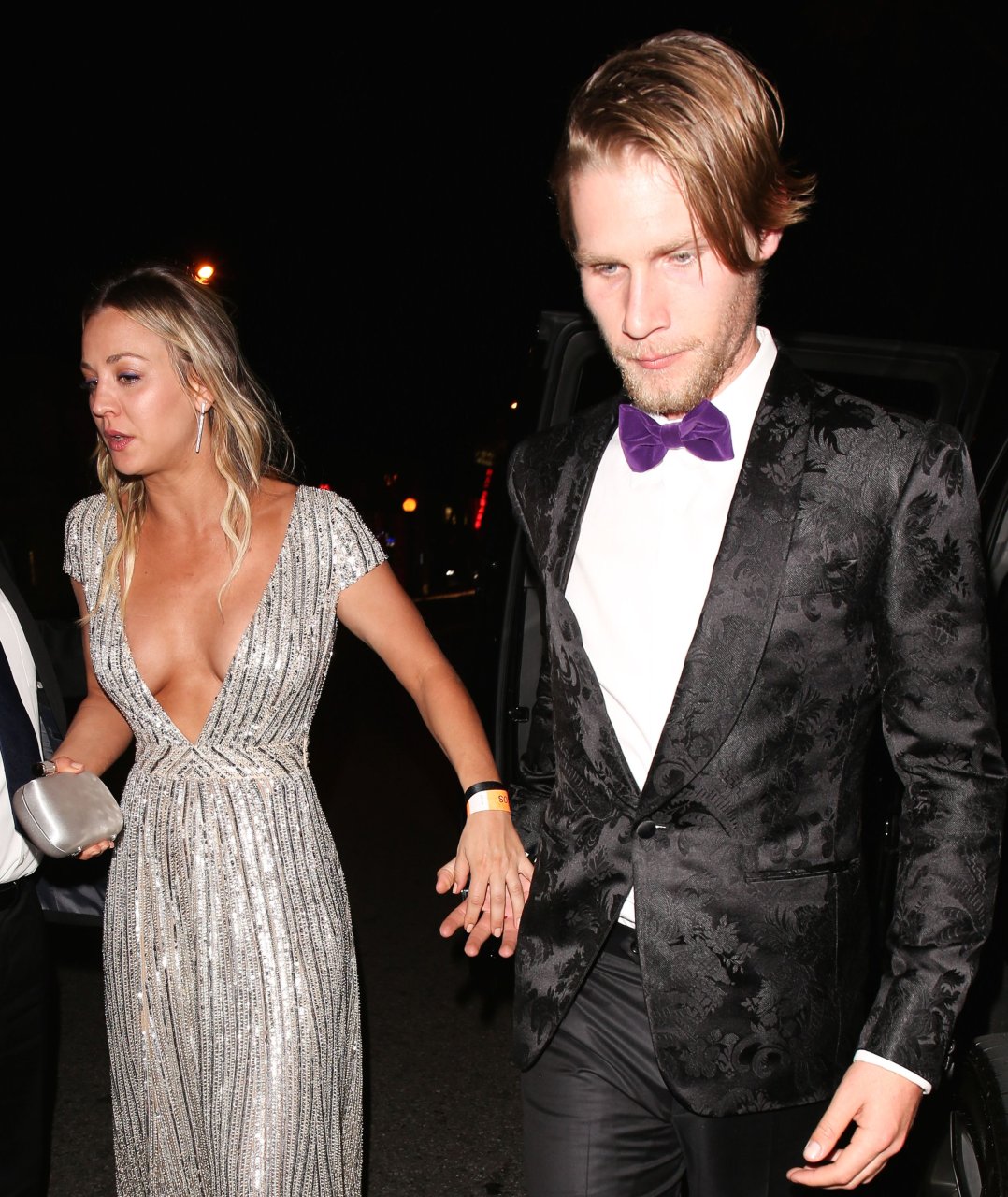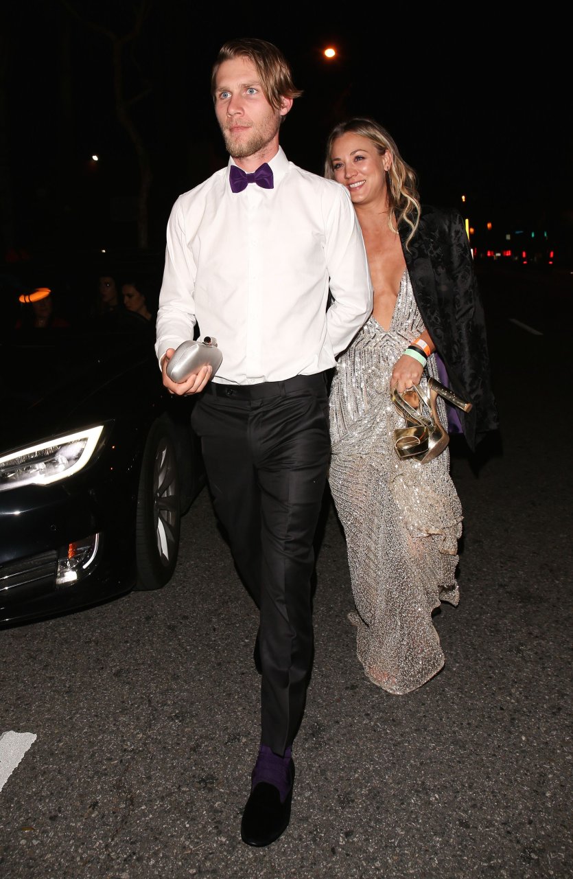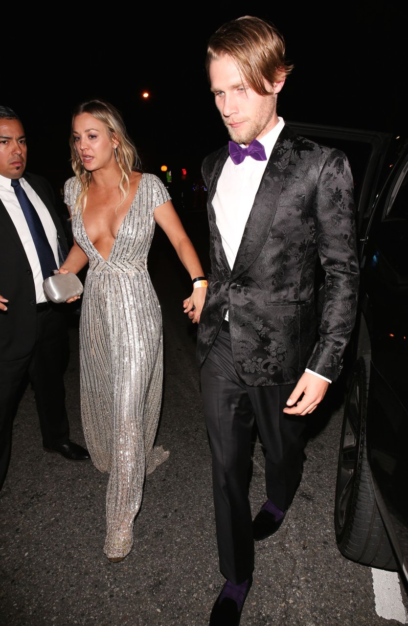 Kaley Cuoco porte une robe argentée sexy lors de la 18e fête annuelle post-Golden Globes à Beverly Hills, le 08/01/17. Kaley Cuoco est une actrice américaine. Âge : 31 ans (née le 30 novembre 1985).