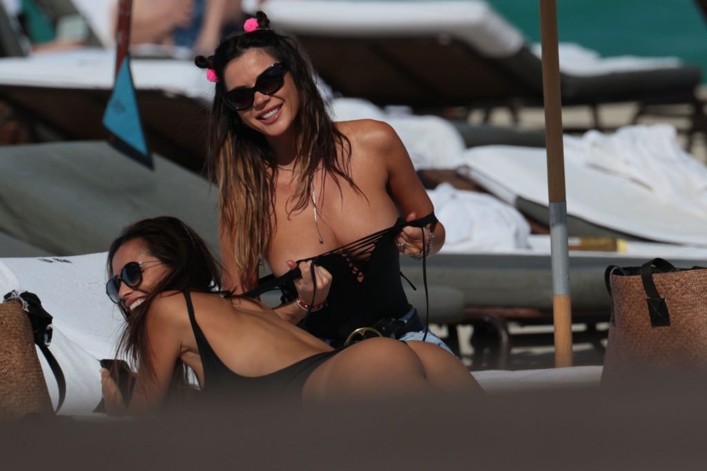 Karina Jelinek montre ses seins à la plage à Miami, 27/03/2017. Olga Karina Jelinek Yamaguchi est un mannequin, actrice et personnalité de la télévision originaire de Villa Maria. Âge : 36 ans (née le 22 mars 1981).