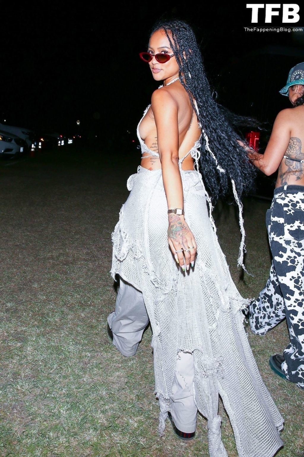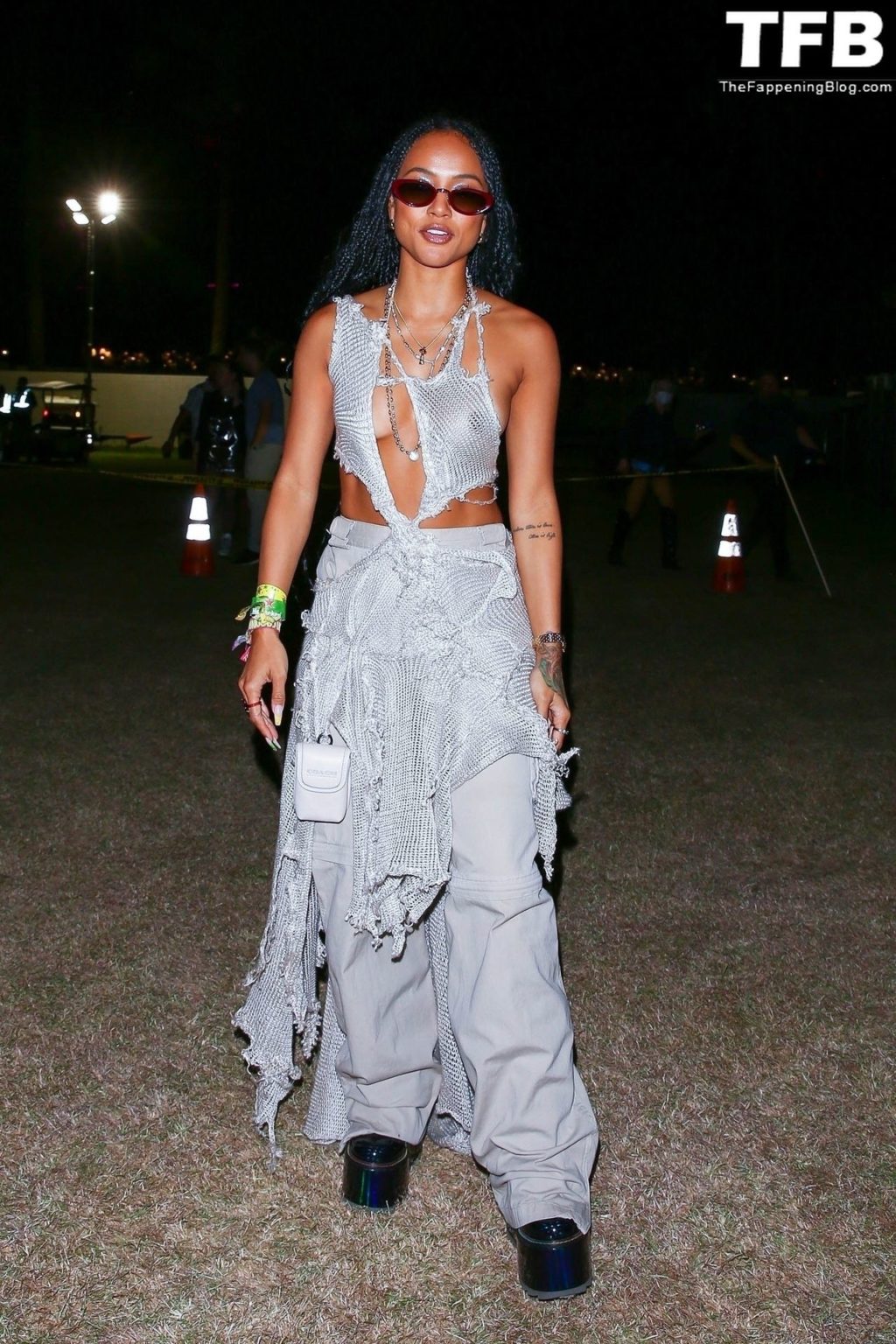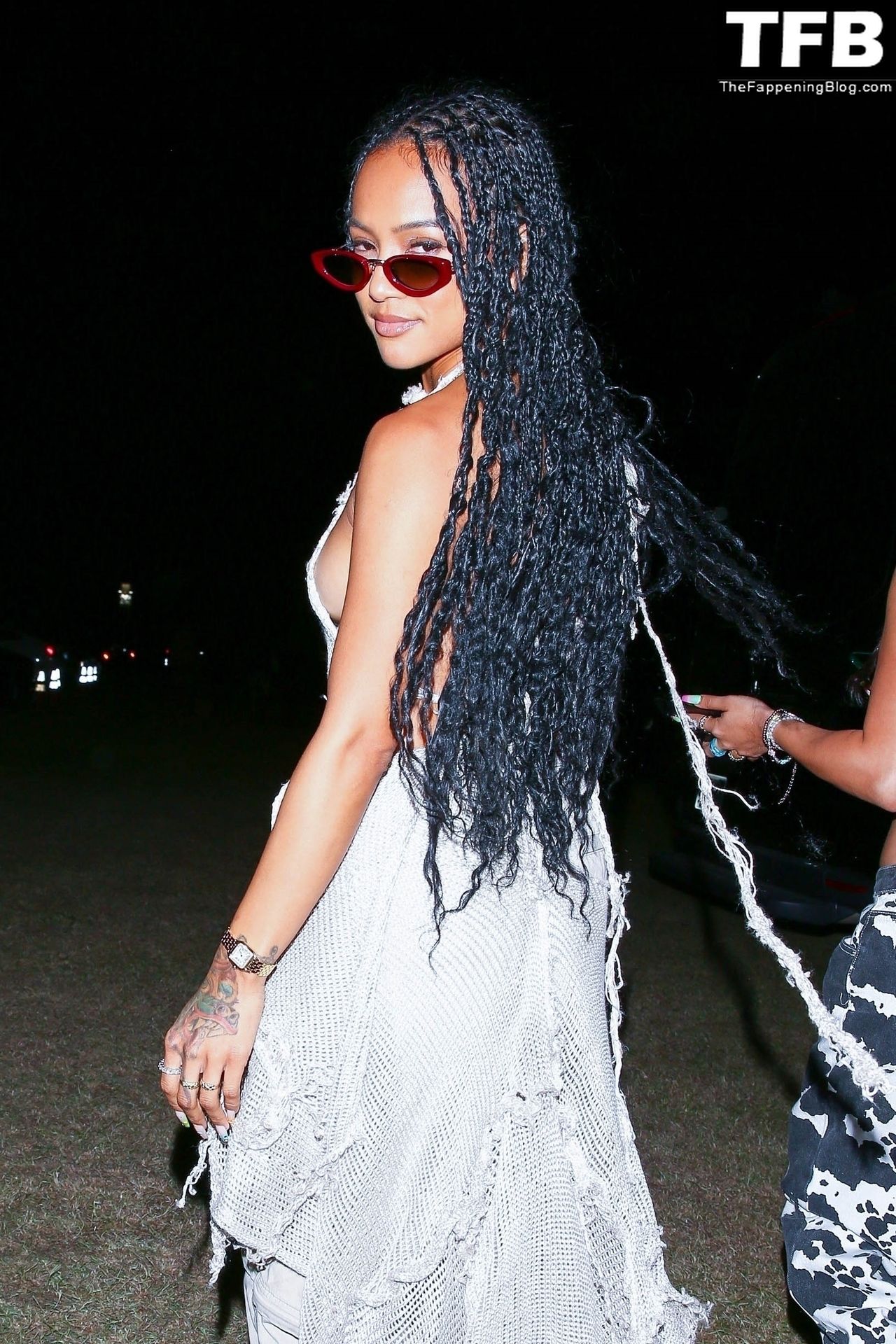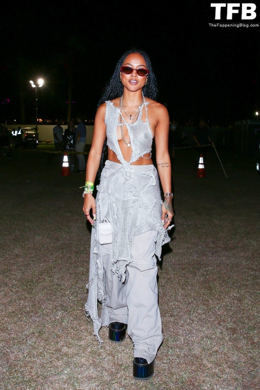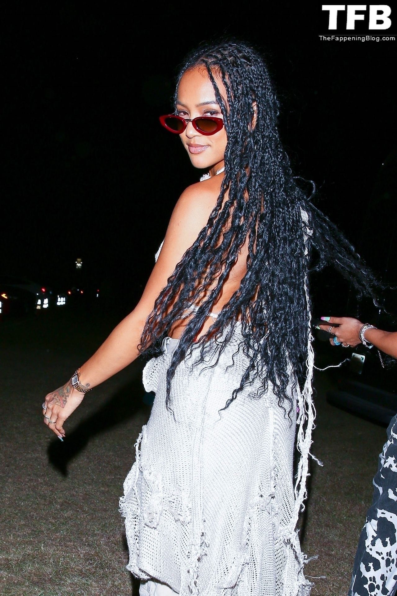 Karrueche Tran sans soutien-gorge sort du premier jour du Festival de musique et d’arts de la vallée de Coachella à Indio, 16/04/2022.