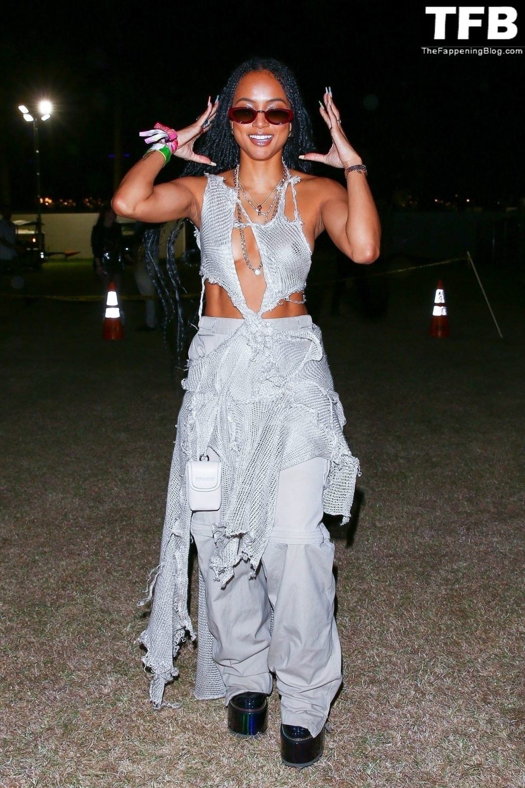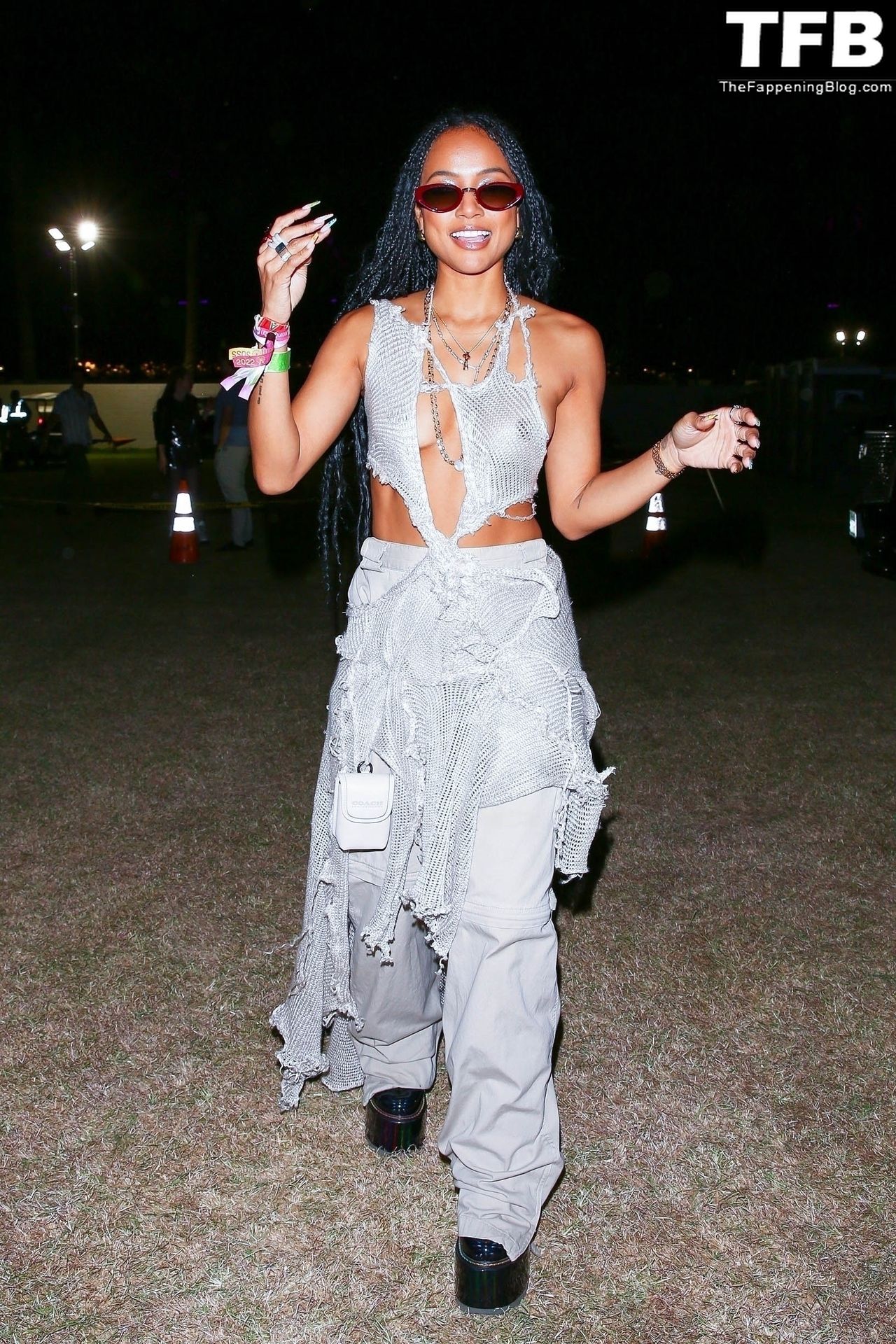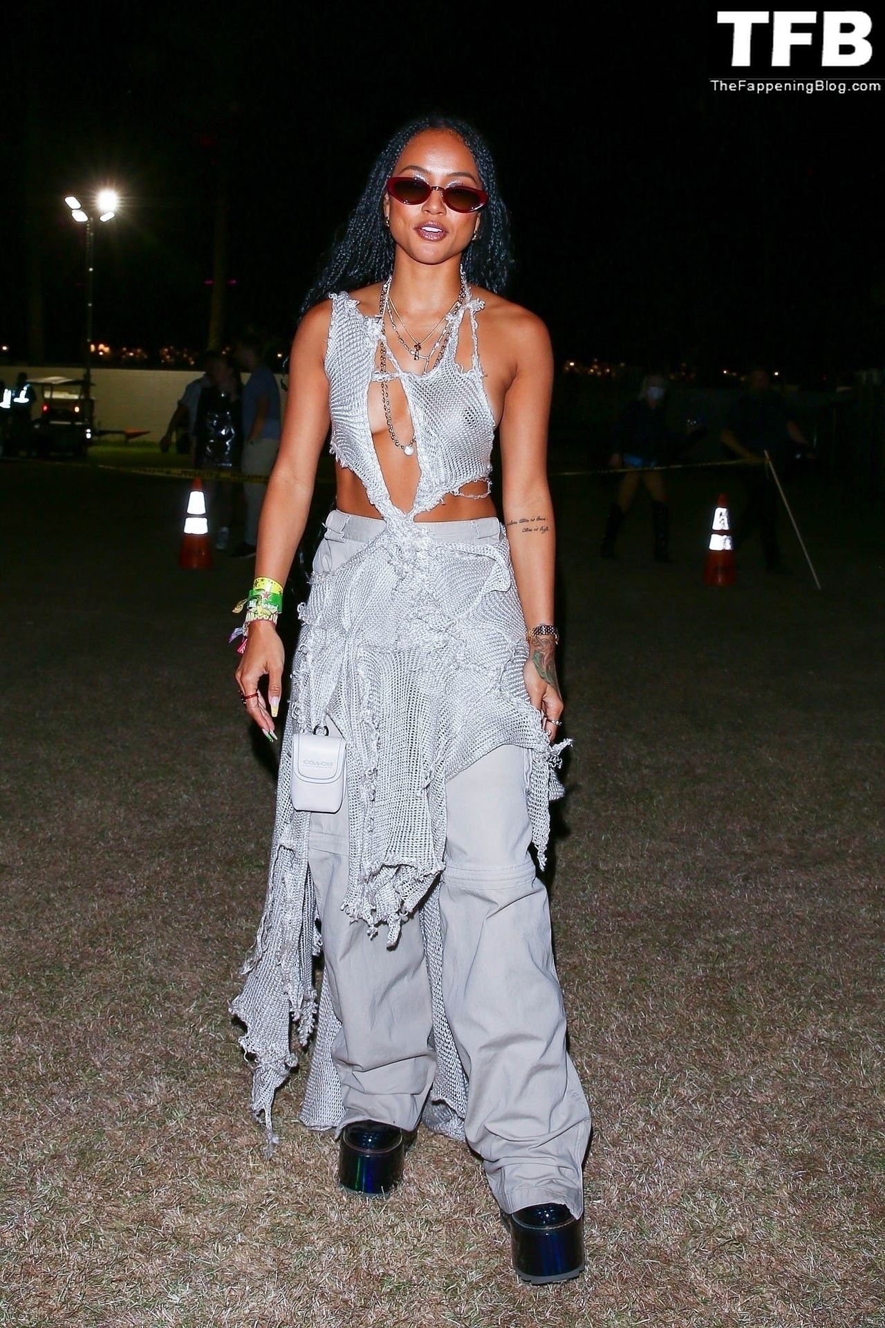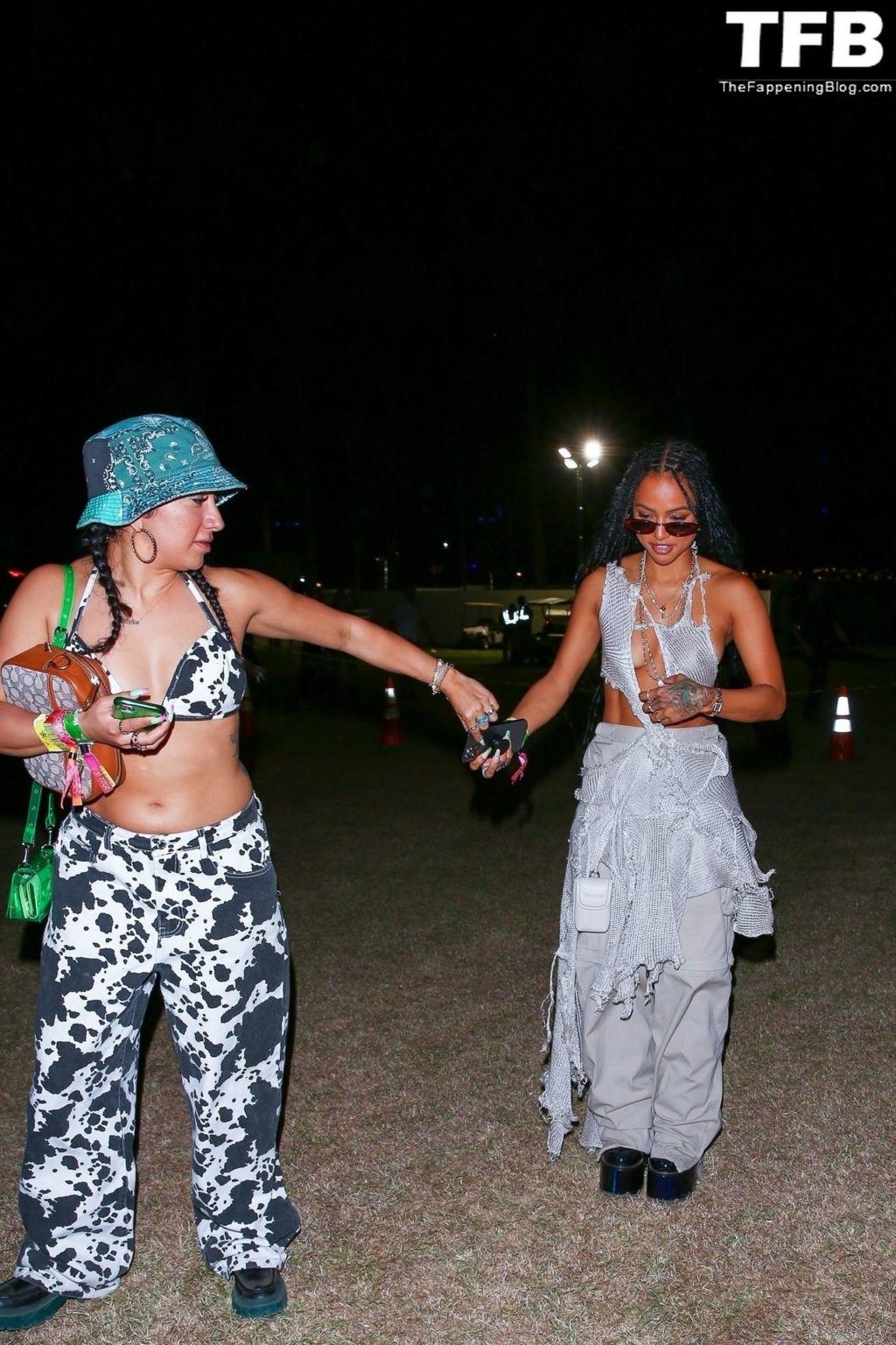 Karrueche Tran sans soutien-gorge sort du premier jour du Festival de musique et d’arts de la vallée de Coachella à Indio, 16/04/2022.