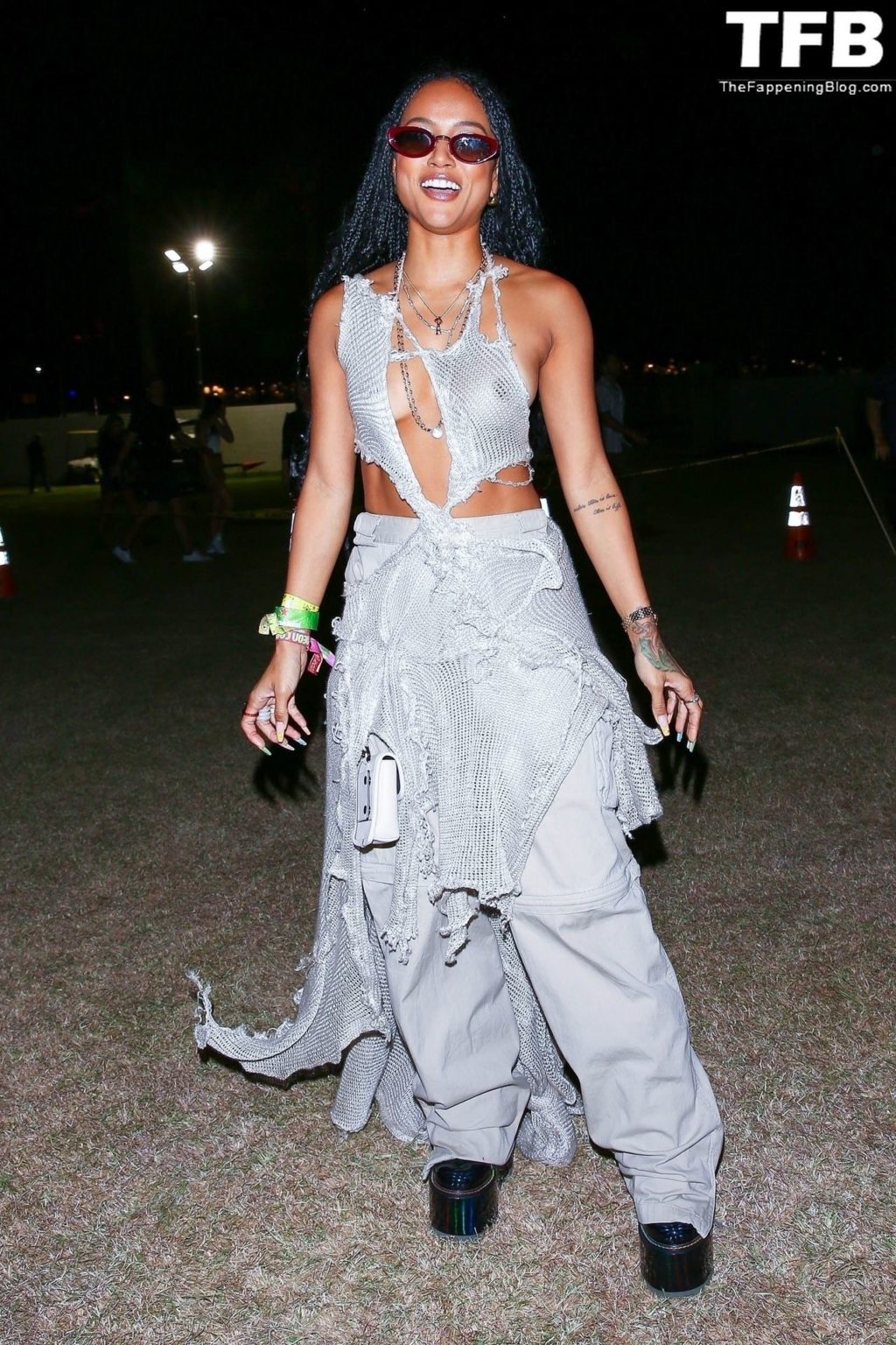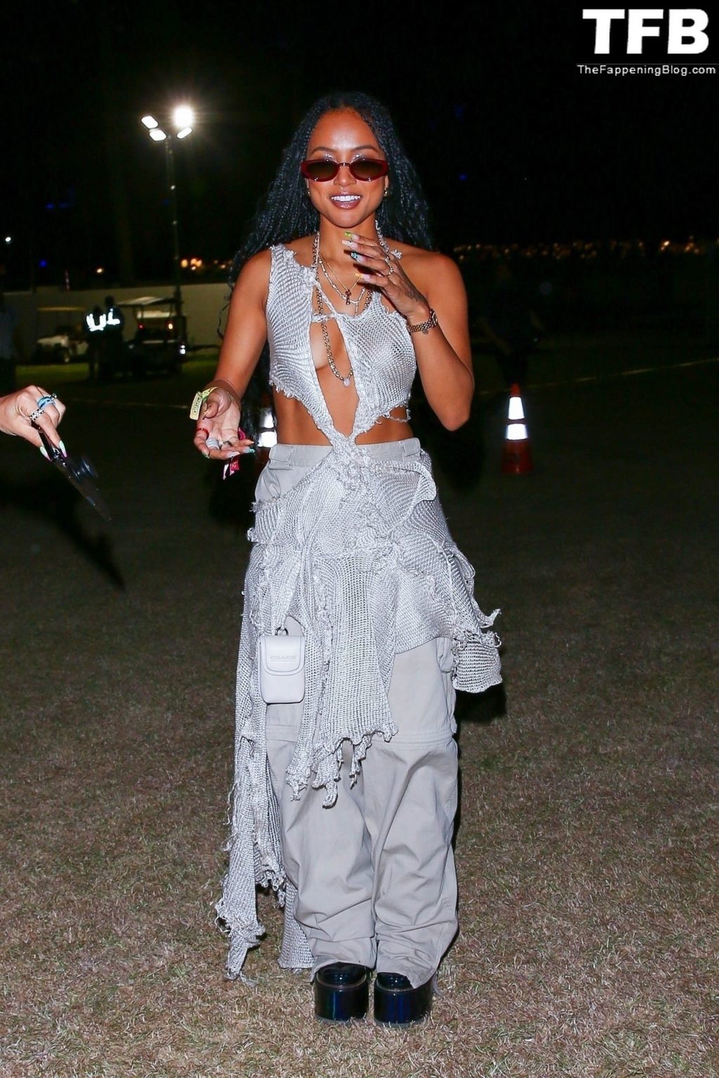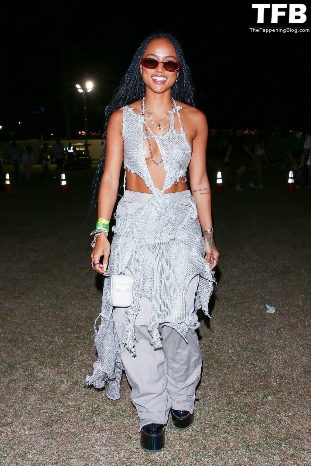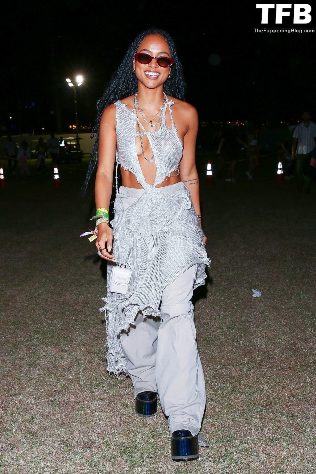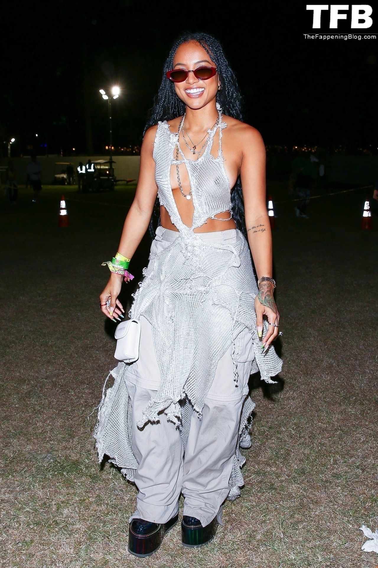 Karrueche Tran sans soutien-gorge sort du premier jour du Festival de musique et d’arts de la vallée de Coachella à Indio, 16/04/2022.