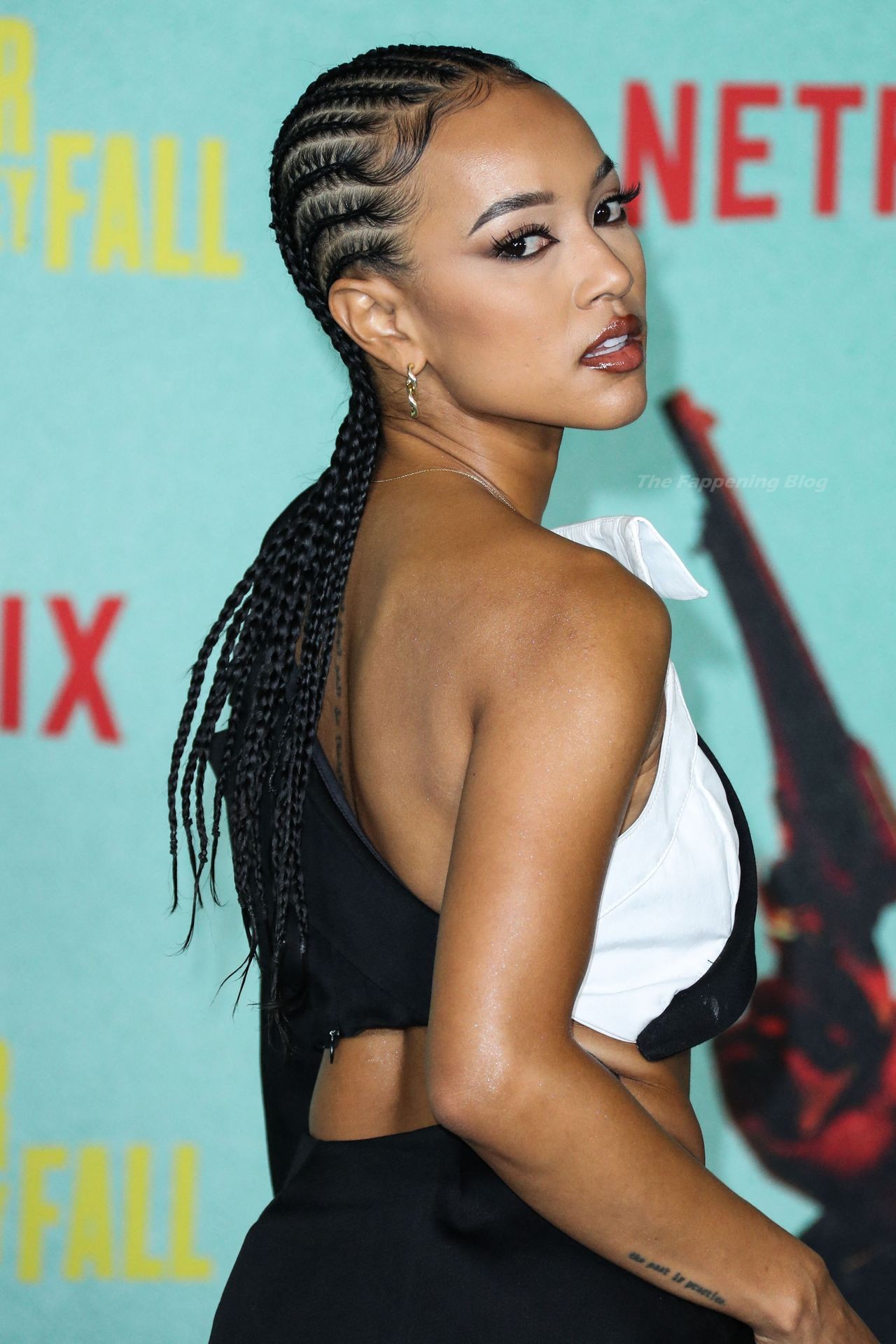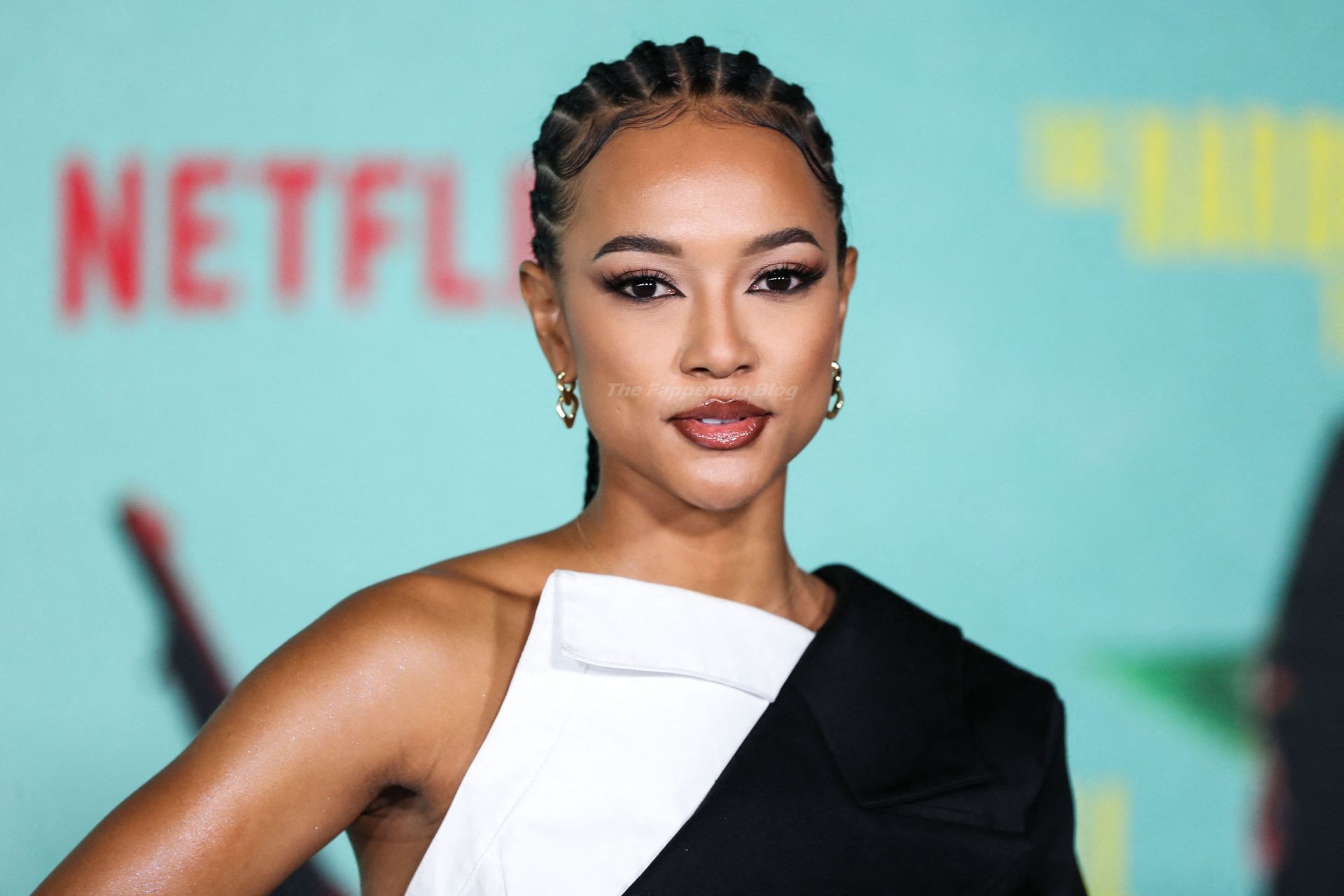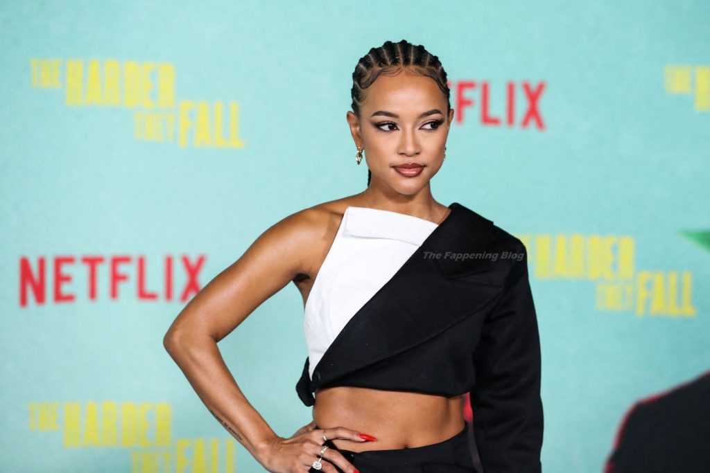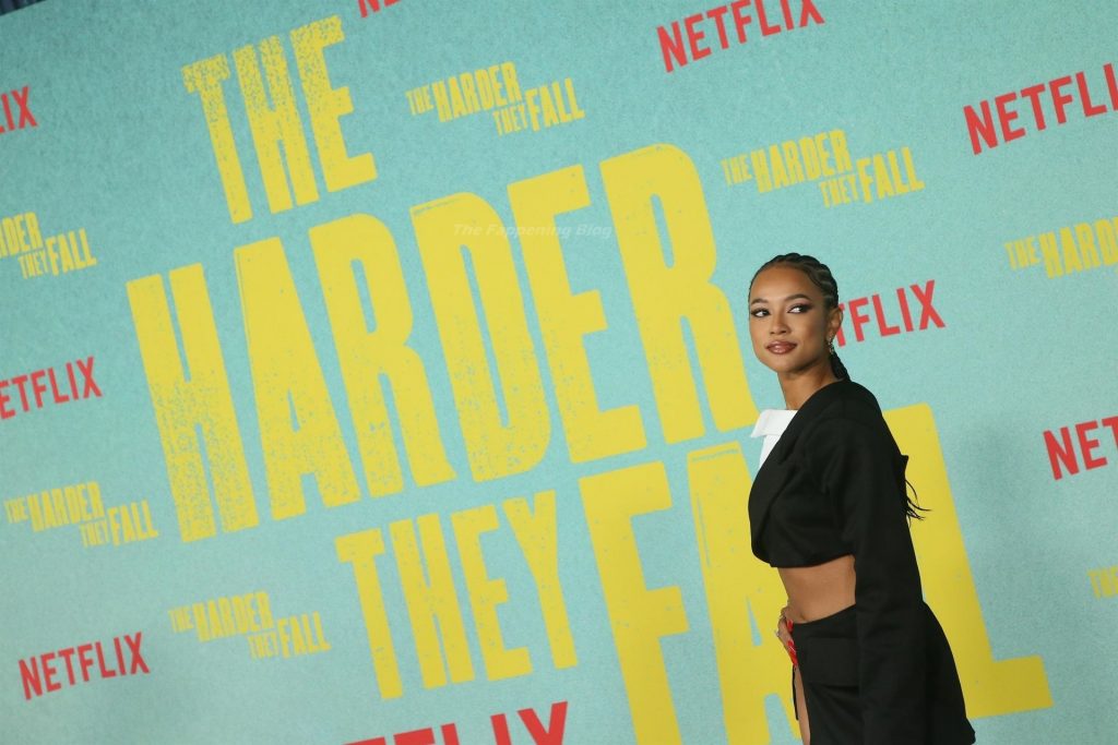 L’actrice Karrueche Tran est ravissante alors qu’elle pose sur le tapis rouge lors de la première à Los Angeles de « The Harder They Fall » au Shrine Auditorium and Expo Hall, le 13/10/2021.