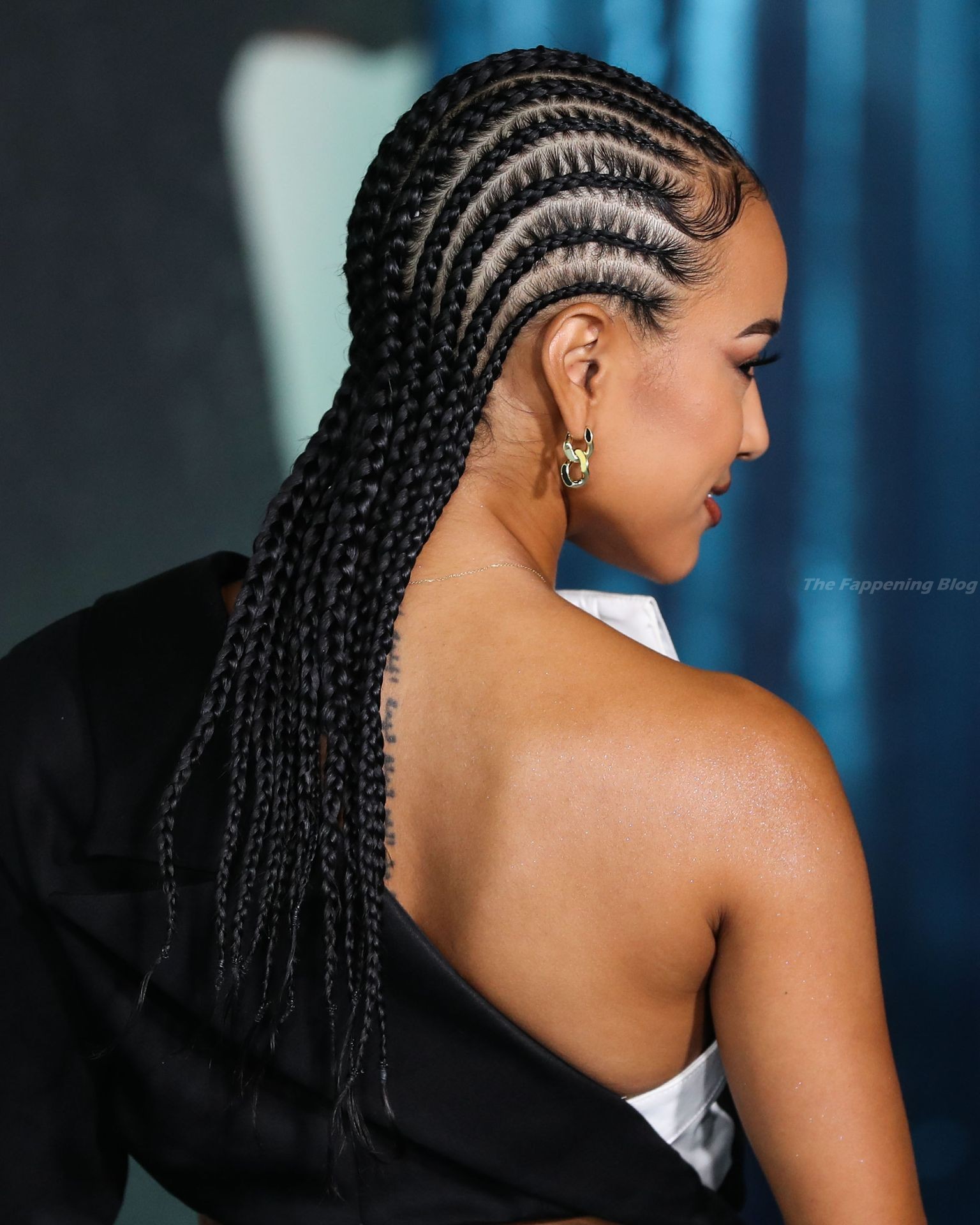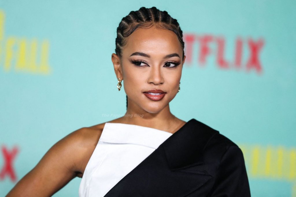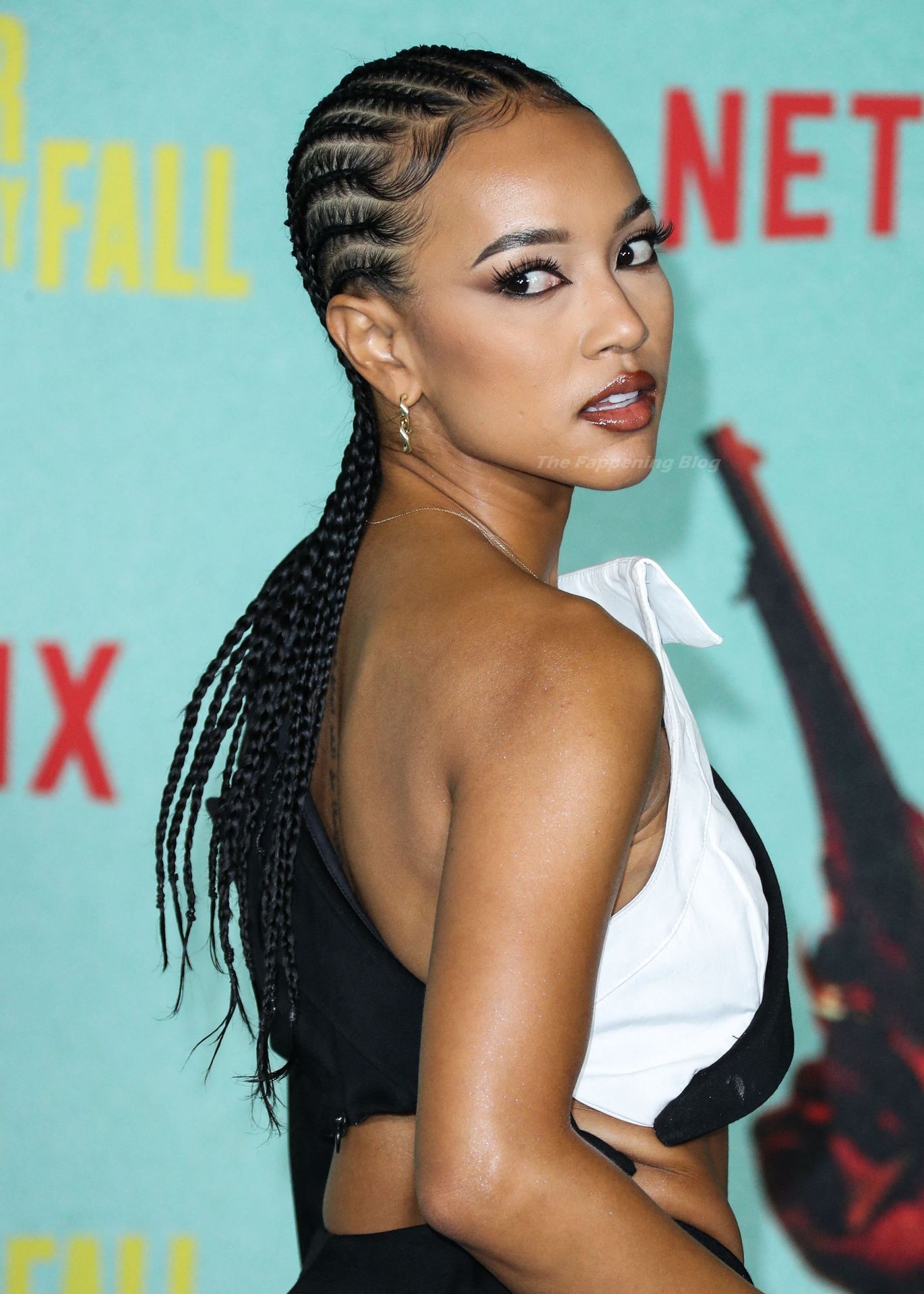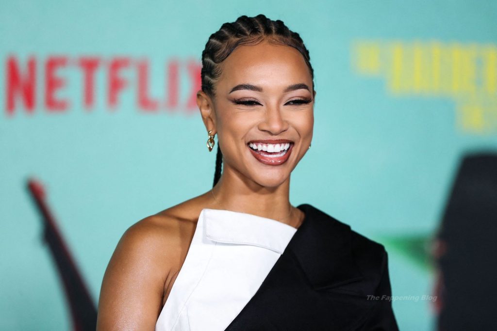 L’actrice Karrueche Tran est ravissante alors qu’elle pose sur le tapis rouge lors de la première à Los Angeles de « The Harder They Fall » au Shrine Auditorium and Expo Hall, le 13/10/2021.