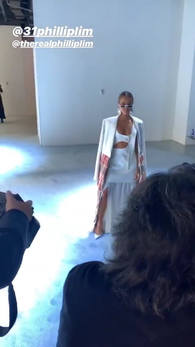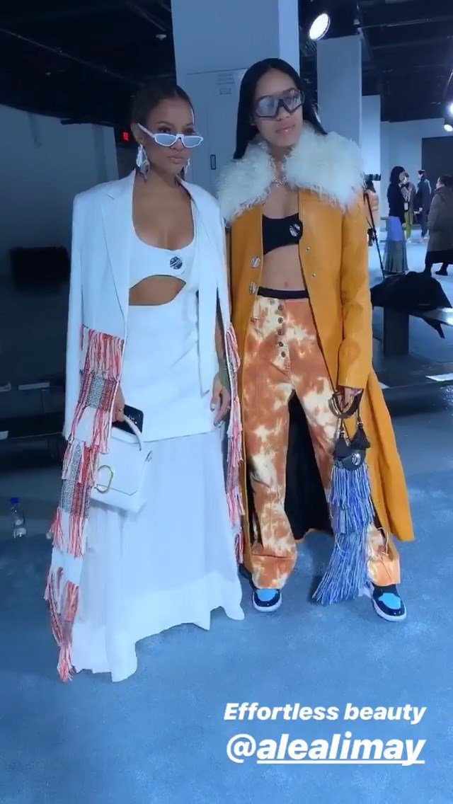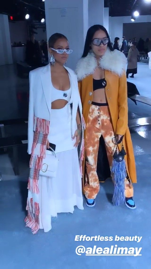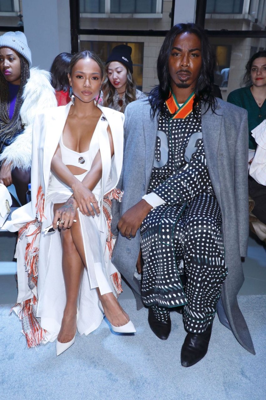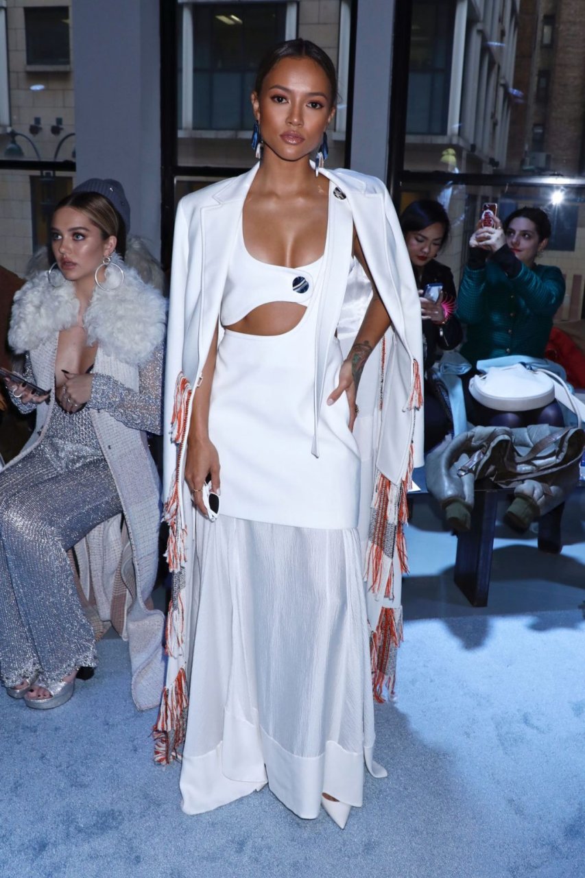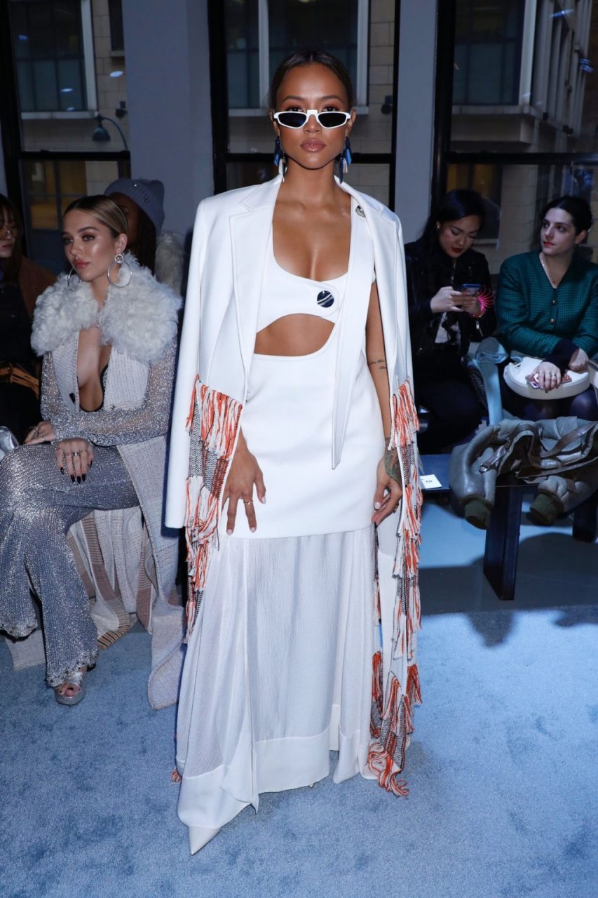 Karrueche Tran a exhibé son décolleté en portant une tenue blanche lors du défilé 3.1 Phillip Lim Automne/Hiver 2019 pendant la Fashion Week de New York, le 11/02/2019.