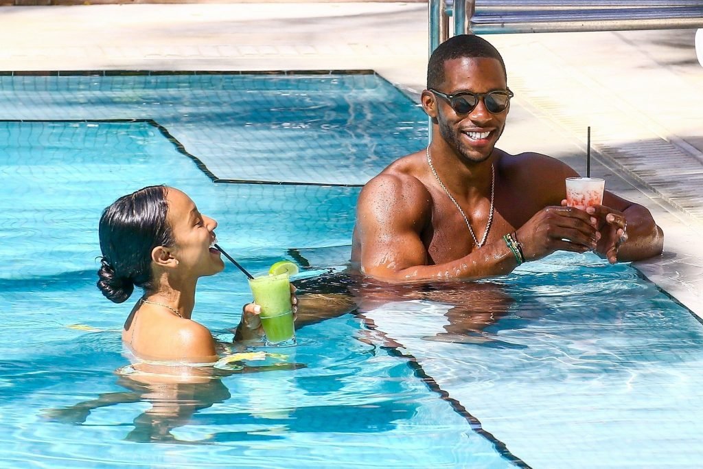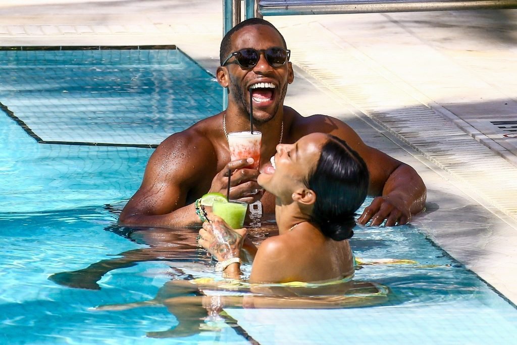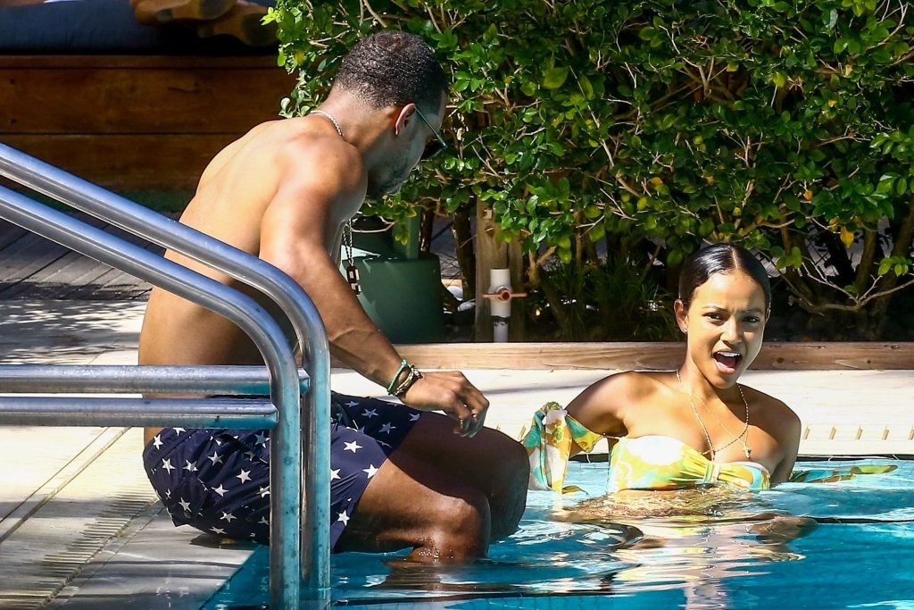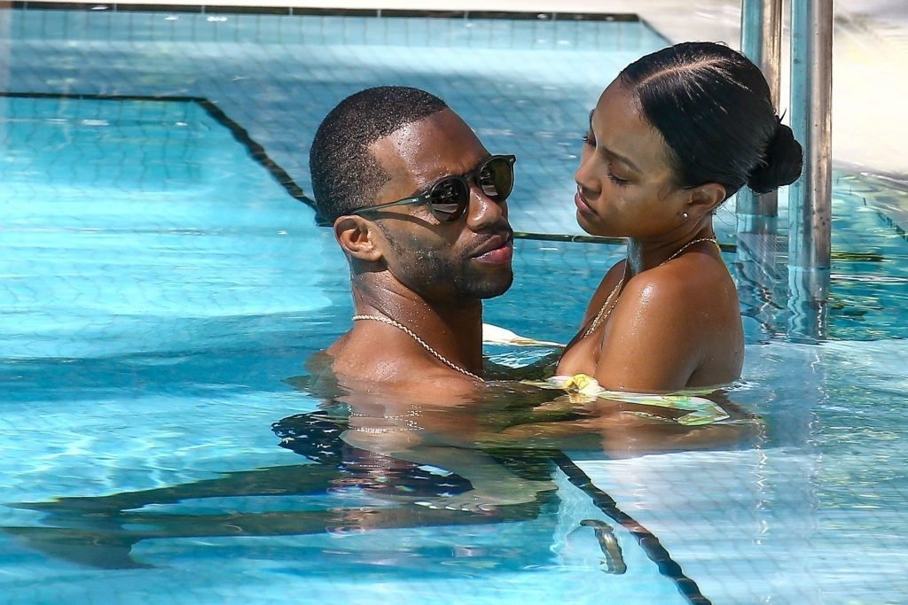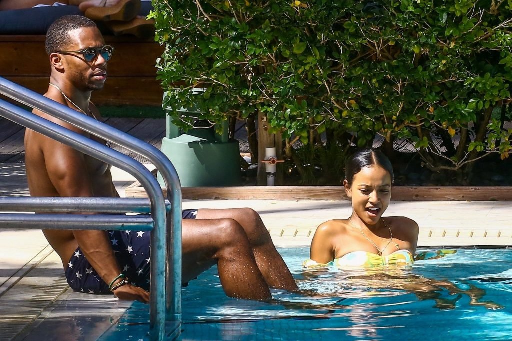 Karrueche Tran et le joueur de football américain Victor Cruz profitent d’une journée ensemble à la piscine à Miami, 13/04/2018. La brune sexy a exhibé ses fesses à l’hôtel. Karrueche Tran est mannequin, créatrice, actrice de télévision et de cinéma (Claws (2017), Only for One Night (2016)). Âge – 29 ans.