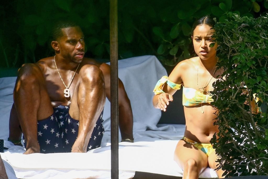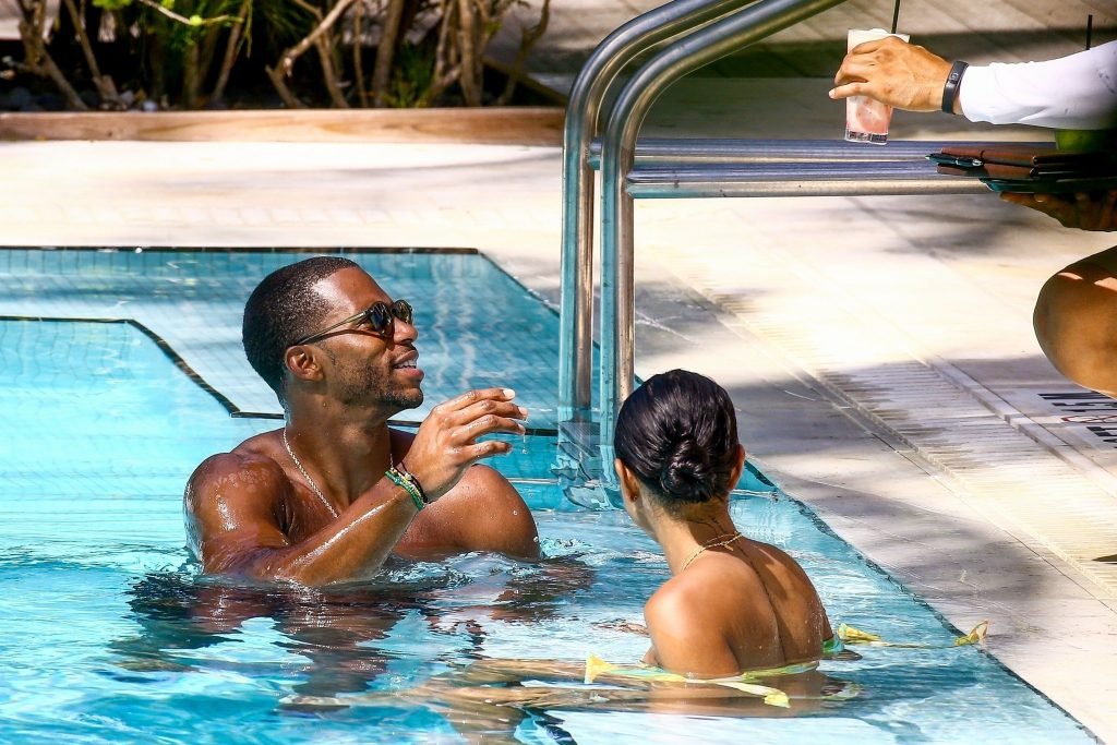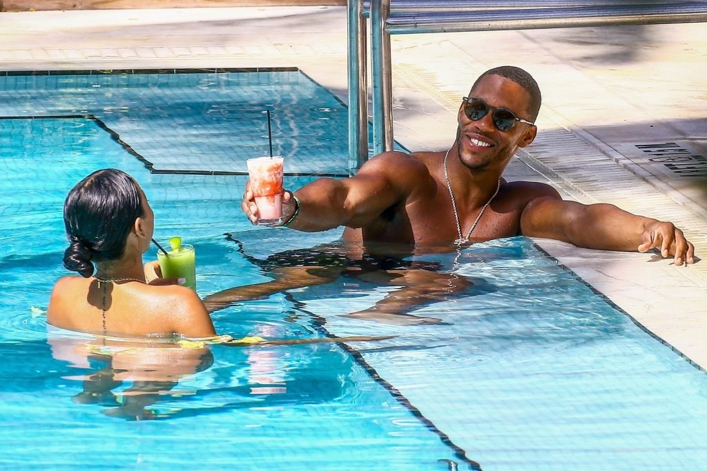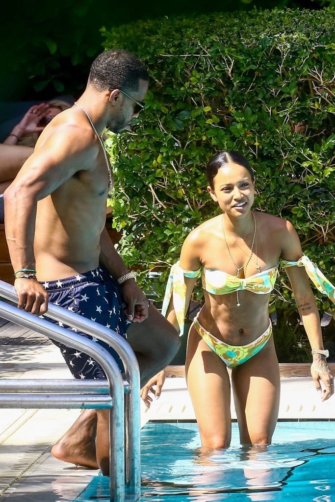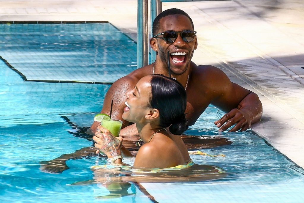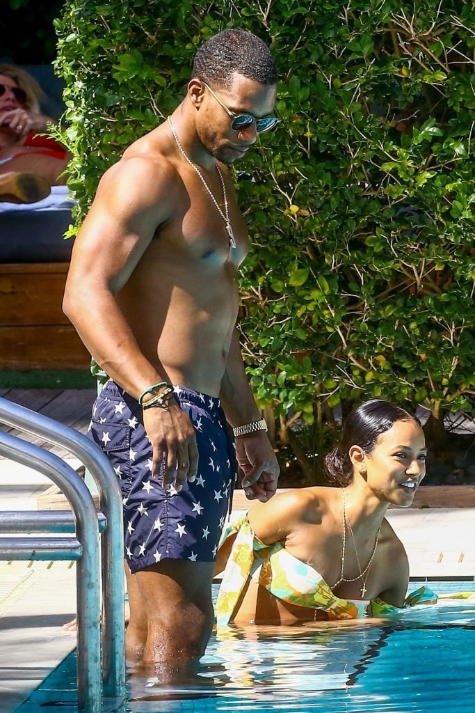 Karrueche Tran et le joueur de football américain Victor Cruz profitent d’une journée ensemble à la piscine à Miami, 13/04/2018. La brune sexy a exhibé ses fesses à l’hôtel. Karrueche Tran est mannequin, créatrice, actrice de télévision et de cinéma (Claws (2017), Only for One Night (2016)). Âge – 29 ans.