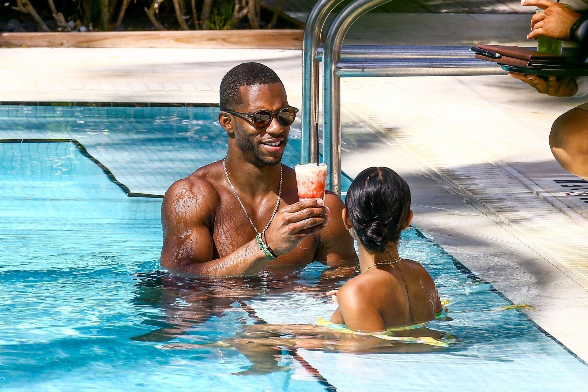 Karrueche Tran et le joueur de football américain Victor Cruz profitent d’une journée ensemble à la piscine à Miami, 13/04/2018. La brune sexy a exhibé ses fesses à l’hôtel. Karrueche Tran est mannequin, créatrice, actrice de télévision et de cinéma (Claws (2017), Only for One Night (2016)). Âge – 29 ans.