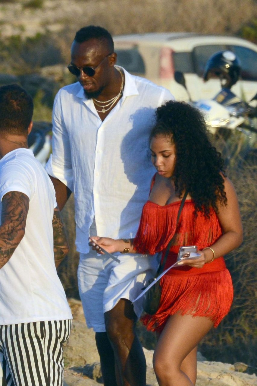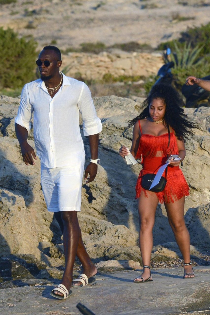Le sprinteur jamaïcain retraité Usain Bolt et sa petite amie de longue date Kasi J. Bennett ont été photographiés en train de profiter de leurs vacances à Formentera, 15/08/2019.