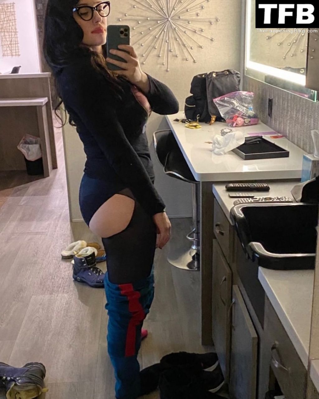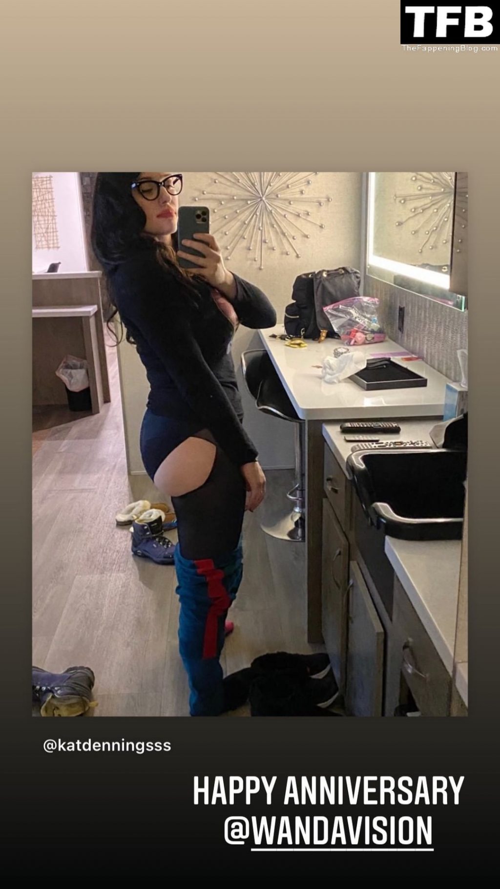 La star du Fappening Kat Dennings affiche ses fesses en prenant un nouveau selfie pour ses abonnés sur Instagram, 14/01/2022.