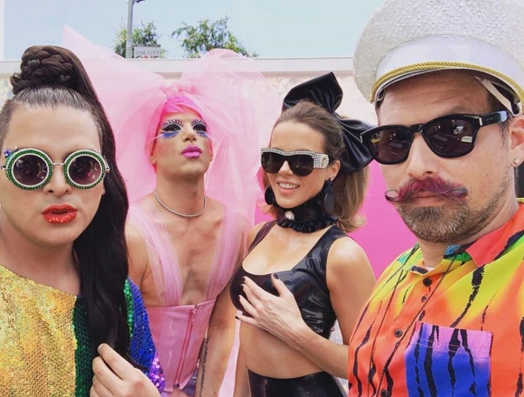Kate Beckinsale a été photographiée dans une tenue en latex noir lors de la Pride LGBT à Los Angeles, le 10/06/2019. Kate, avec Heidi Klum, est devenue activiste lors de l’événement de la communauté LGBT. Elle était vêtue comme une maîtresse dans un joli costume en latex noir. L’actrice a choisi un crop top, et une jupe moulante qui mettait en valeur sa silhouette sexy. La femme de 45 ans a ajouté un grand nœud à sa tenue.