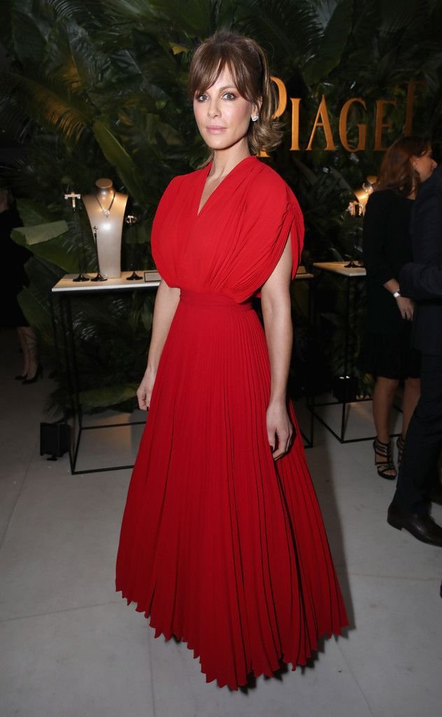 Kate Beckinsale porte une robe rouge sexy sans soutien-gorge lors de la soirée cocktail du Piaget & The Weinstein Company Award Weekend à Los Angeles, le 24/02/2017. Kathrin Beckinsale est une actrice (Underworld : Awakening (2012)) originaire de Chiswick. Âge : 43 ans (née le 26 juillet 1973).