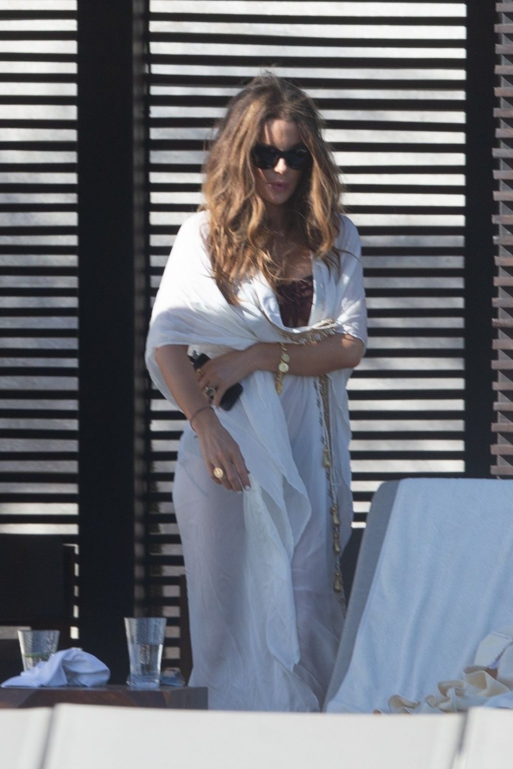 Kate Beckinsale, 46 ans, exhibe son corps de bombe en bikini alors qu’elle profite d’une escapade idyllique à la plage à Los Cabos, au Mexique, le 01/12/2019. L’actrice portait un magnifique deux-pièces chocolat et a été vue tenant un exemplaire de “Do you mind if I cancel?” de Gary Janetti.