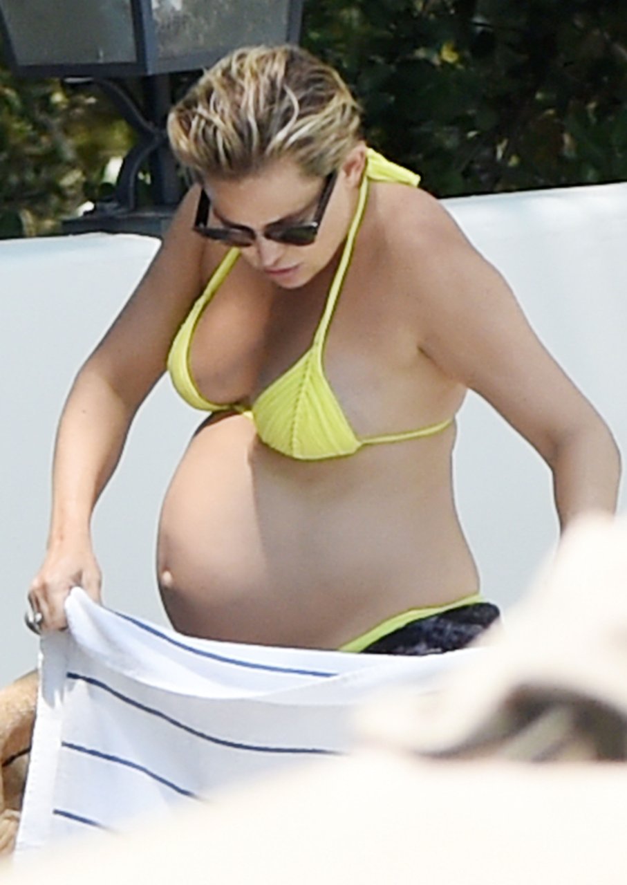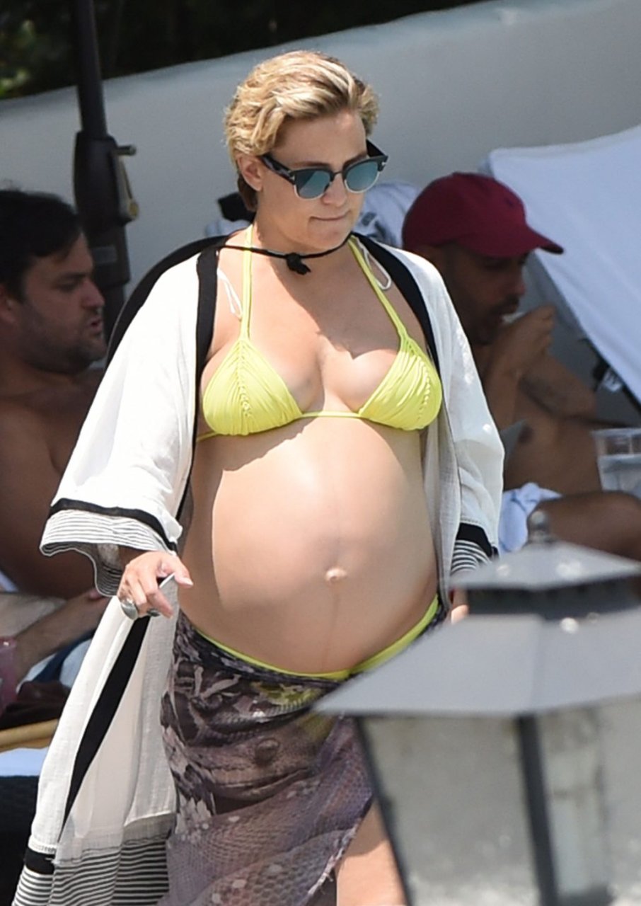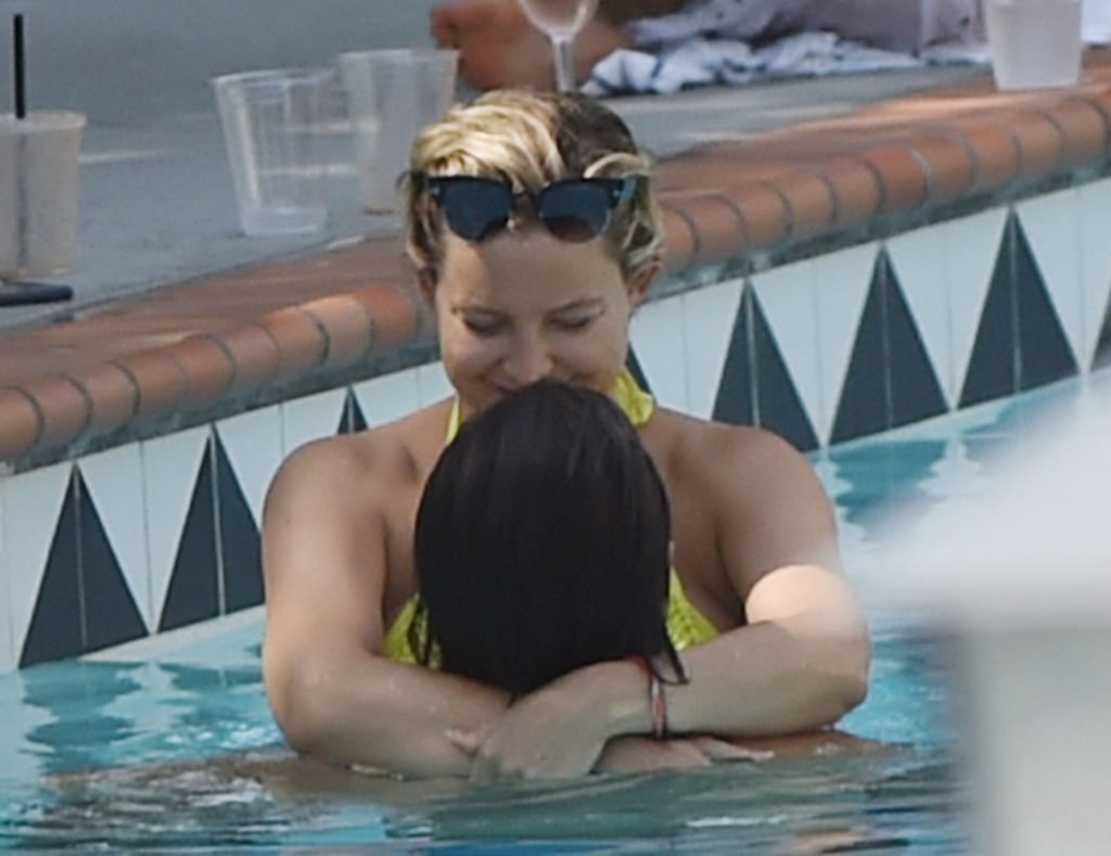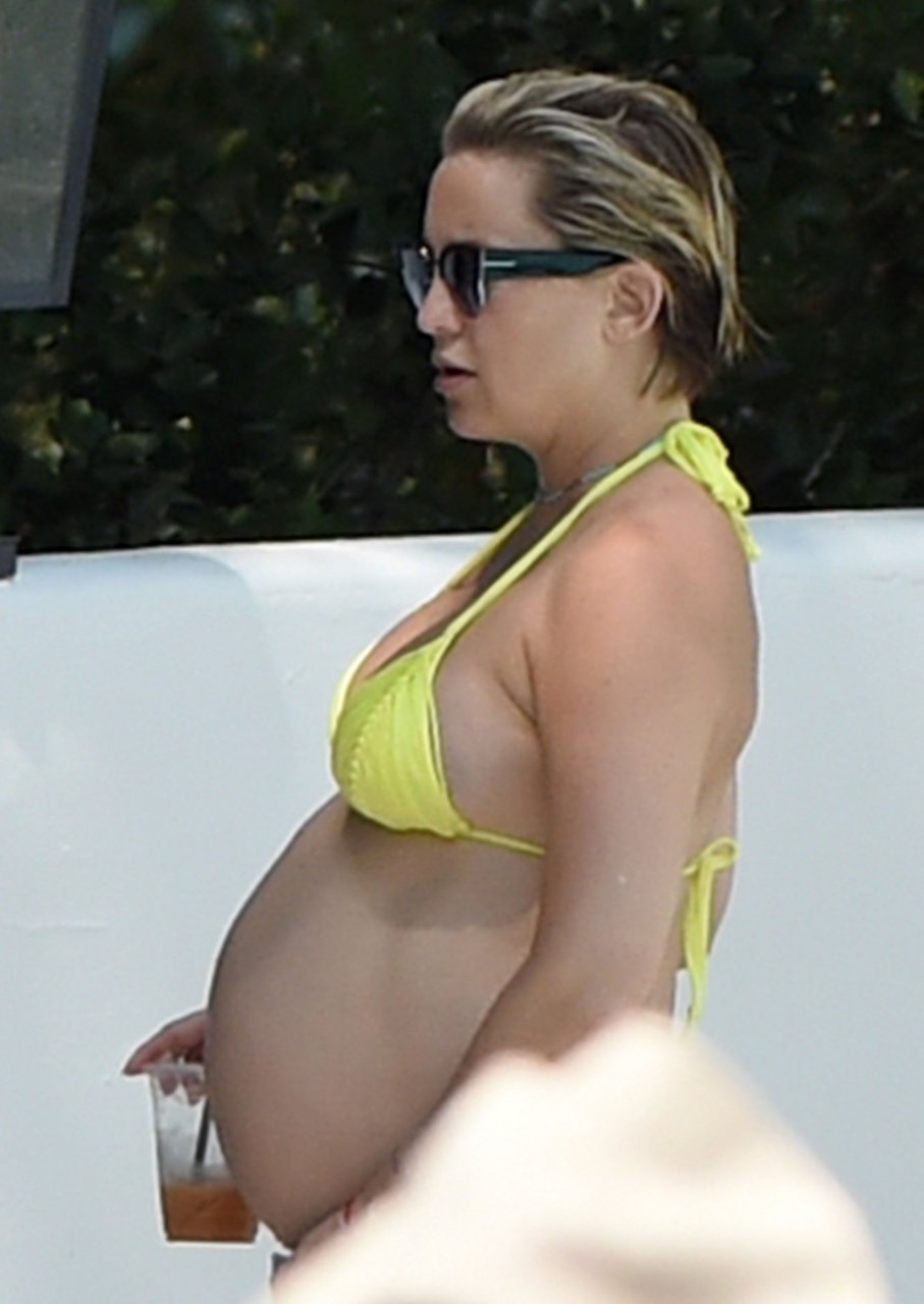 L’actrice Kate Hudson (39 ans) a montré son énorme ventre de grossesse dans un bikini deux pièces jaune néon en nageant dans la piscine avec son compagnon Danny Fujikawa et d’autres amis à l’Ojai Valley Inn & Spa à Ojai, Californie, le 28/07/2018.