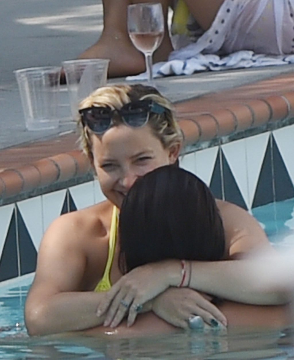 Kate a fait un peu d’aquagym dans la piscine pendant environ une demi-heure avant que tout le monde ne nage ensemble, mange un brunch, boive, joue à des jeux, et se détende simplement au bord de la piscine tout l’après-midi du samedi. Kate et Danny ont passé tout le week-end avec leur groupe d’amis au complexe.