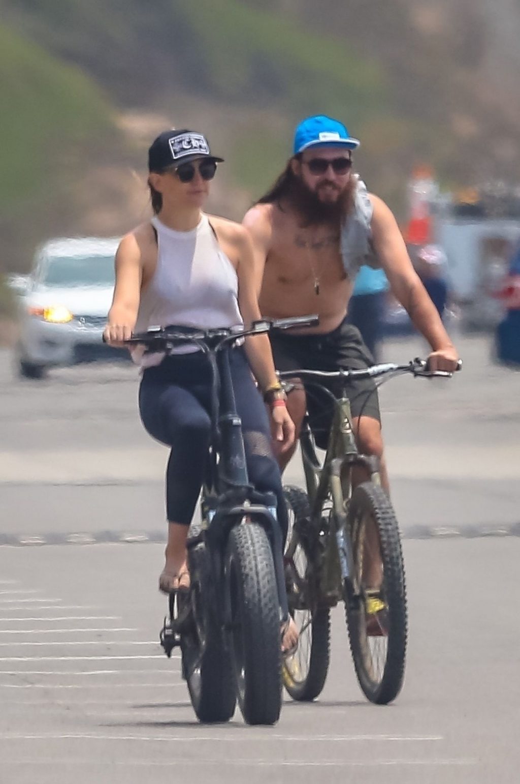 Kate Hudson et Danny Fujikawa profitent d’une balade à vélo à Malibu, 06/02/2020. L’actrice de 41 ans exhibe ses poitrines dans la rue.