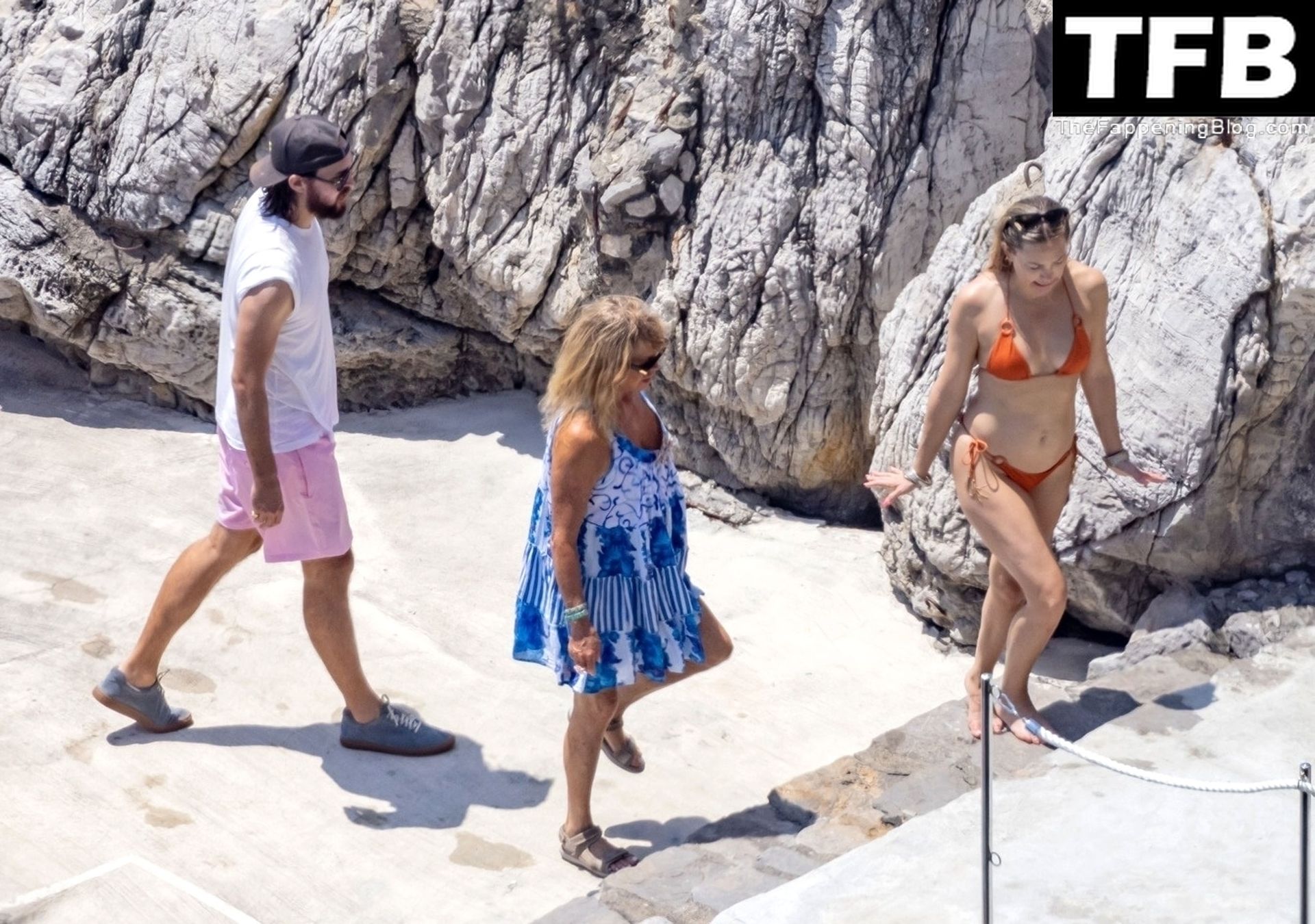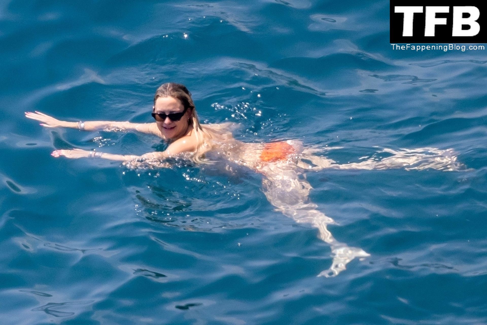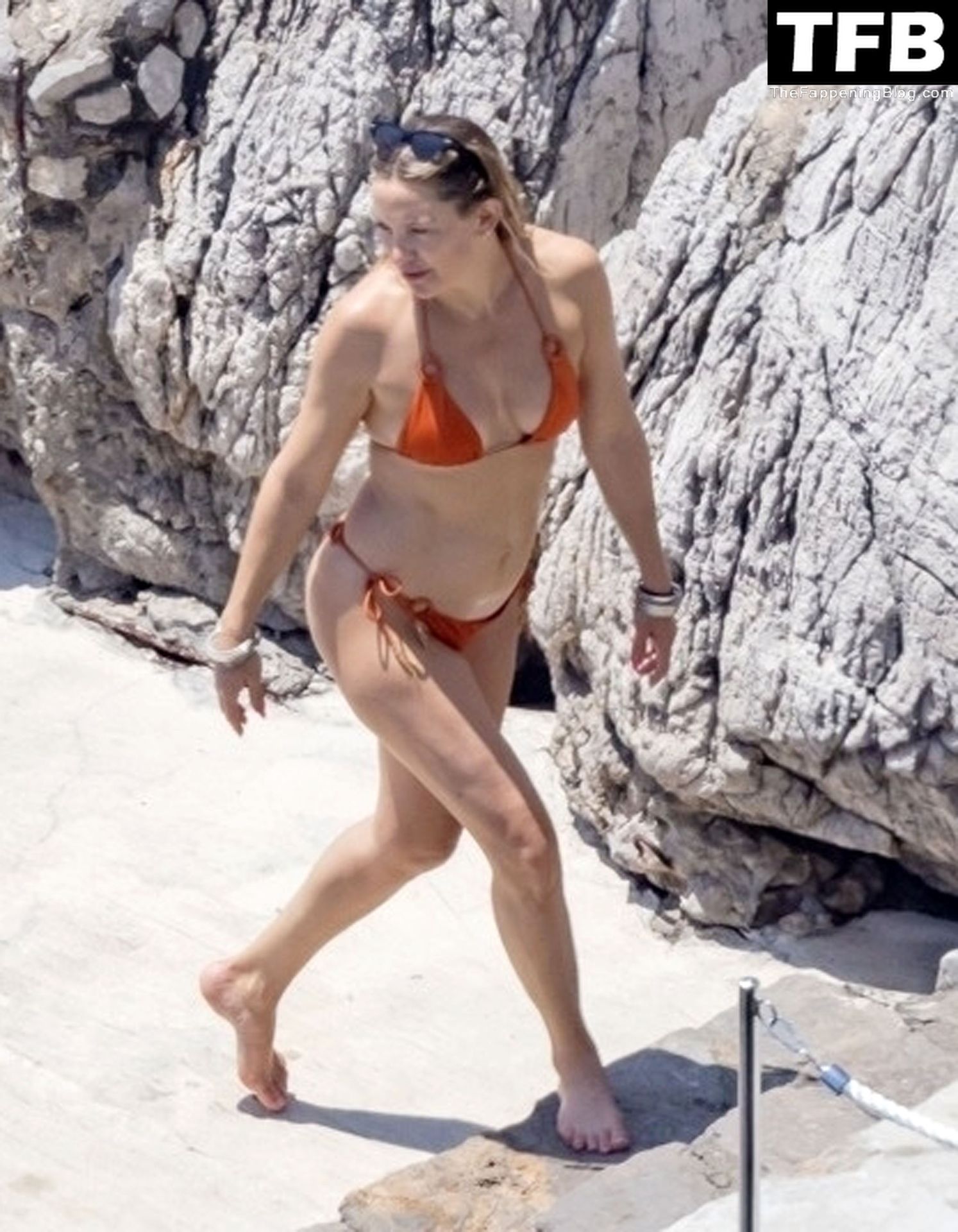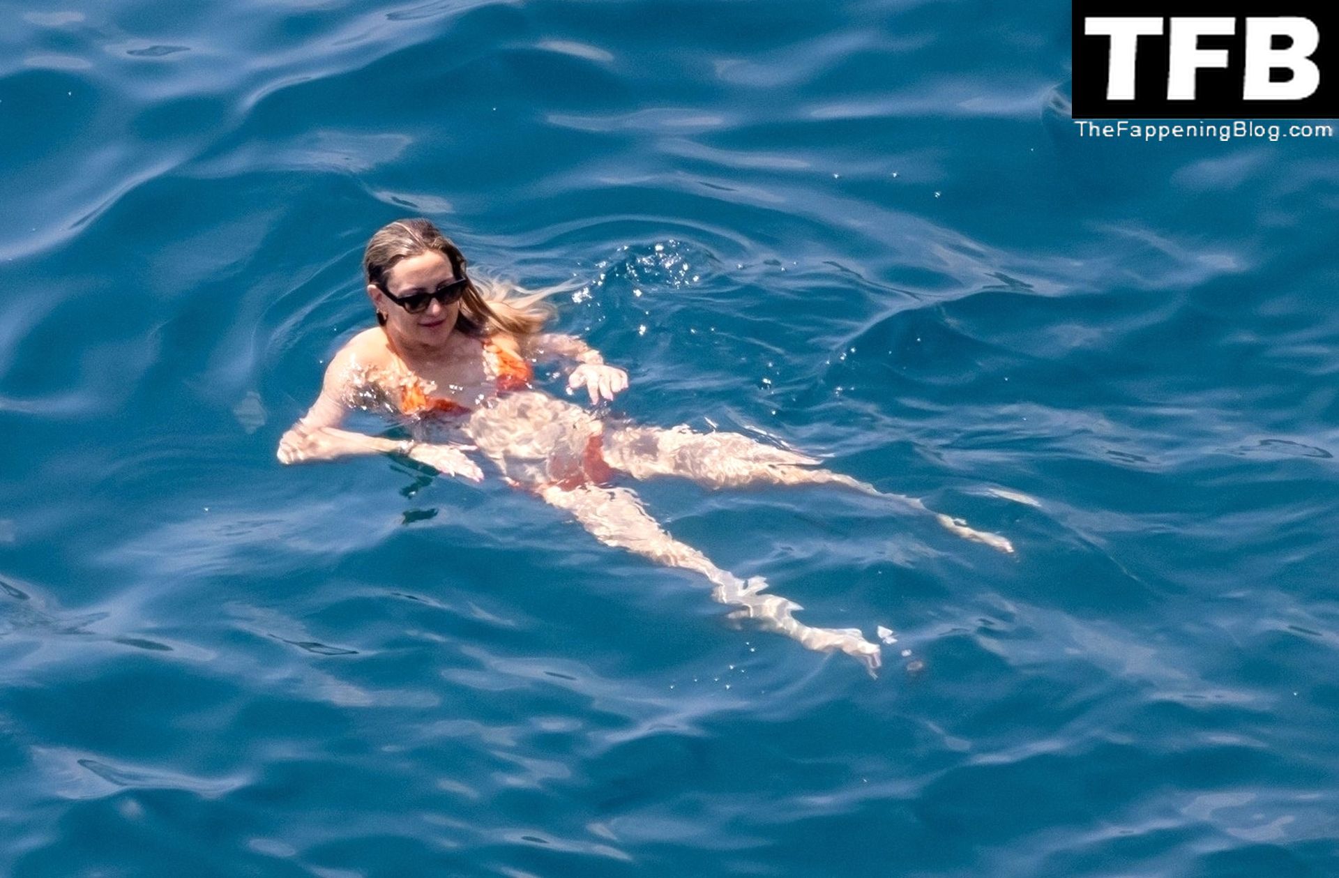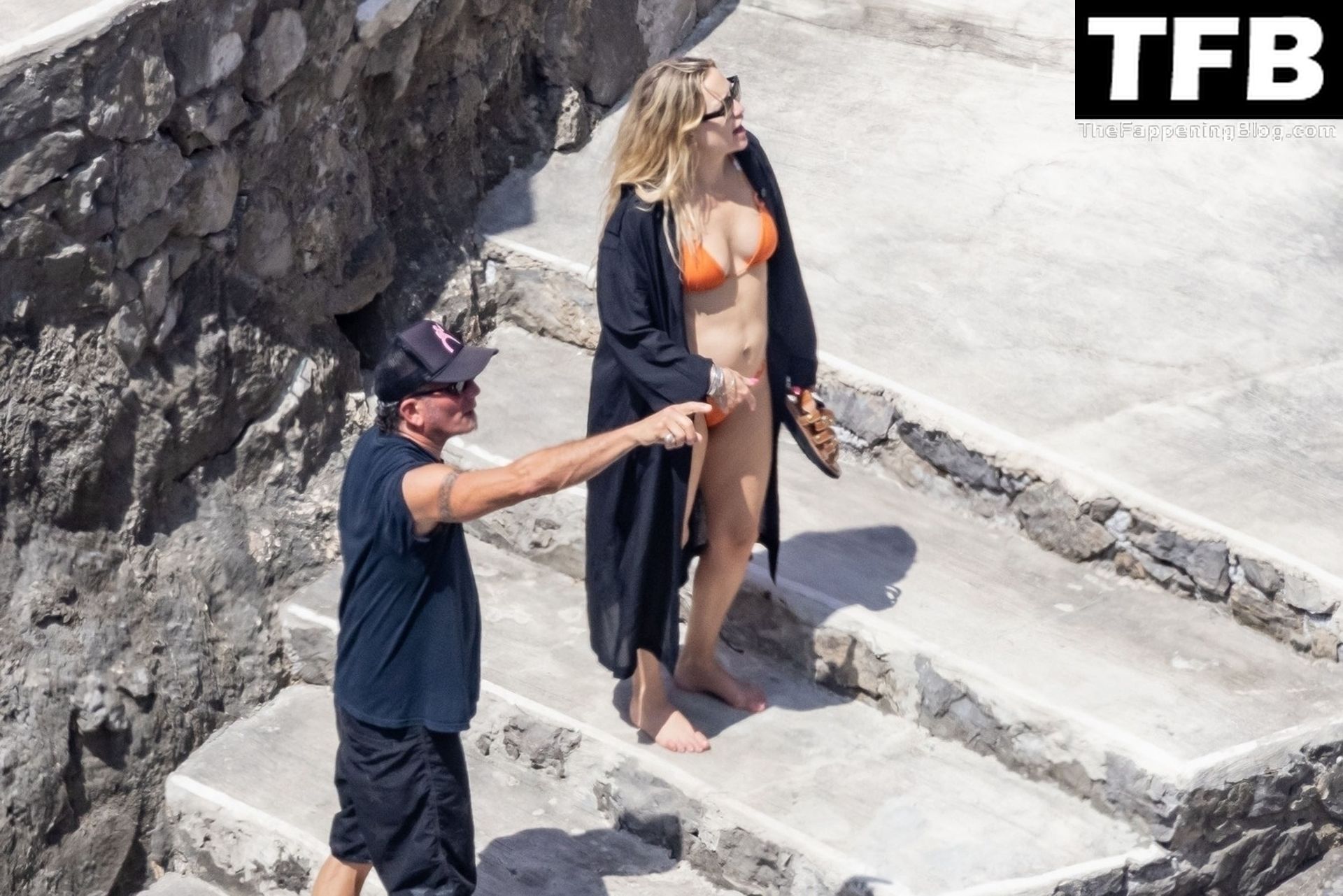 Sous le soleil éclatant de Positano, l’actrice américaine Kate Hudson exhibe sa silhouette éblouissante dans son bikini orange lors de son voyage en famille en Italie, 07/04/2022.