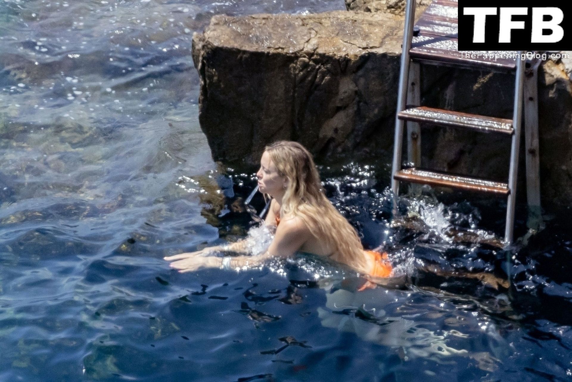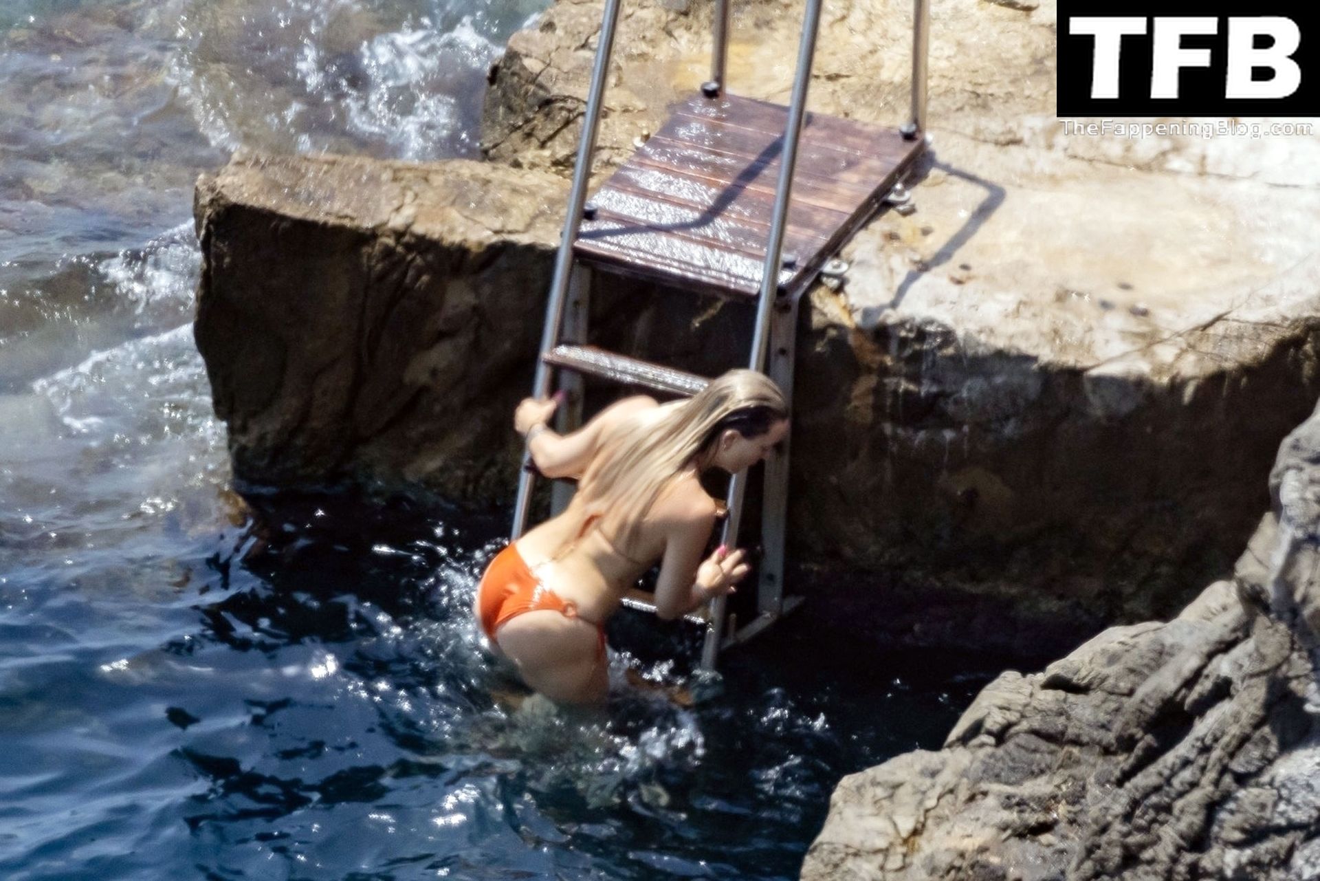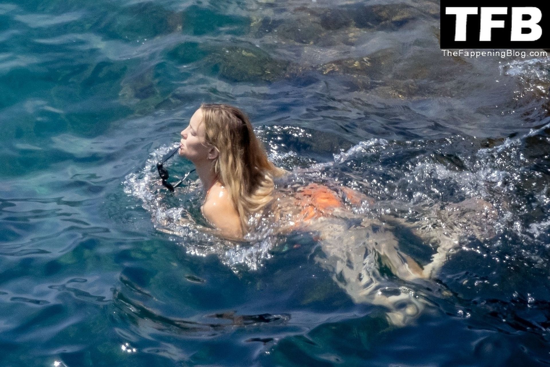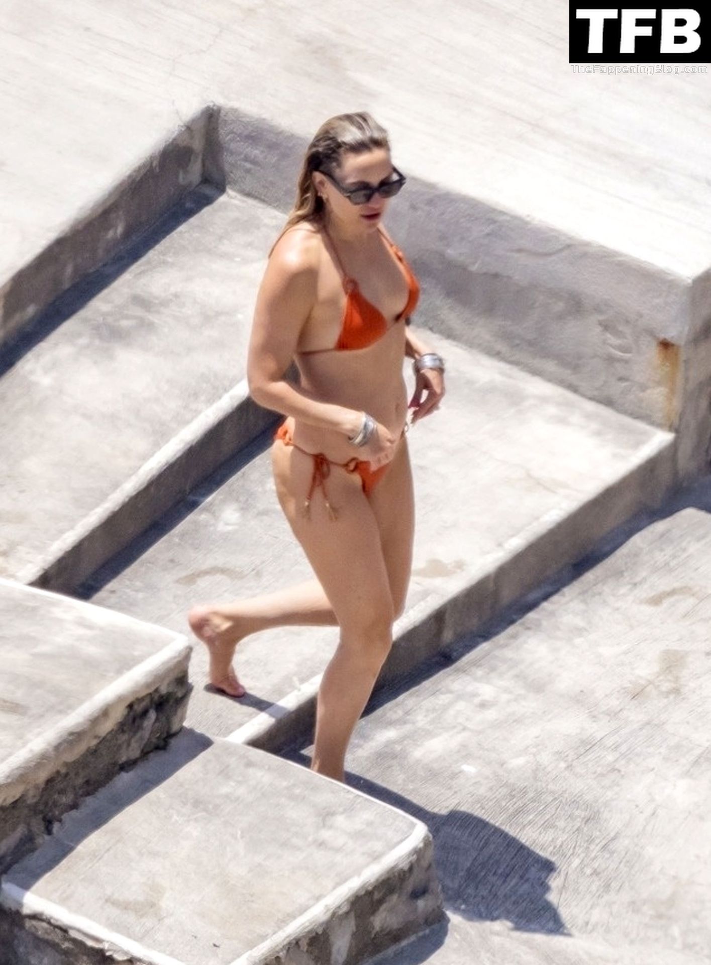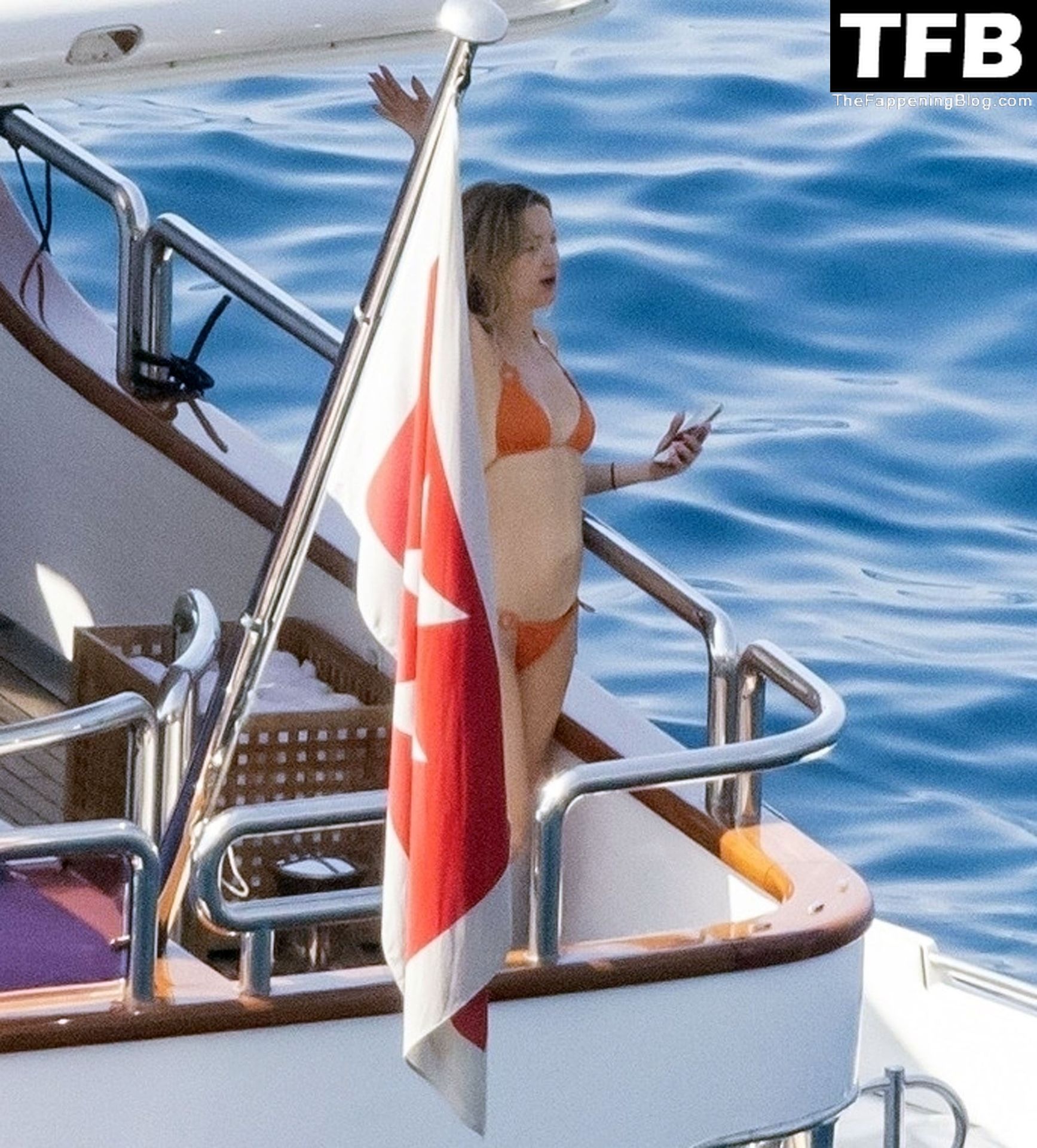 Sous le soleil éclatant de Positano, l’actrice américaine Kate Hudson exhibe sa silhouette éblouissante dans son bikini orange lors de son voyage en famille en Italie, 07/04/2022.
