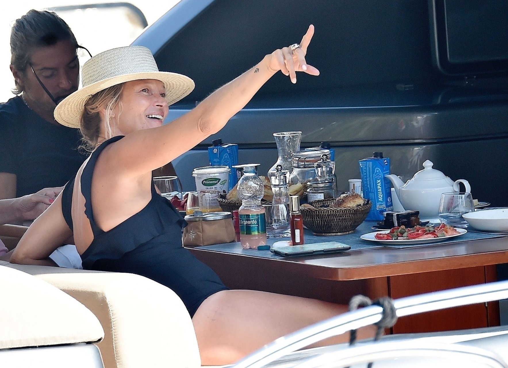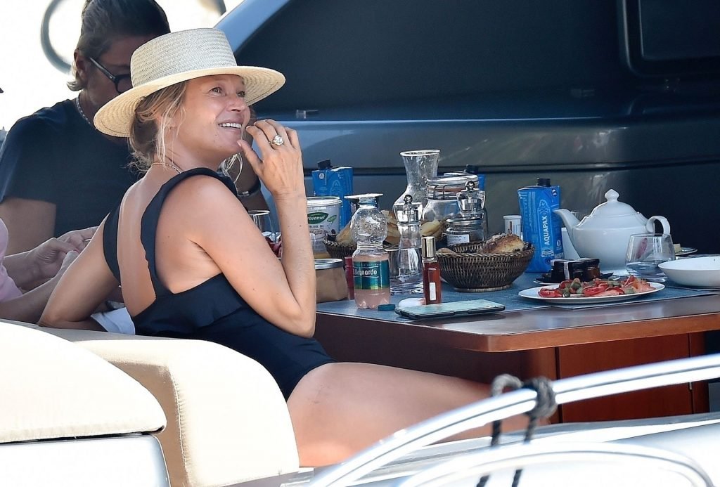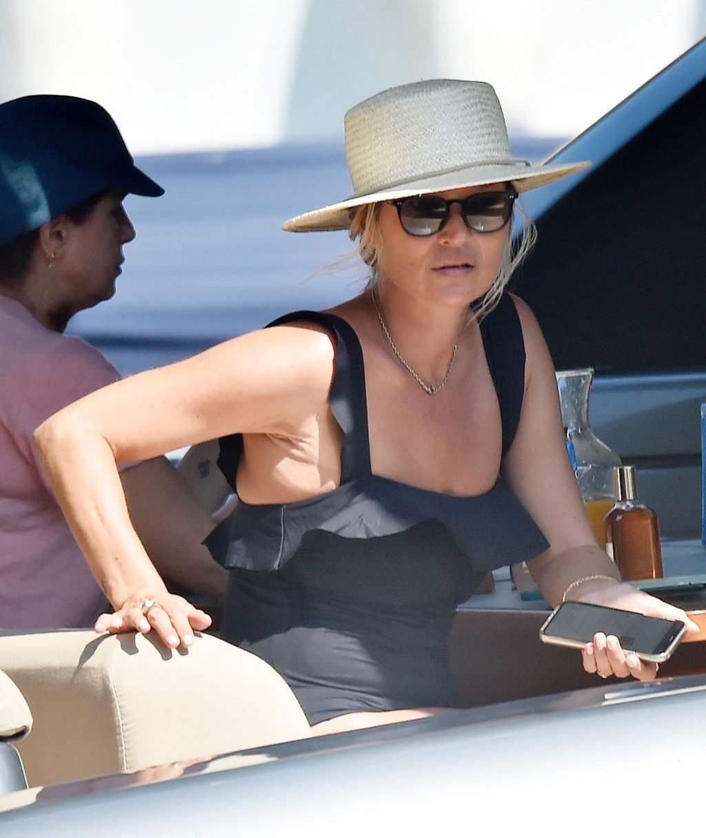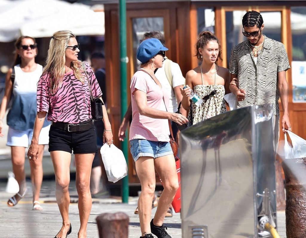 La chérie du monde de la mode britannique, Kate Moss continue ses vacances baignées de soleil à Portofino, 08/09/2019.
