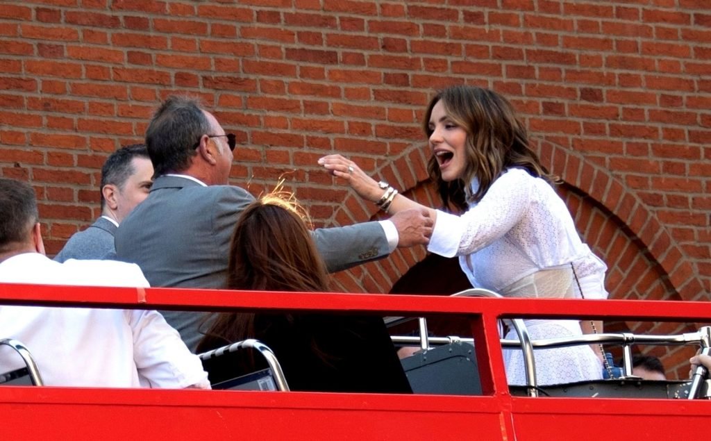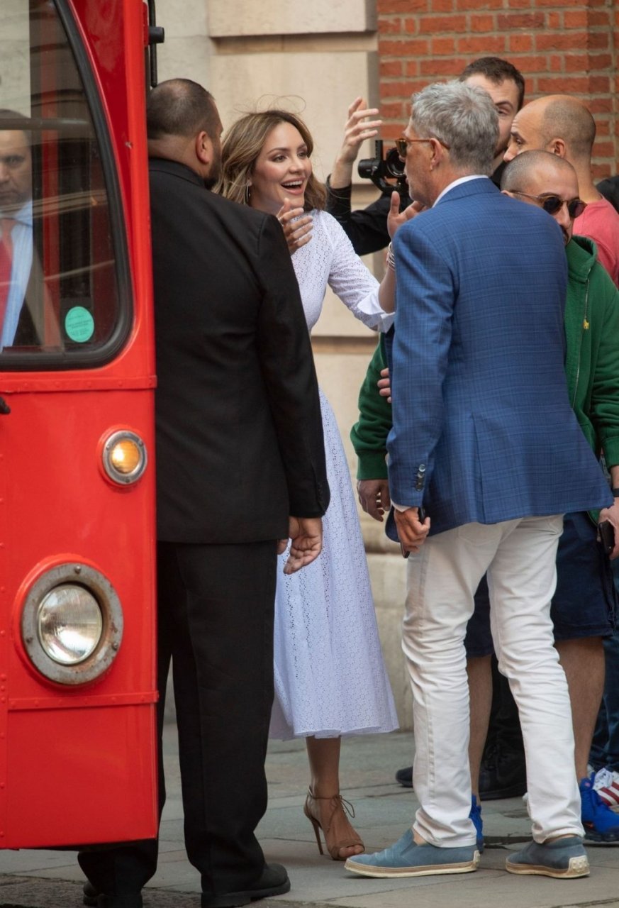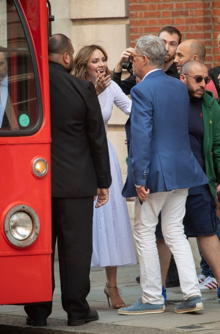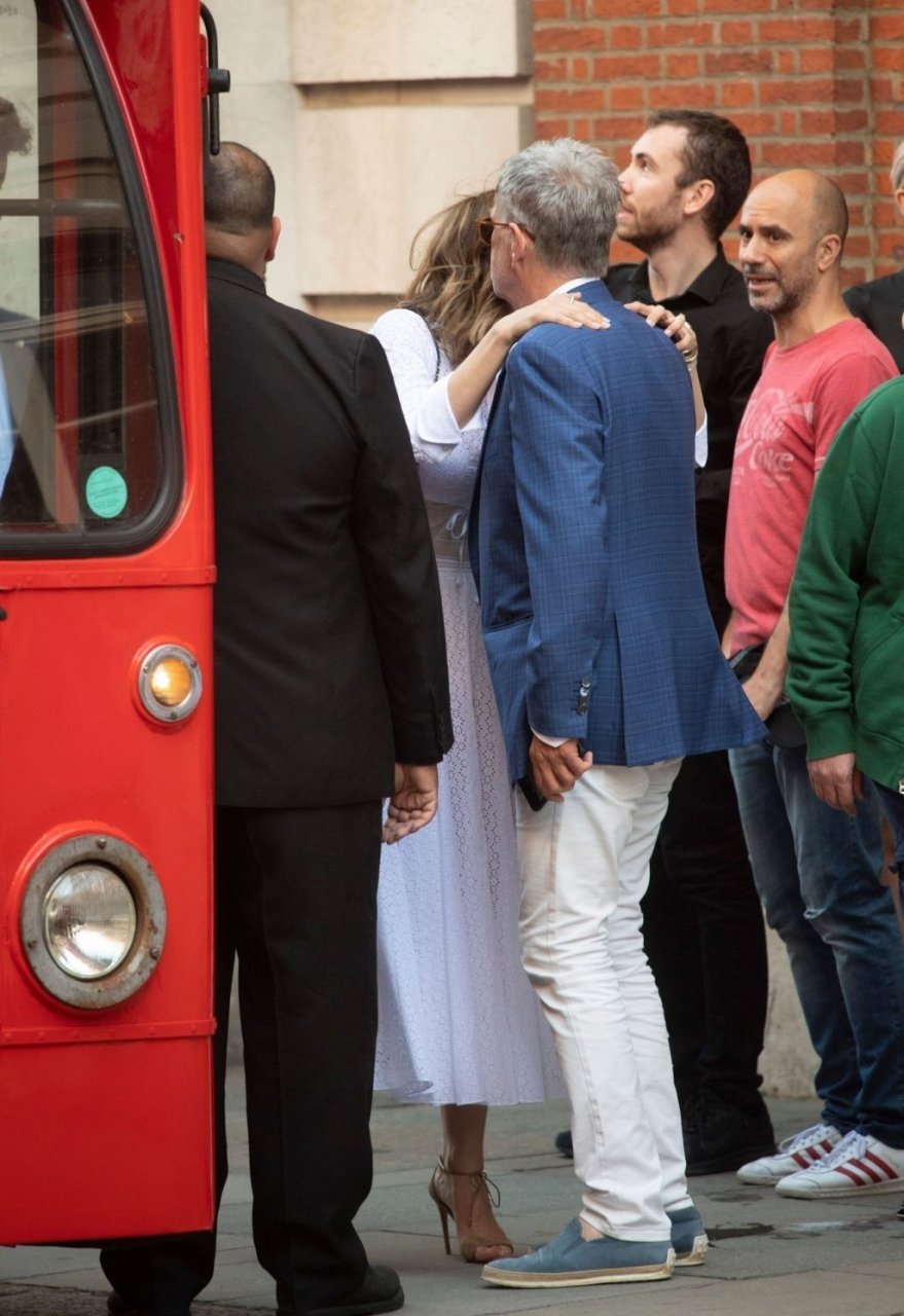 Actrice et star de The Fappening Katharine McPhee et David Foster ont été vus lors de la tournée du bus de l’amour à Londres, le 28/06/2019. Les tourtereaux ont été aperçus avec leurs invités lors d’une visite pré-mariage de Londres à bord de bus à toit ouvert où ils ont bu du champagne. Les invités étaient accompagnés de personnages sosies qui montaient et descendaient du bus, notamment Donald Trump, la Reine, des policiers et des voleurs, Sherlock Holmes, ainsi que des rois et reines perliers traditionnels.