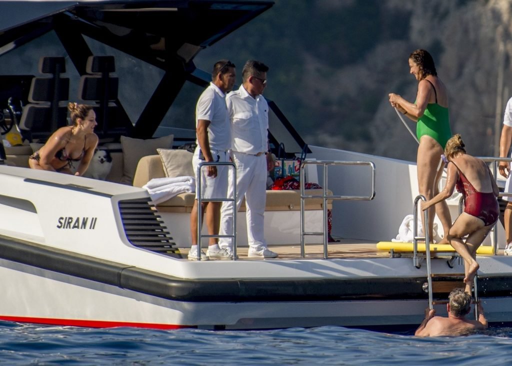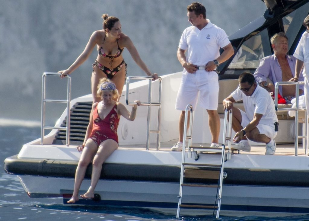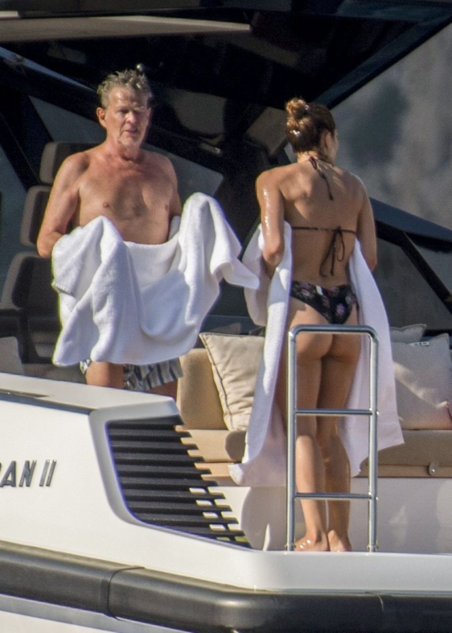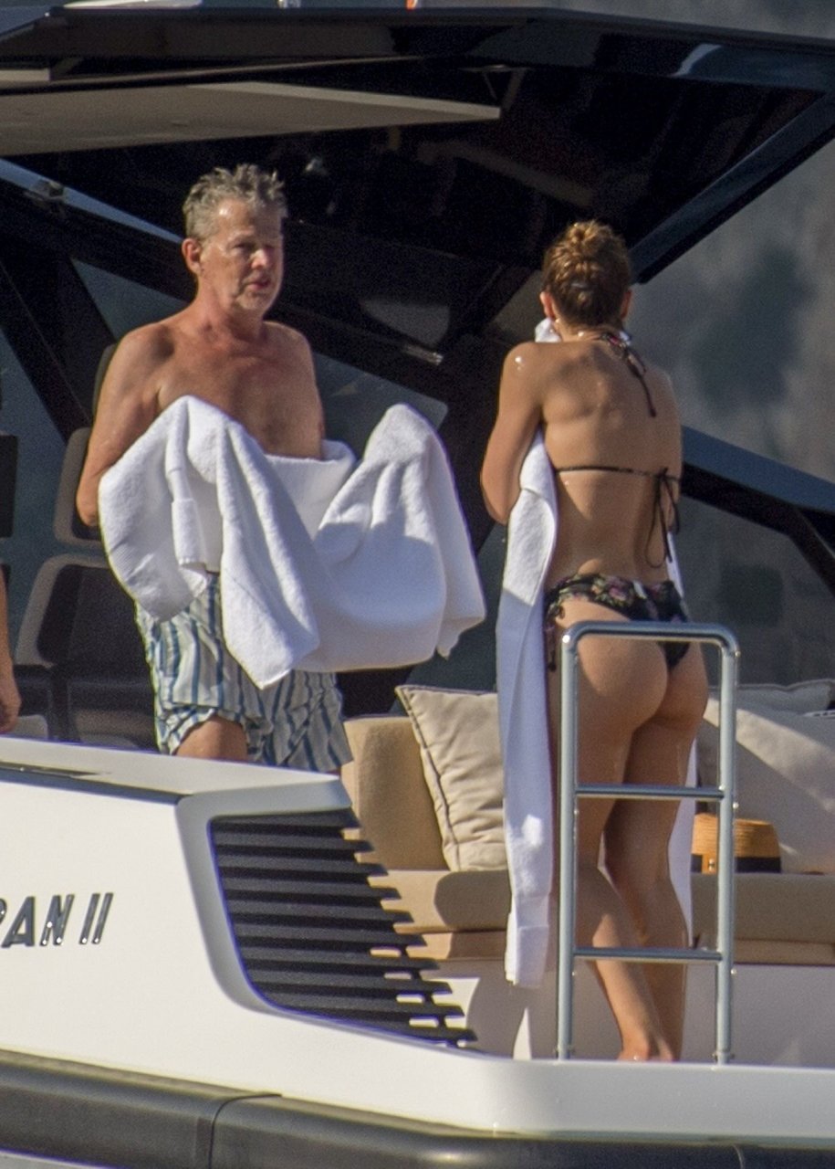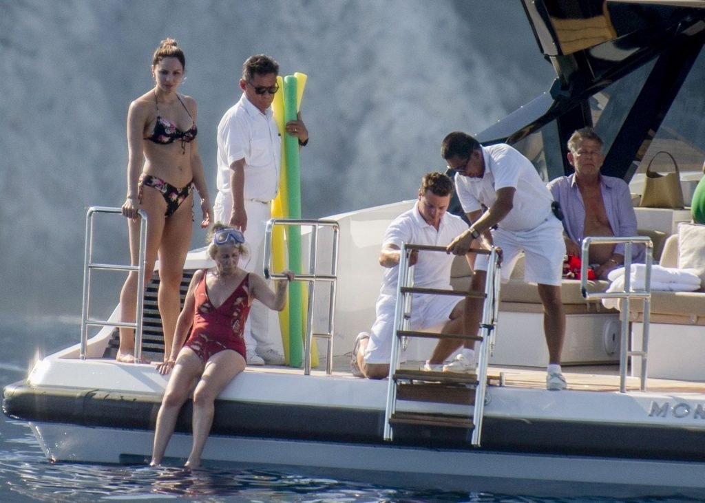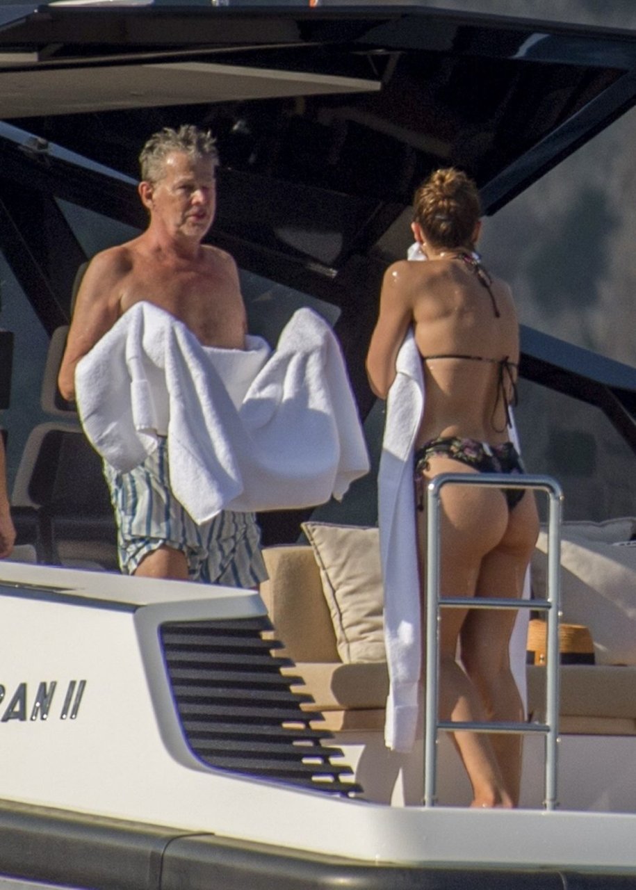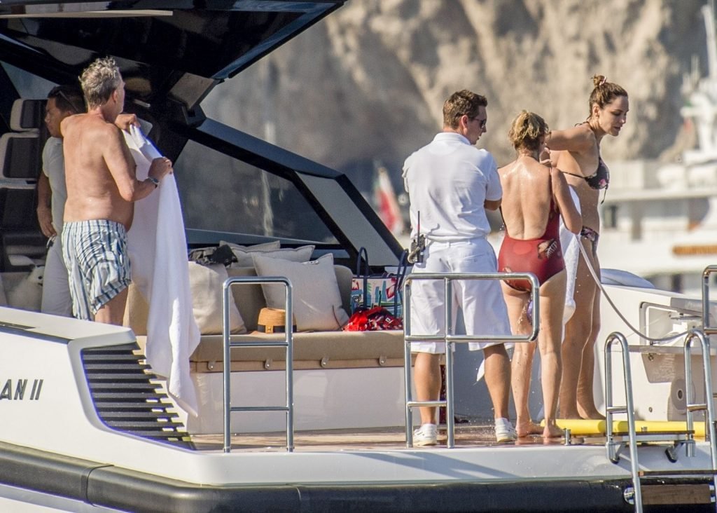 Les jeunes mariés Katharine McPhee et David Foster se baignent dans l’océan tout en se relaxant sur leur yacht pendant leur lune de miel à Capri, 03/07/2019.