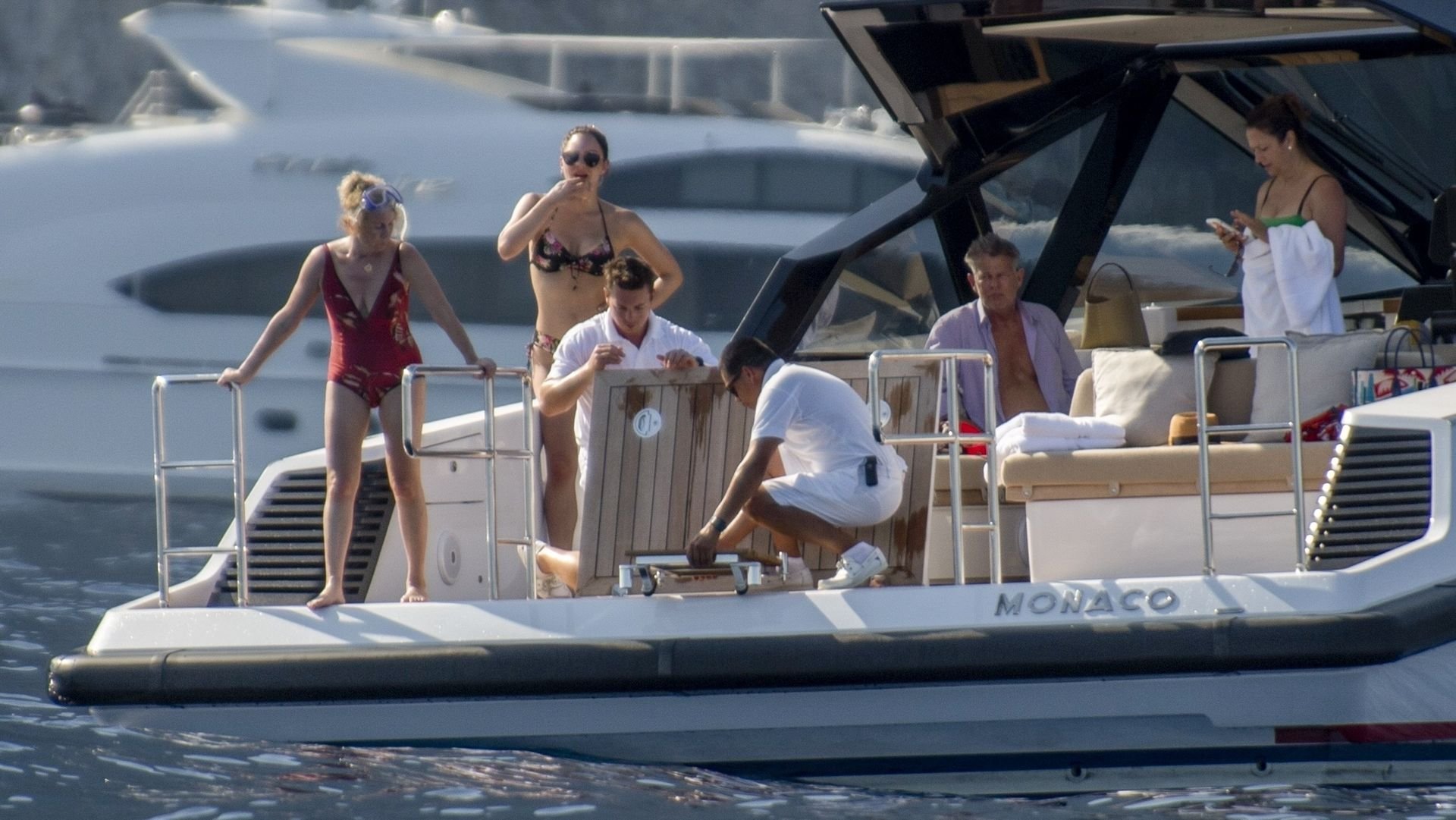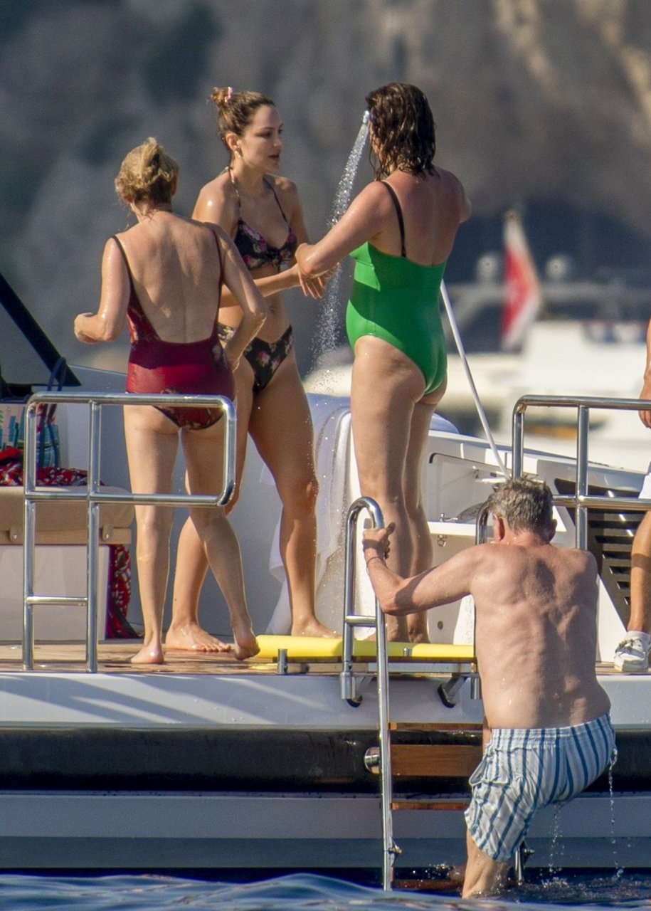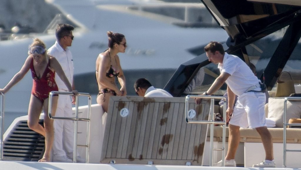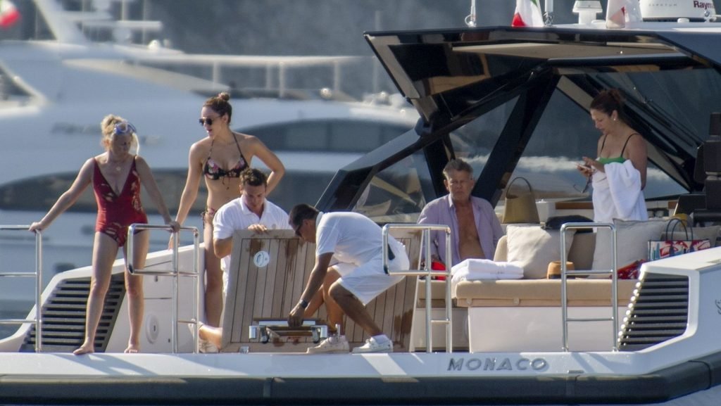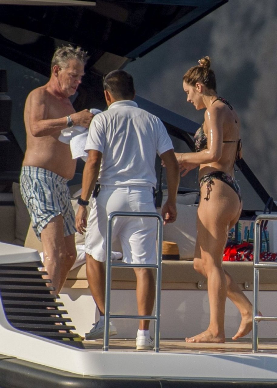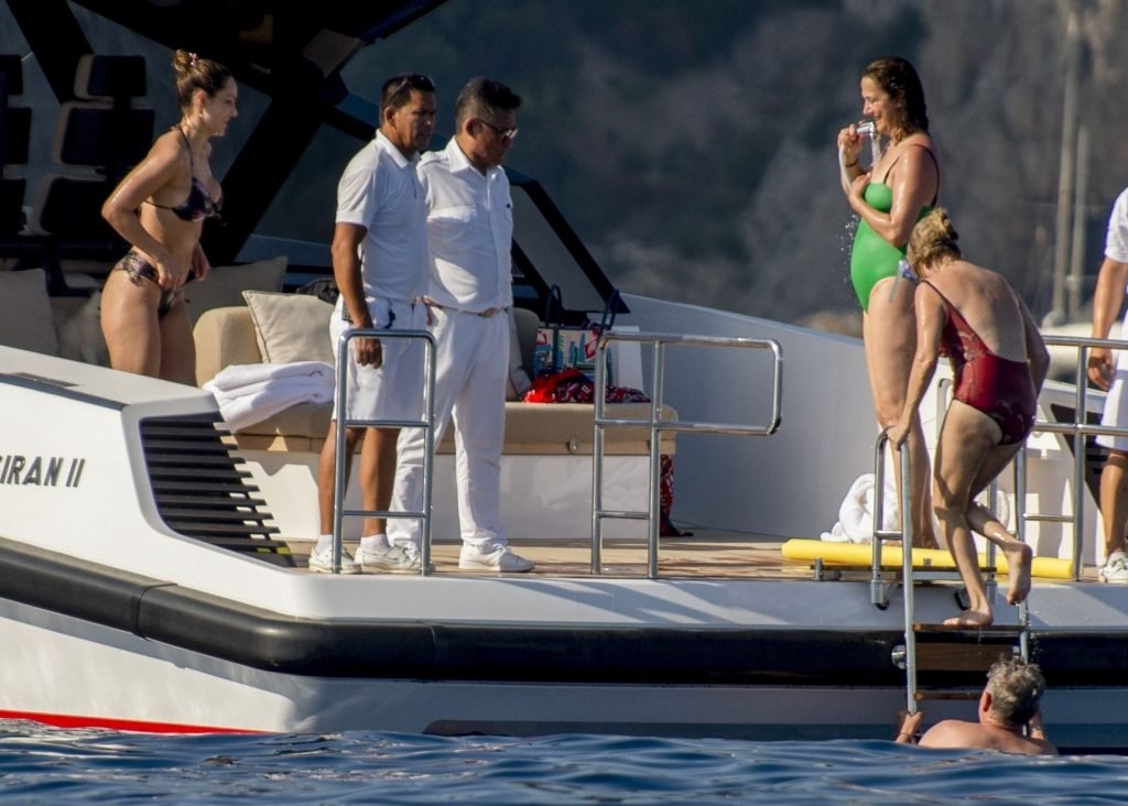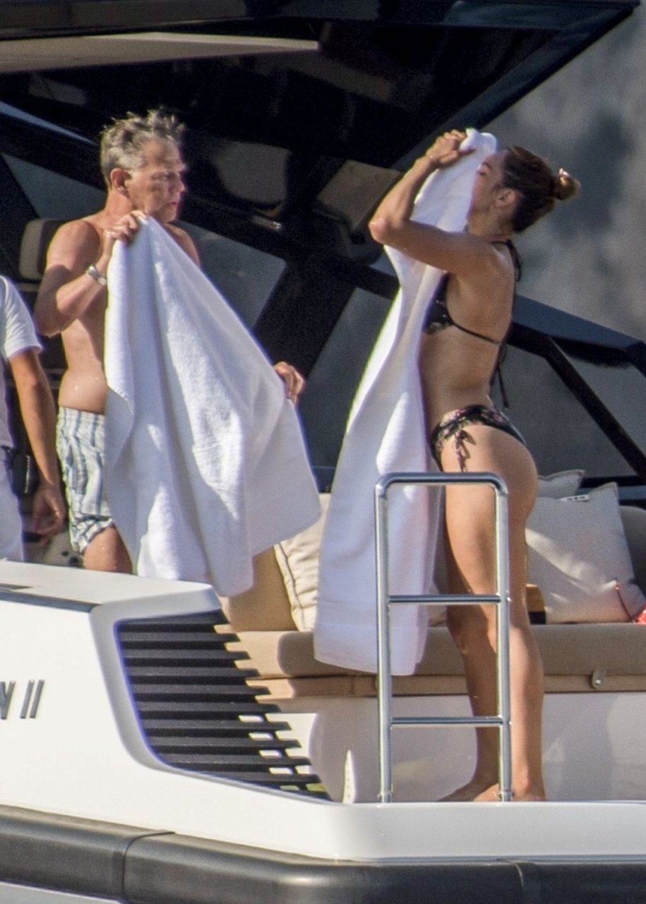 Les jeunes mariés Katharine McPhee et David Foster se baignent dans l’océan tout en se relaxant sur leur yacht pendant leur lune de miel à Capri, 03/07/2019.