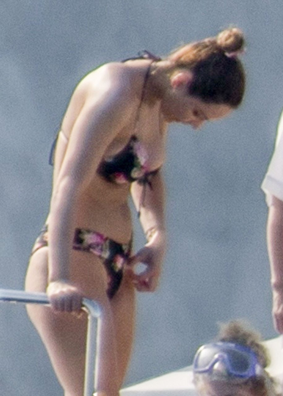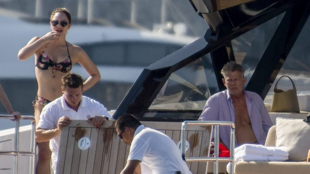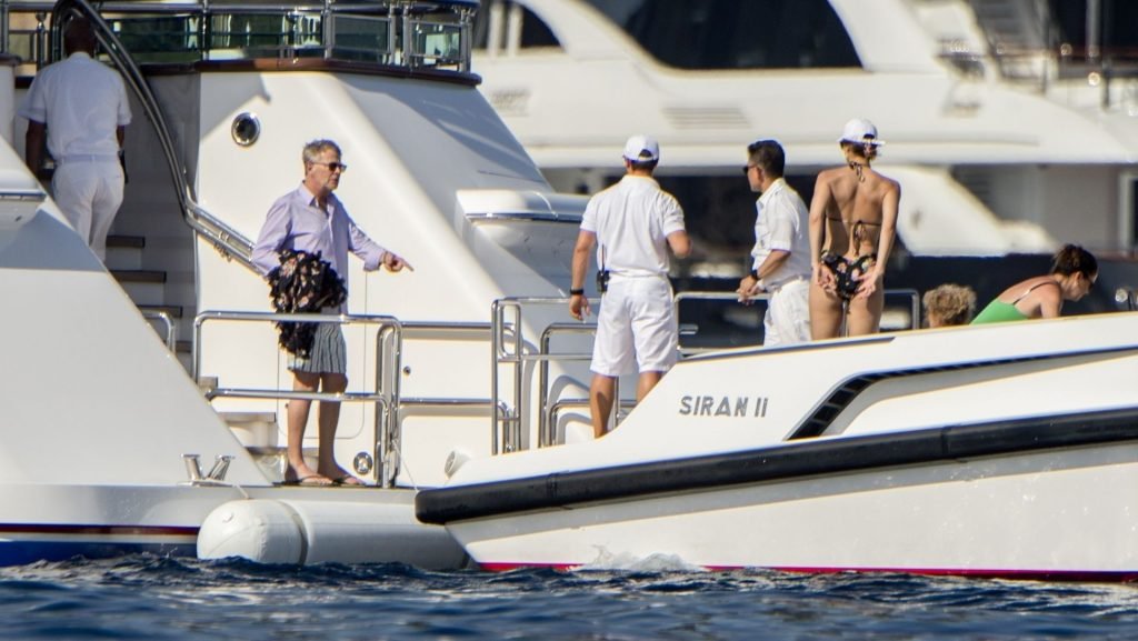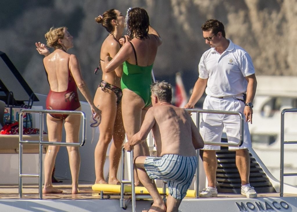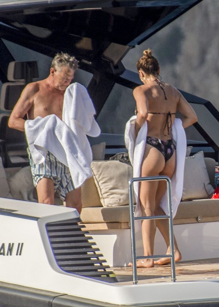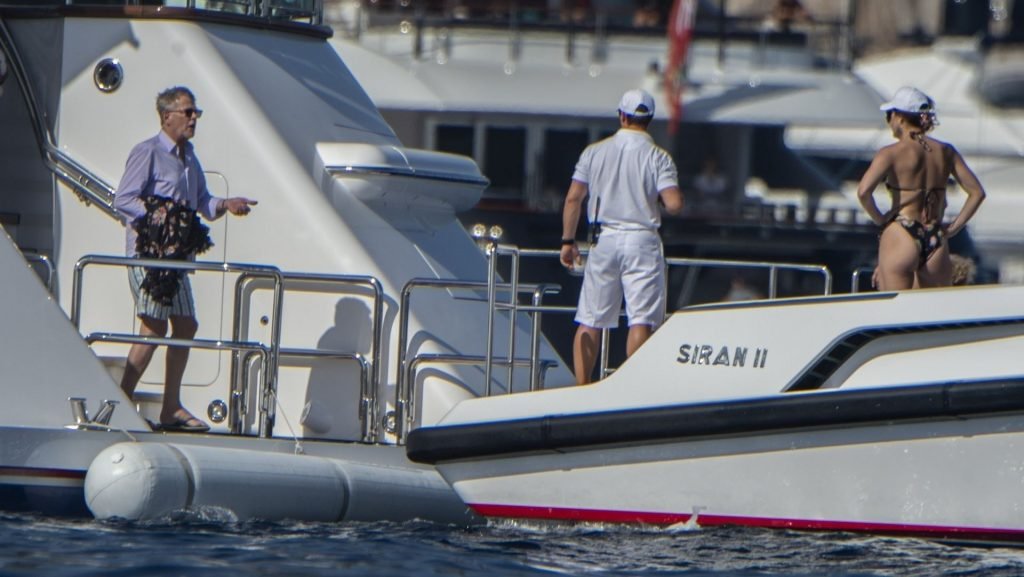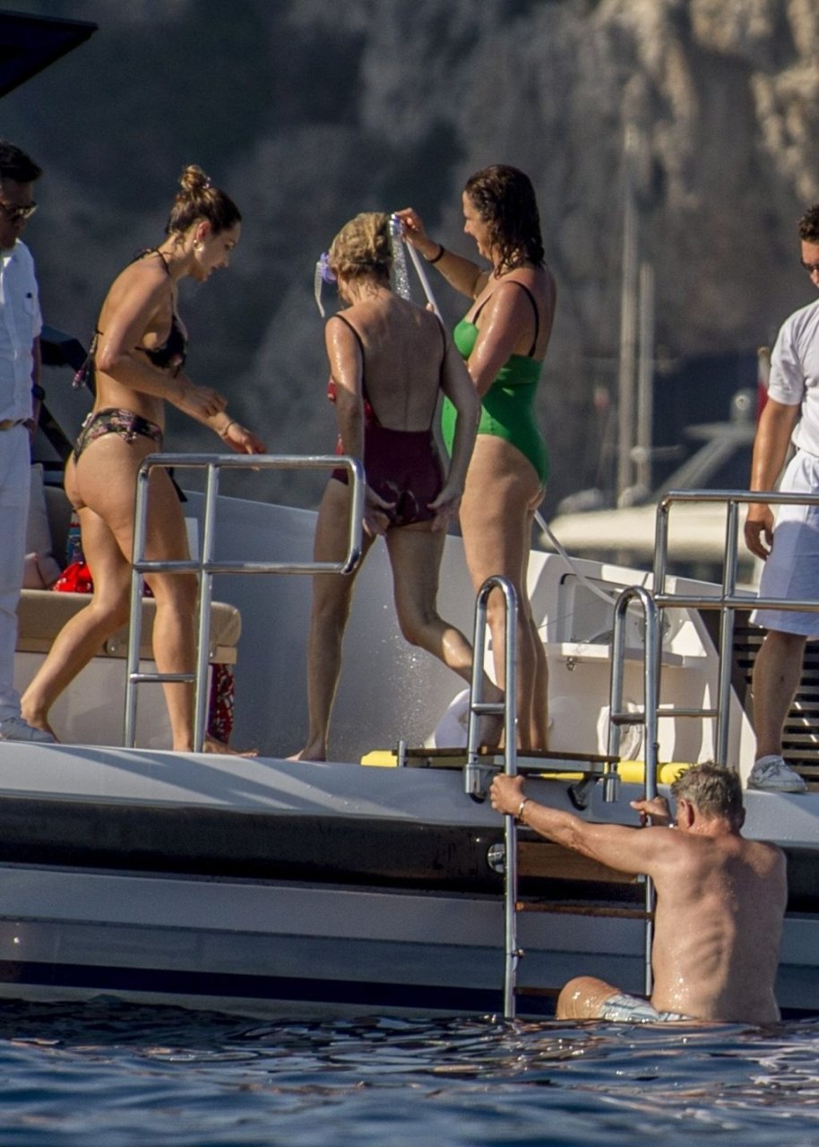 Les jeunes mariés Katharine McPhee et David Foster se baignent dans l’océan tout en se relaxant sur leur yacht pendant leur lune de miel à Capri, 03/07/2019.