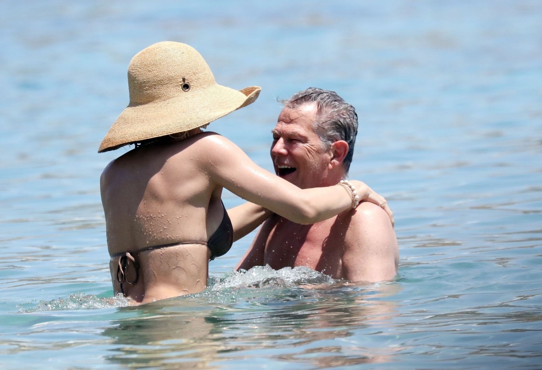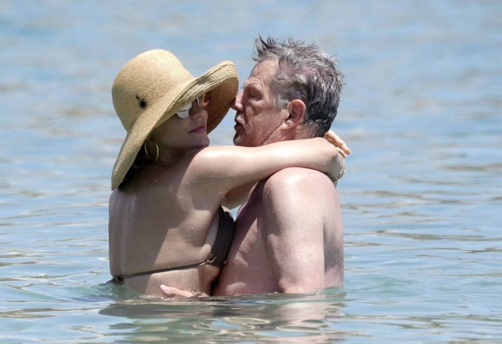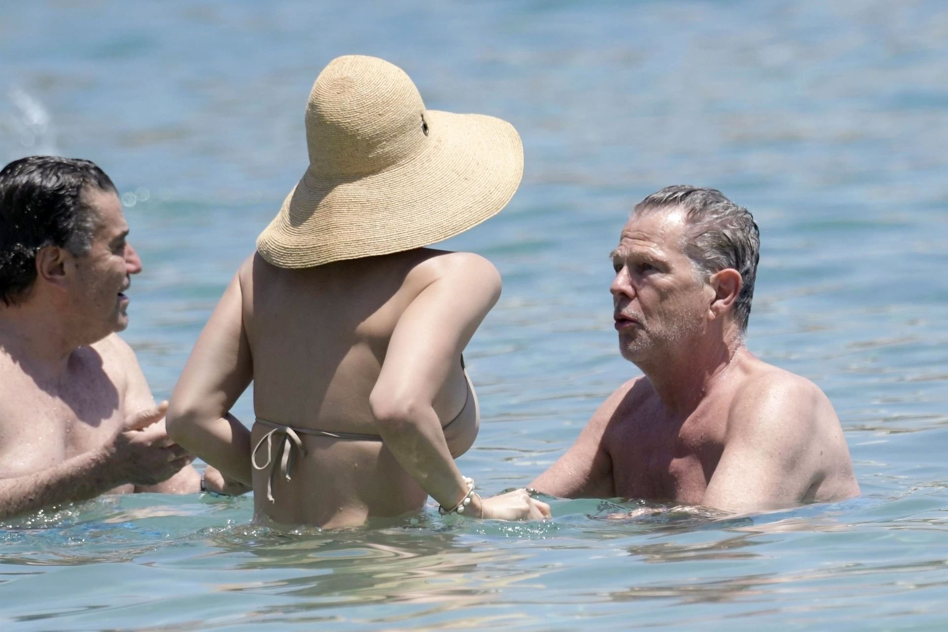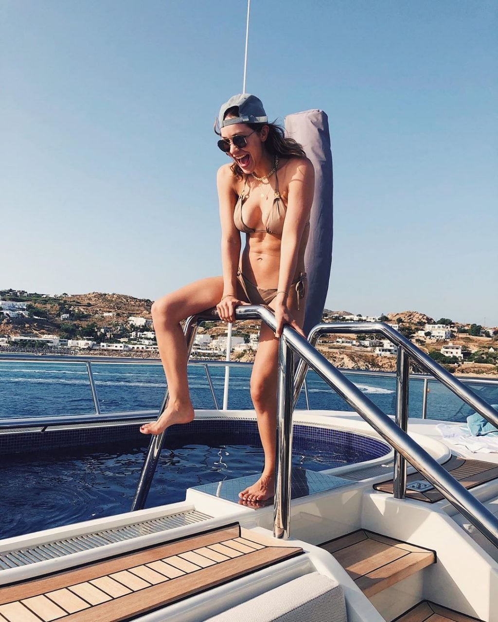 Actrice américaine, chanteuse et star de The Fappening Katharine McPhee photographiée montrant son corps de plage dans un bikini beige sexy tout en profitant d’une escapade pré-nuptiale avec son fiancé David Foster à Mykonos, 24/06/2019.