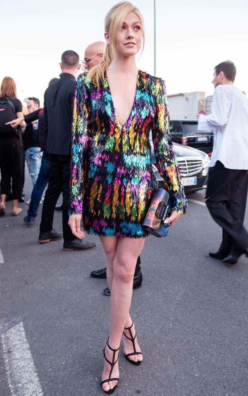 Katherine McNamara, aux longues jambes, a été vue arrivant au défilé DSquared2 Printemps/Été 2020 Homme lors de la Fashion Week de Milan, vêtue d’un look Dsquared de la tête aux pieds – Milan, Italie, 16/06/2019.