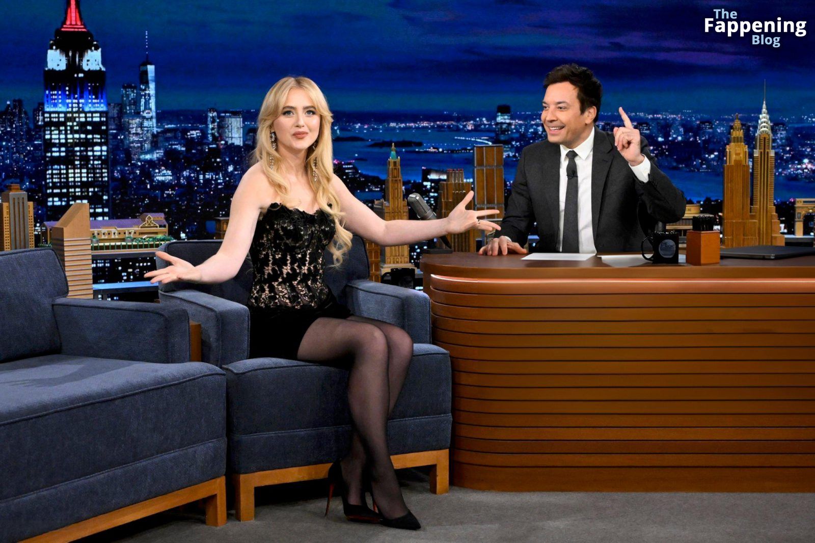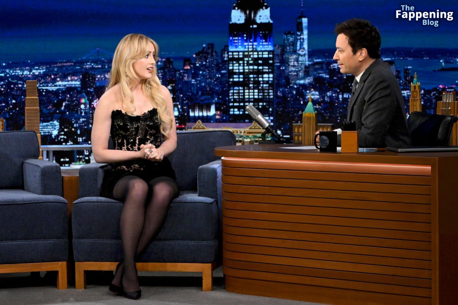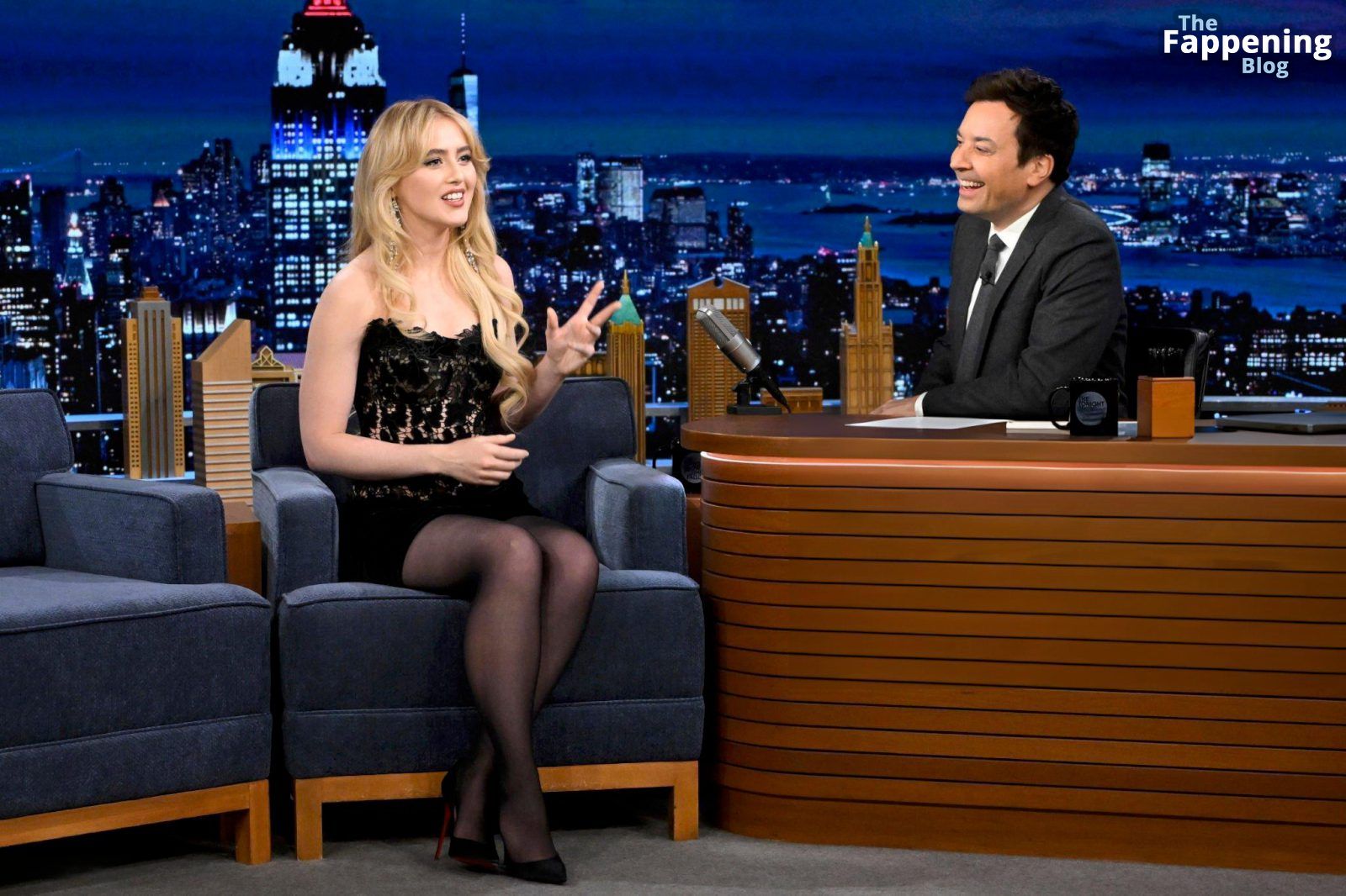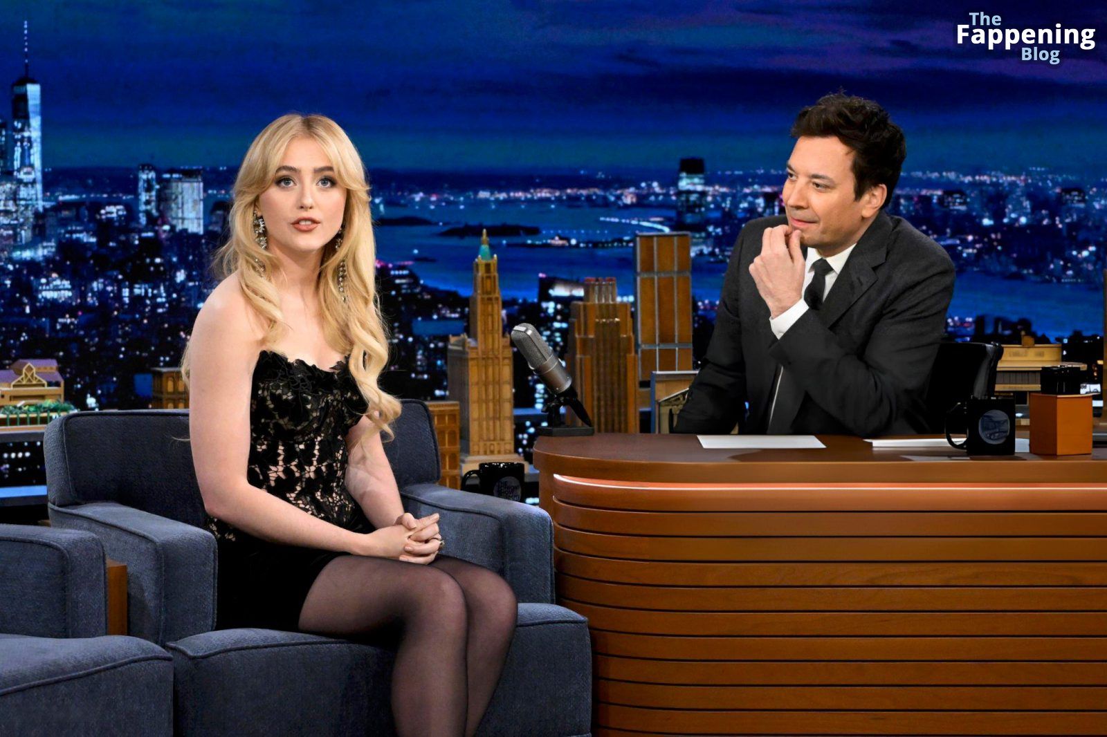 Découvrez le look incroyable de Kathryn Newton dans “The Tonight Show” – elle a arboré une mini-robe et des bas noirs pour un style ultra glamour.