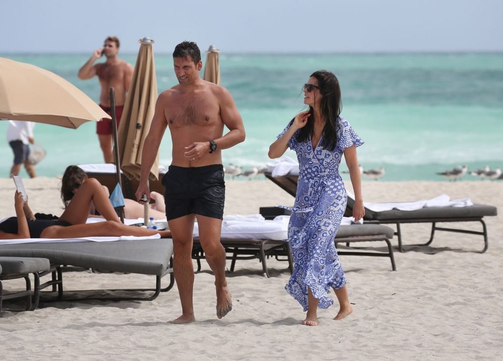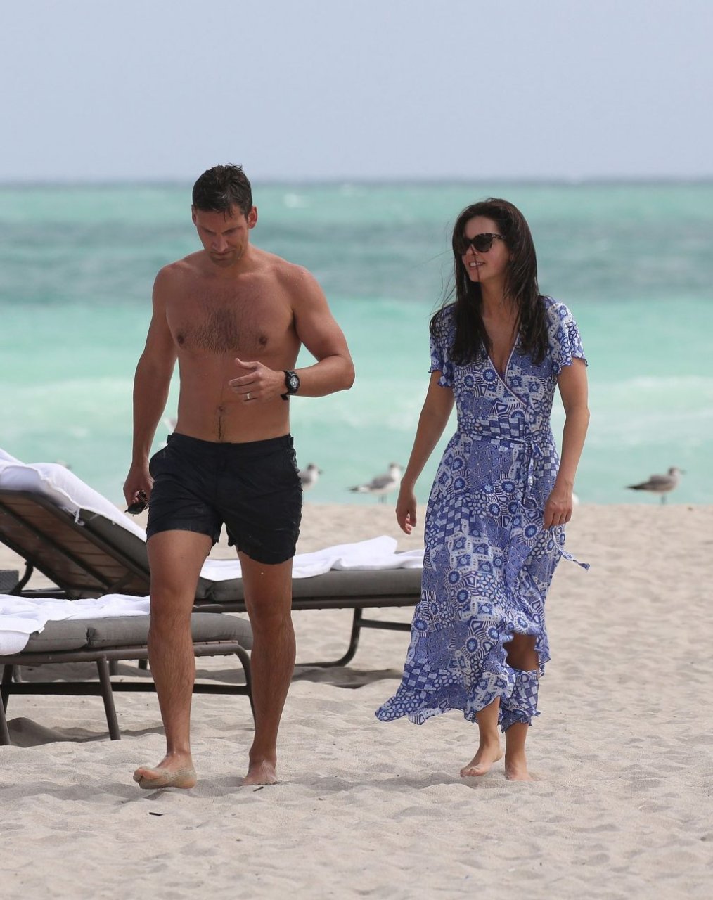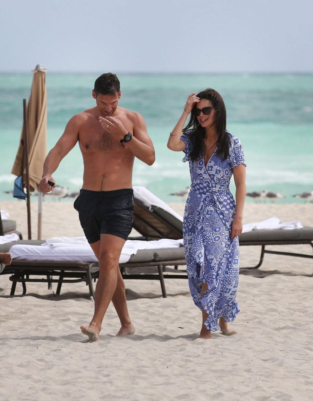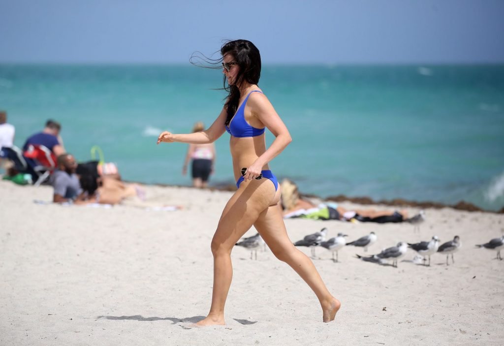 La célèbre chef Katie Lee porte un bikini bleu sur la plage avec son petit ami Ryan Biegel à Miami lors du South Beach Wine & Food Festival, 23/02/2019.