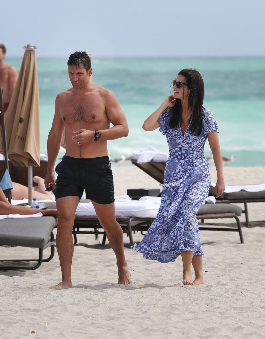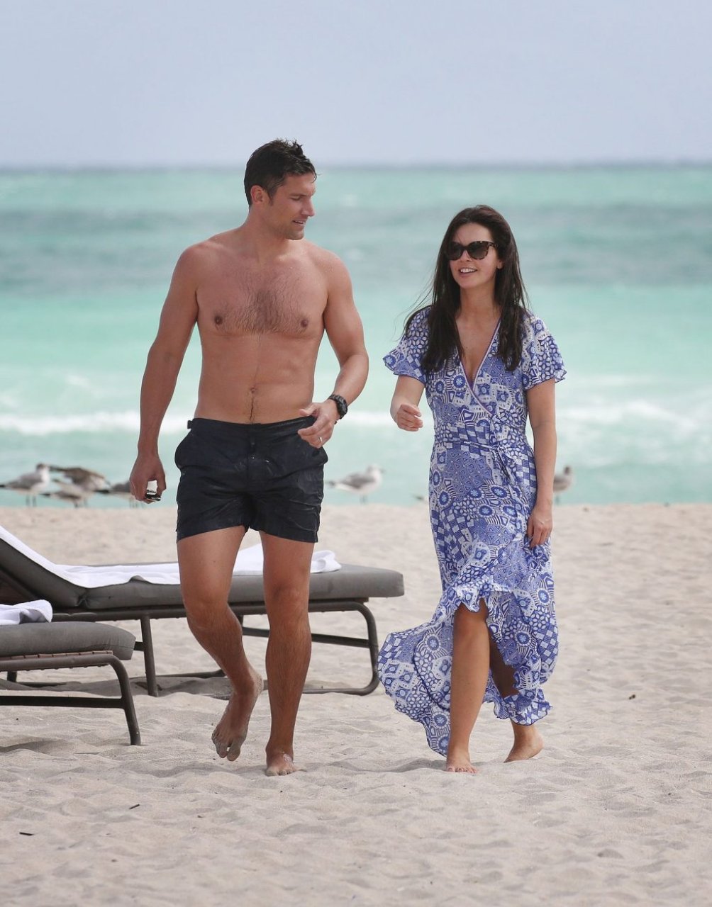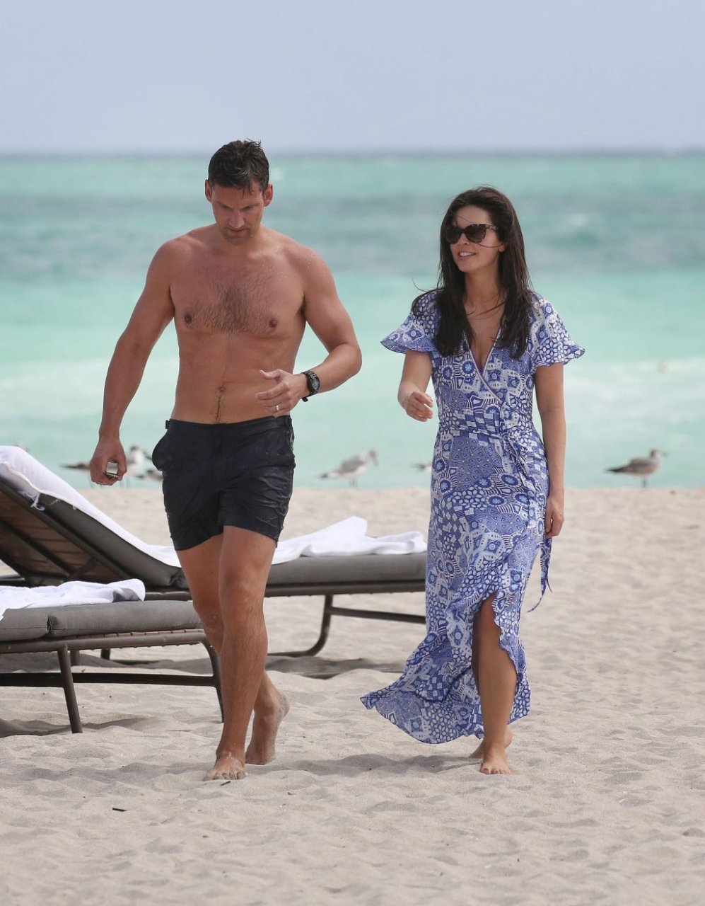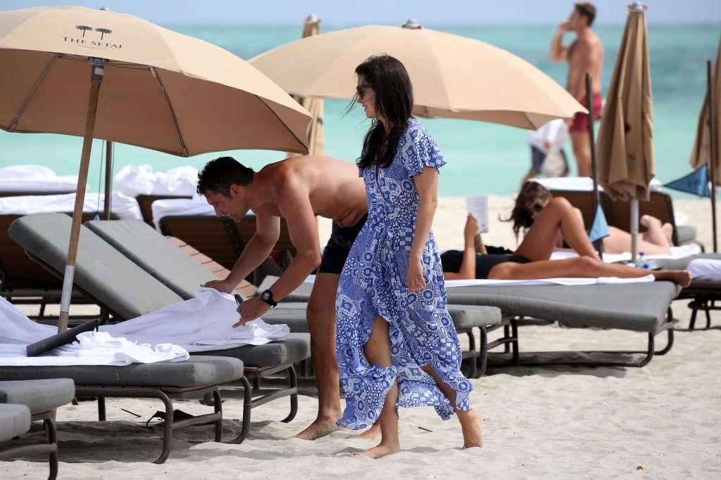 La célèbre chef Katie Lee porte un bikini bleu sur la plage avec son petit ami Ryan Biegel à Miami lors du South Beach Wine & Food Festival, 23/02/2019.