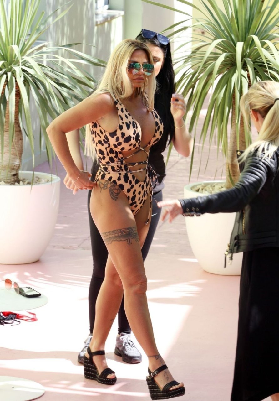 Le mannequin glamour Katie Price (Jordan) a été vue incarnant ses instincts animaux dans un bikini sexy à imprimé léopard lors du shooting de sa nouvelle collection d’été à Majorque avec la marque de vêtements JYY London, lancement prévu fin avril.