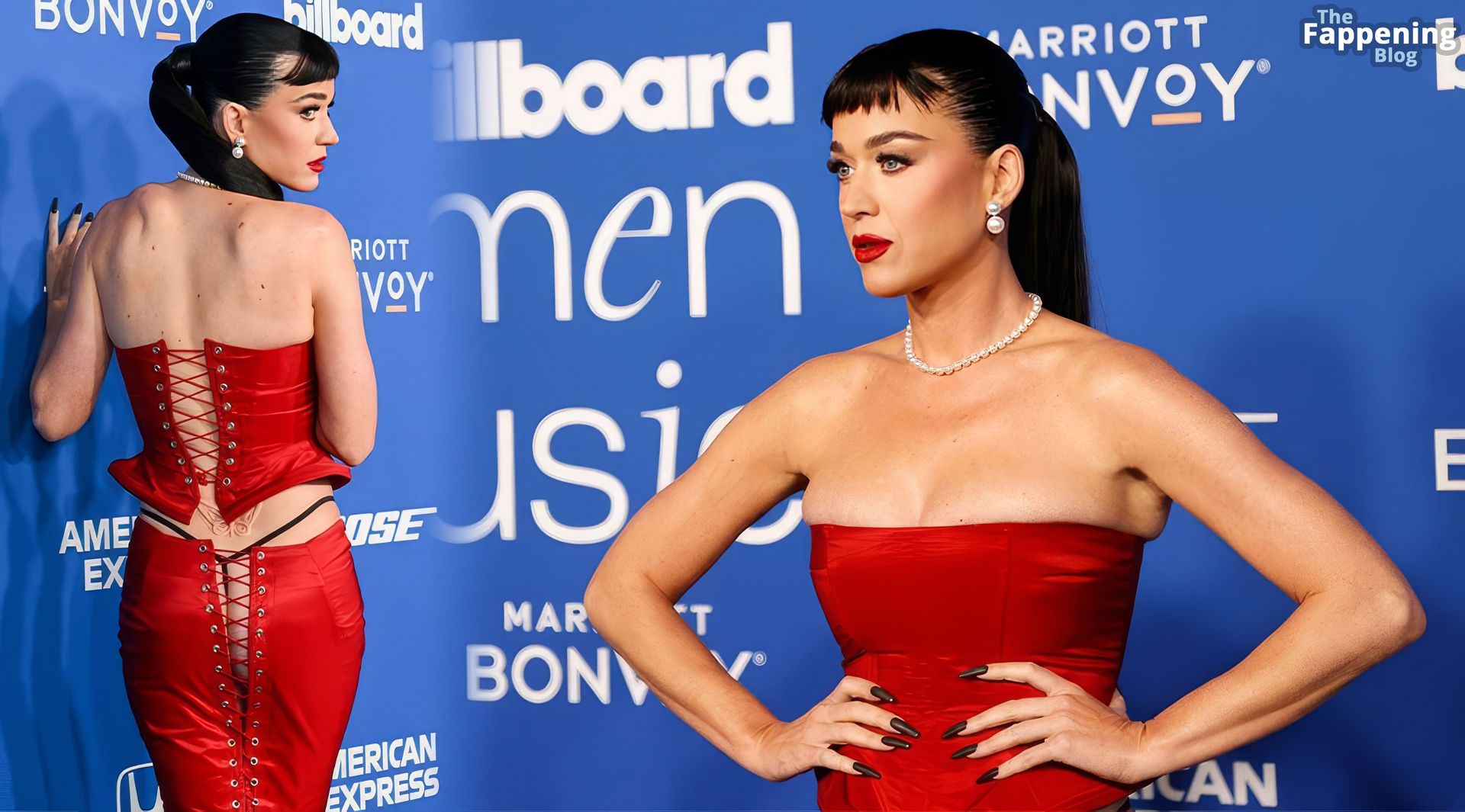 Découvrez les beaux moments où Katy Perry attire tous les regards avec son audacieuse culotte ficelle et exhibe ses fesses nues lors des Billboard Women in Music Awards.