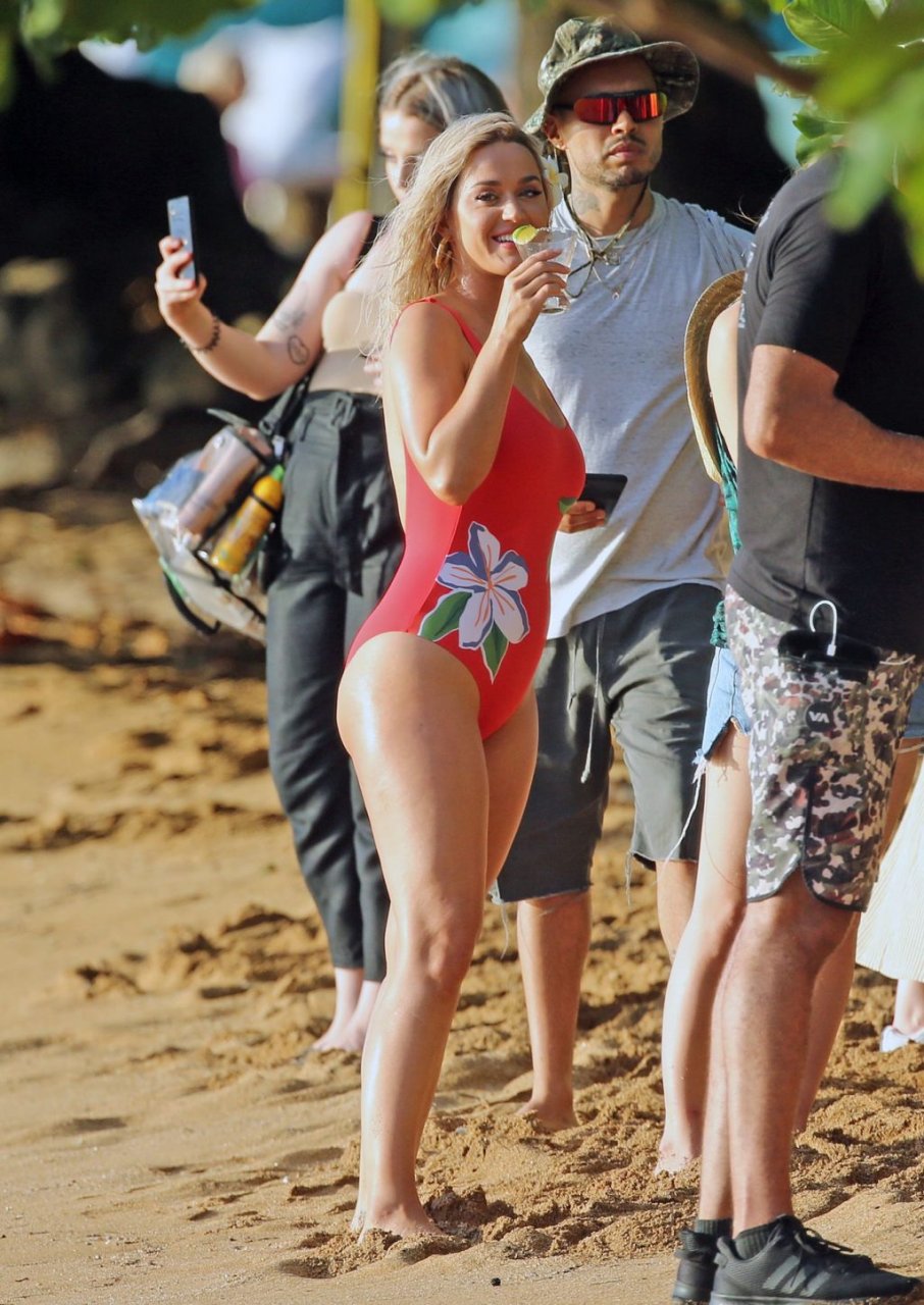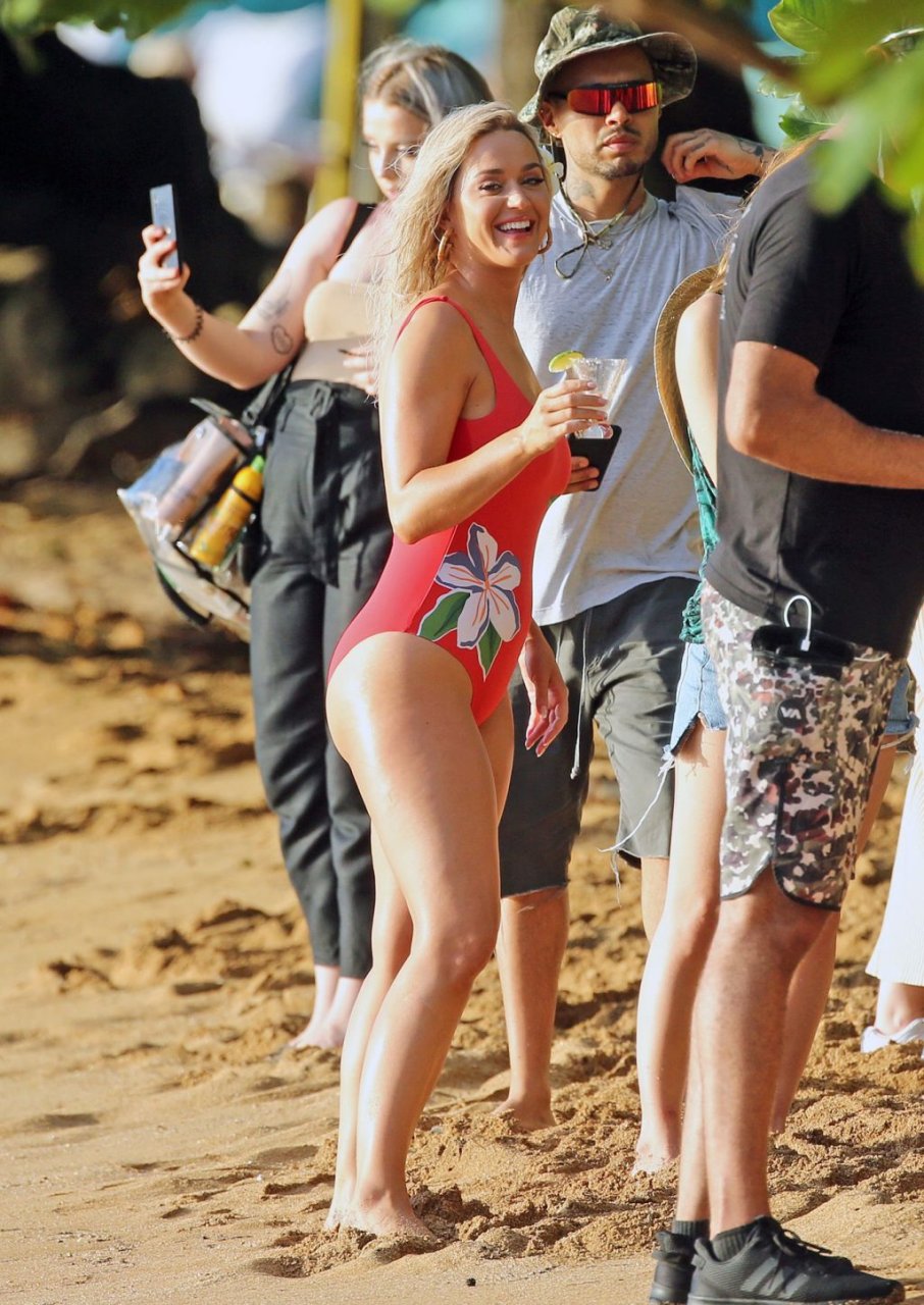 La chanteuse Katy Perry (34 ans) a été photographiée en maillot de bain rouge lors du tournage d’un nouveau clip vidéo sur la plage à Hawaï, le 02/07/2019.