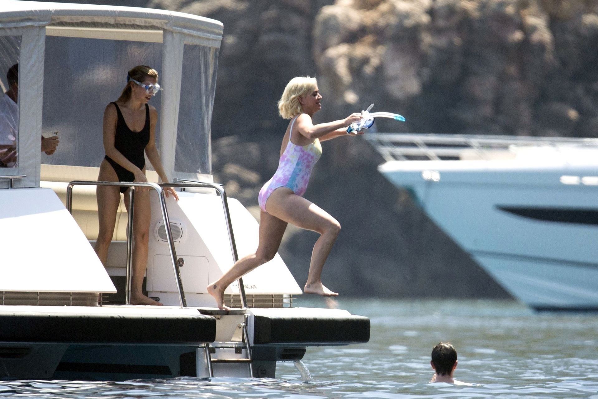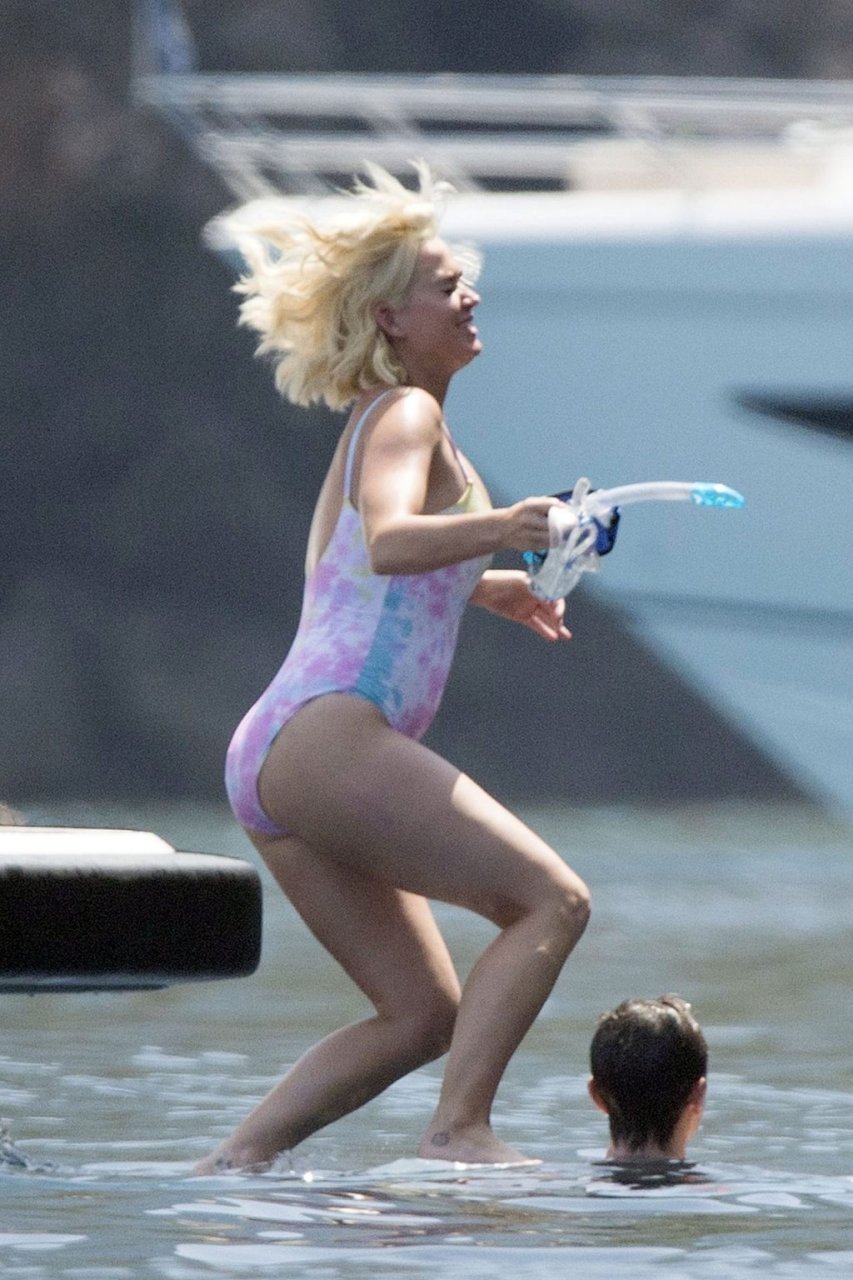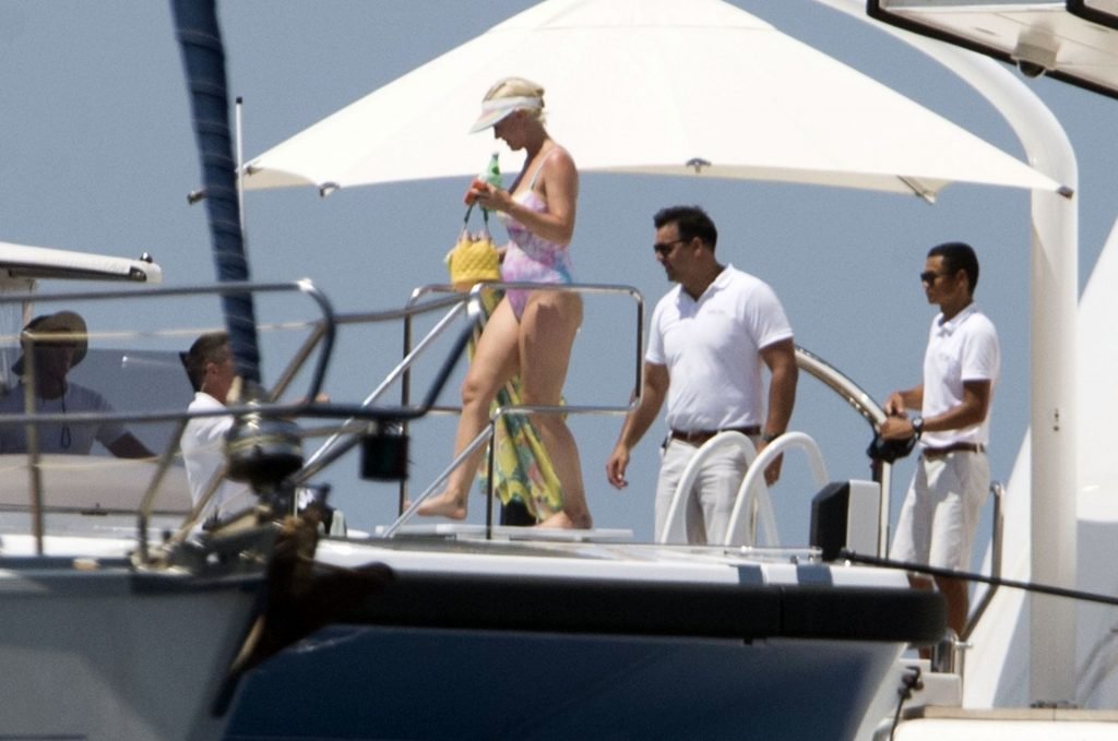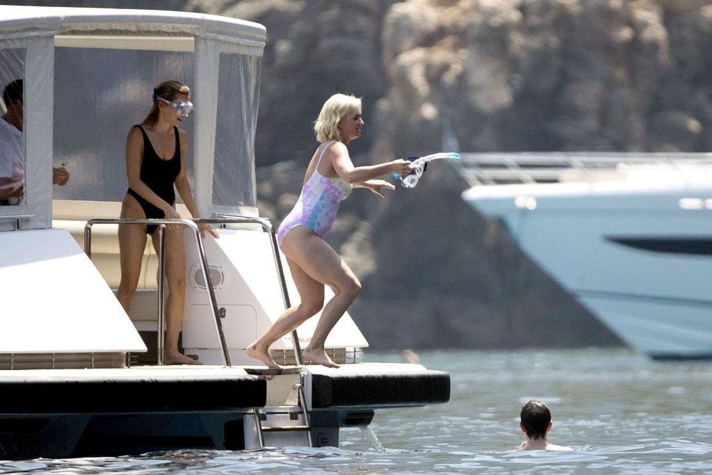 Avec des températures élevées dues à une vague de chaleur qui frappe l’Europe et la côte espagnole, le couple a été aperçu à bord de leur méga yacht de luxe en Méditerranée, Katy portant son maillot de bain multicolore, s’amusant à plonger du bateau et à se rafraîchir en prenant un bain de mer, accompagnée de Dasha Zhukova et de son partenaire Stavros Niarchos.