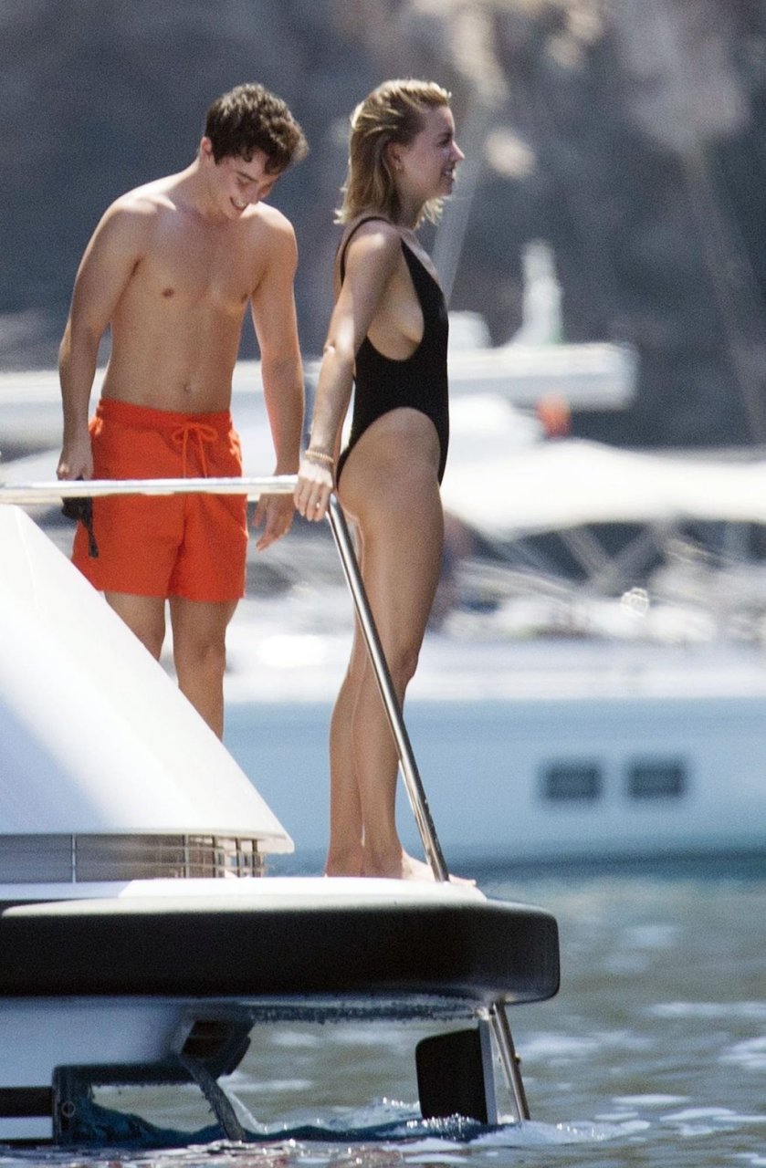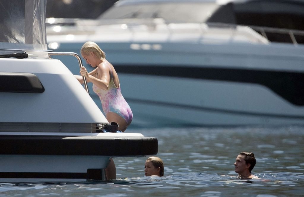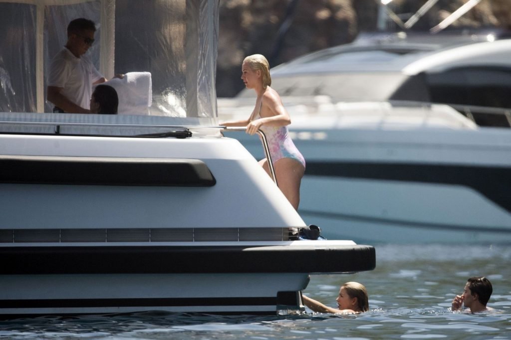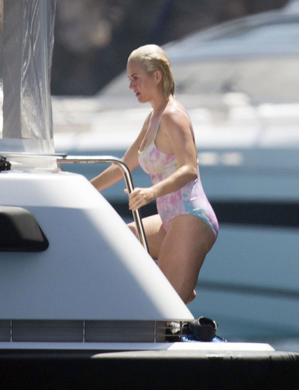 Avec des températures élevées dues à une vague de chaleur qui frappe l’Europe et la côte espagnole, le couple a été aperçu à bord de leur méga yacht de luxe en Méditerranée, Katy portant son maillot de bain multicolore, s’amusant à plonger du bateau et à se rafraîchir en prenant un bain de mer, accompagnée de Dasha Zhukova et de son partenaire Stavros Niarchos.