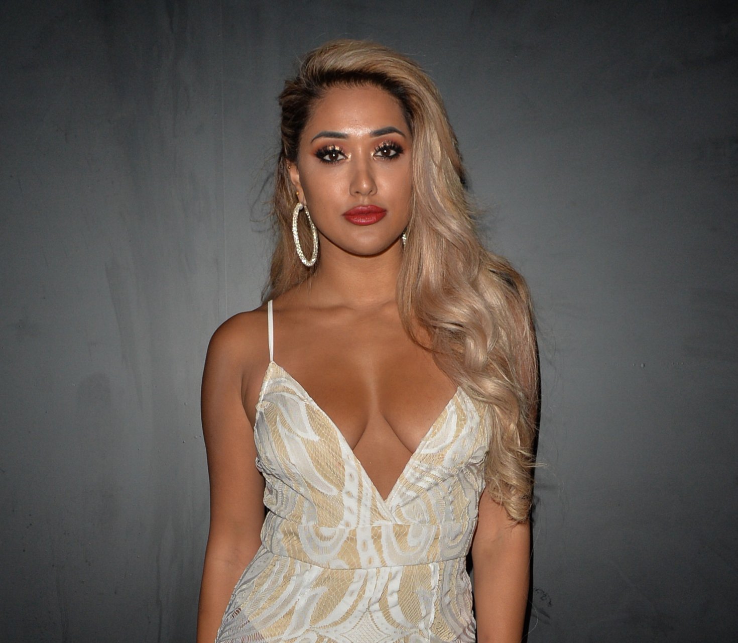 La blonde en bikini rose ressemble à une Ariana Grande plus pulpeuse.