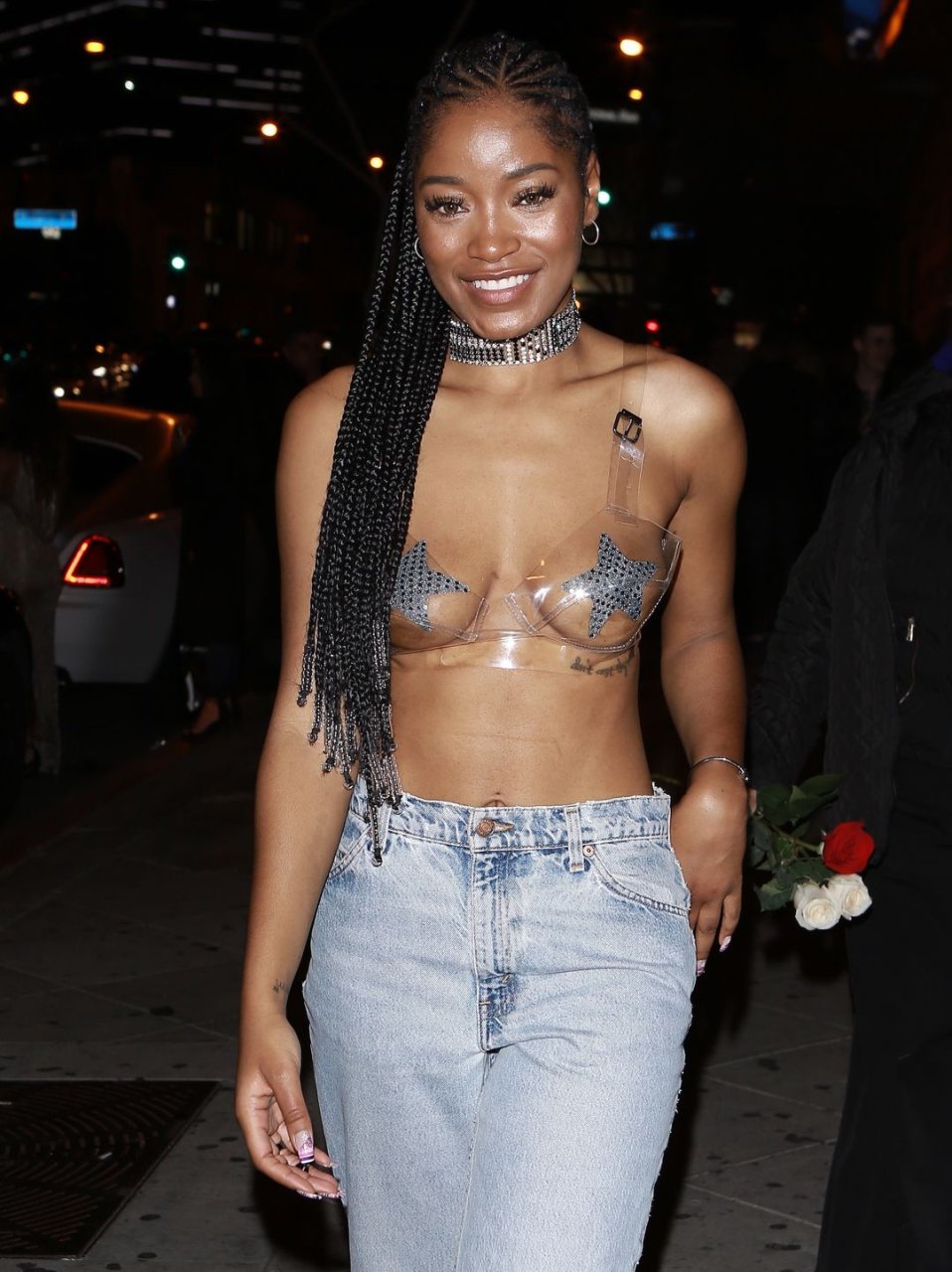 Keke Palmer porte un soutien-gorge en plastique avec des pasties en forme d’étoile au 1 Oak à West Hollywood, 17/01/2017. Lauren Keyana « Keke » Palmer est une chanteuse, auteure-compositrice, actrice (Raymond & Lane (série TV)) et personnalité télévisée originaire de Harvey, IL. Âge : 23 ans (née le 26 août 1993).