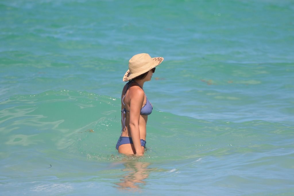Keleigh Sperry porte un bikini bleu sur la plage de Miami, 09/07/2017. Keleigh Sperry est un mannequin américain, la petite amie de Miles Teller. Âge : 24 ans.