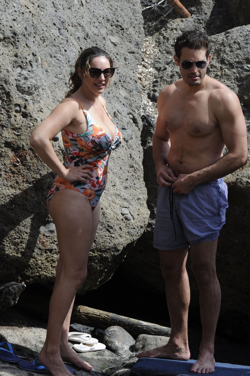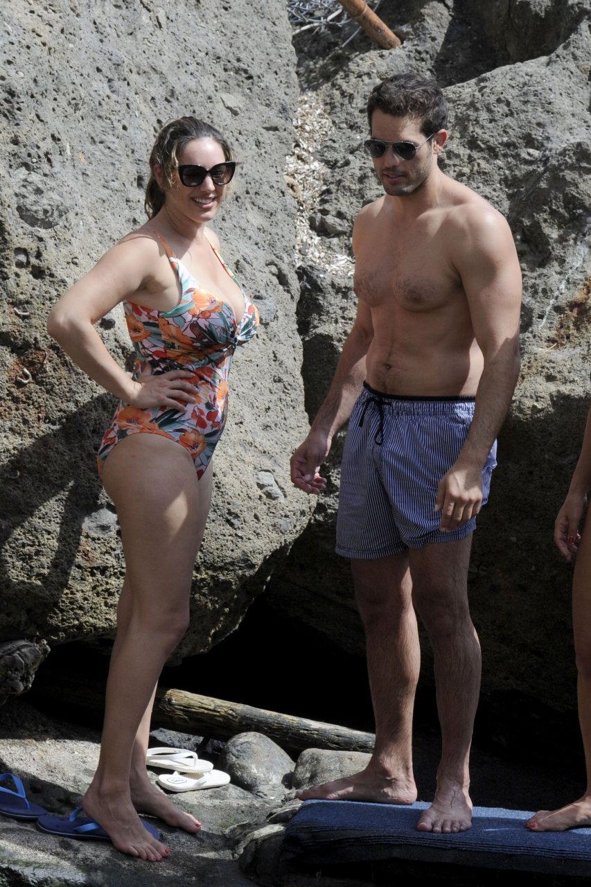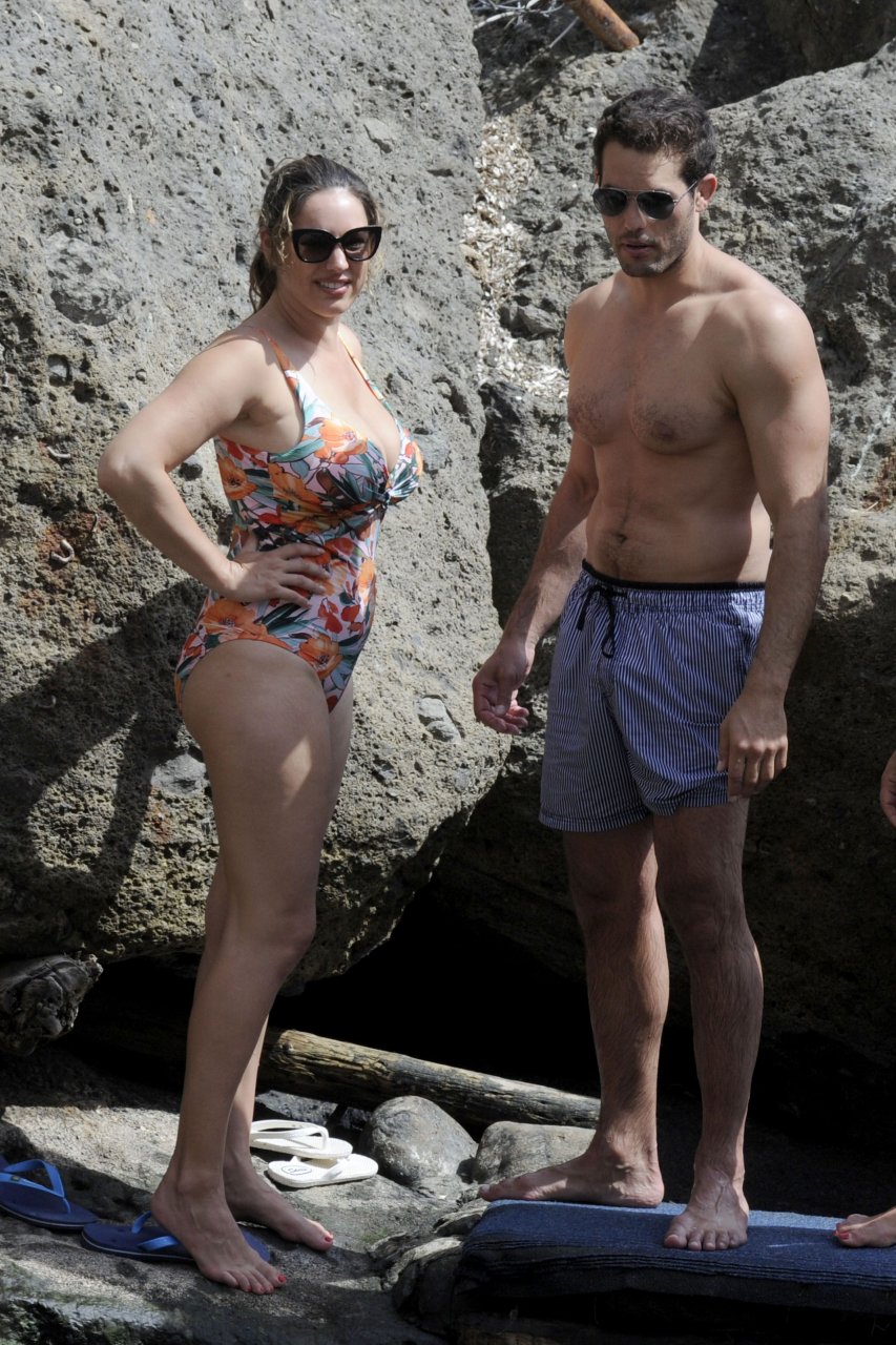 Kelly Brook portant un maillot de bain à Ischia, 16/07/2016. Bombe pulpeuse ! Kelly Brook est un mannequin, actrice et animatrice de télévision anglaise. Âge : 36 ans (23 novembre 1979).