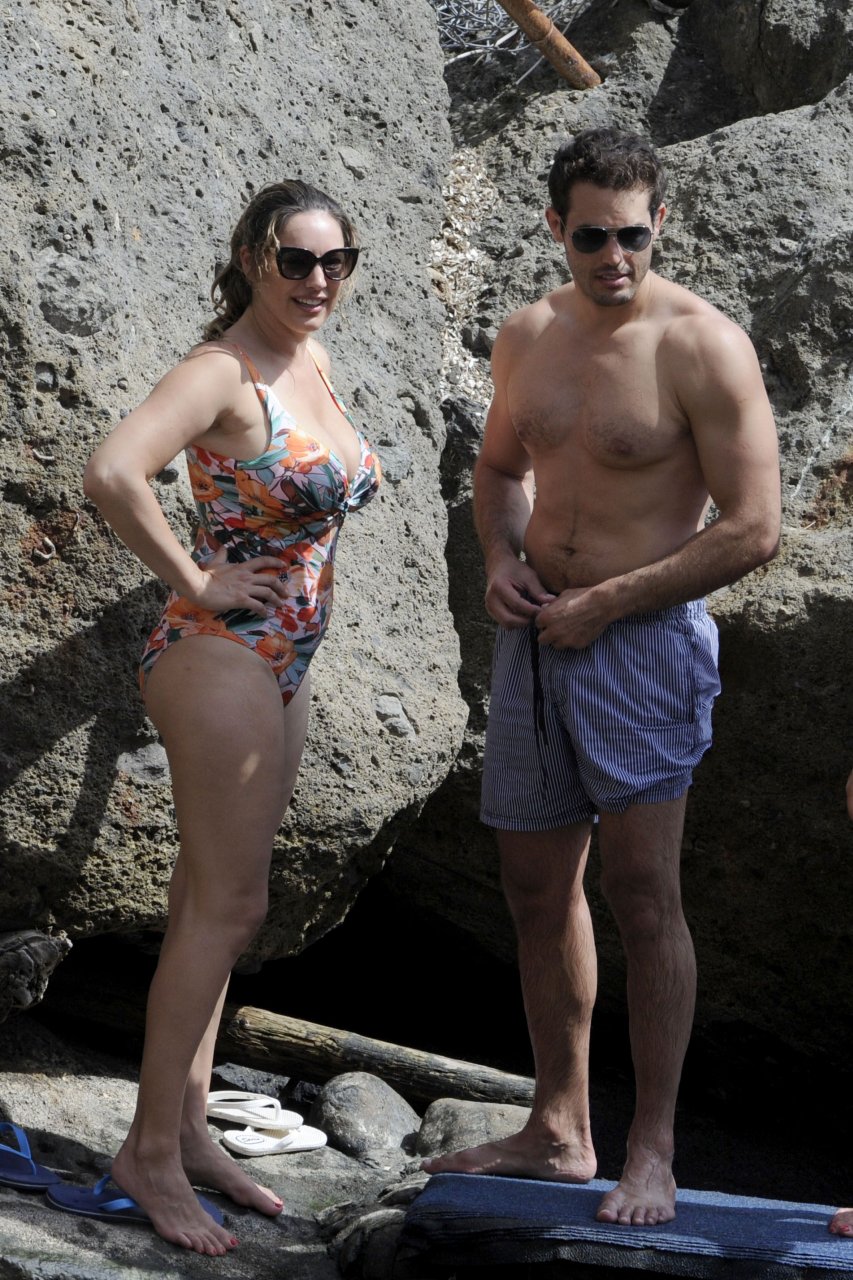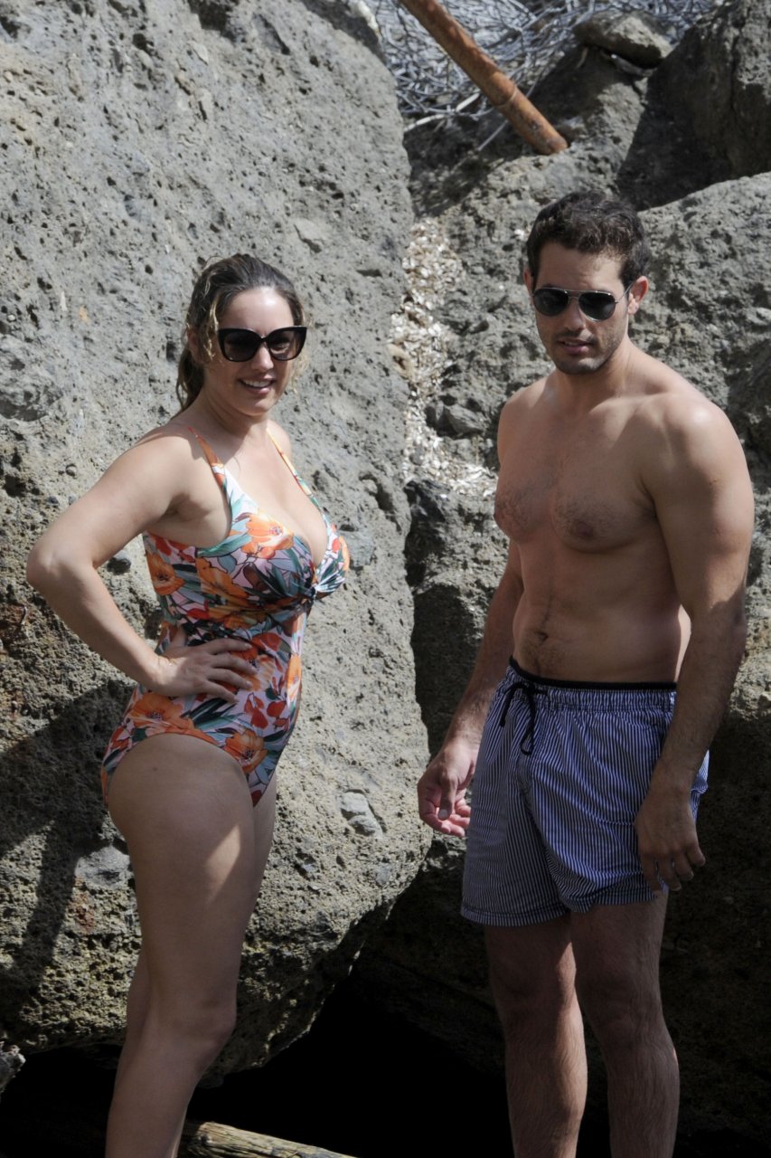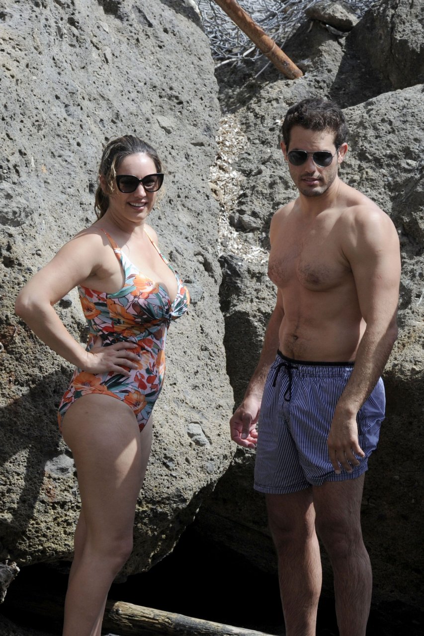 Kelly Brook portant un maillot de bain à Ischia, 16/07/2016. Bombe pulpeuse ! Kelly Brook est un mannequin, actrice et animatrice de télévision anglaise. Âge : 36 ans (23 novembre 1979).