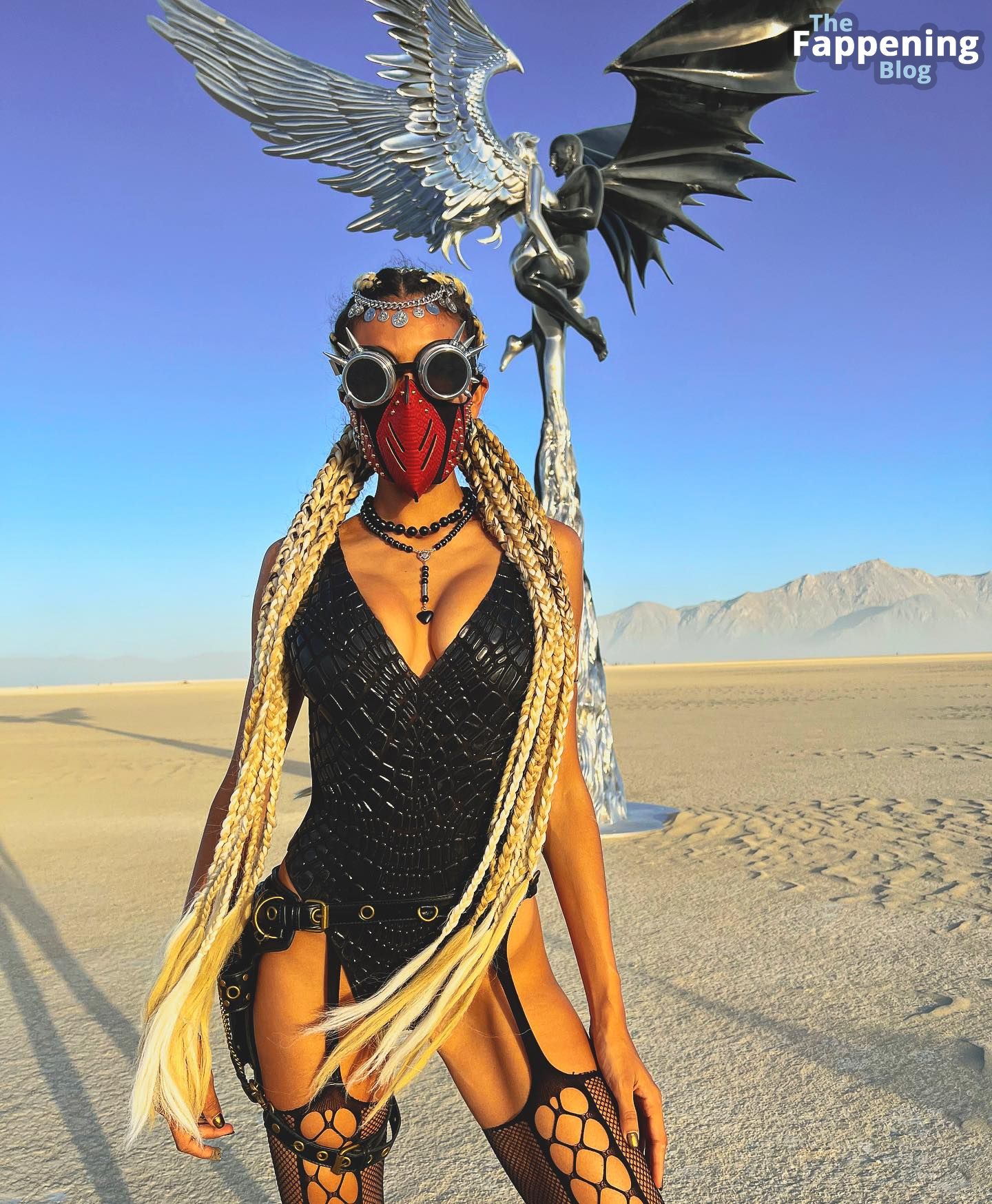 Découvrez les nouvelles photos époustouflantes du festival Burning Man mettant en vedette la reine du mannequinat Kelly Gale. Elle profite pleinement de ce célèbre extravaganza d’art et d’expression de soi, et bon sang, elle arbore un style audacieux et ludique. Kelly Gale n’a pas peur de montrer un peu de peau, posant topless avec des autocollants brillants en forme d’étoiles qui couvrent à peine ses seins.