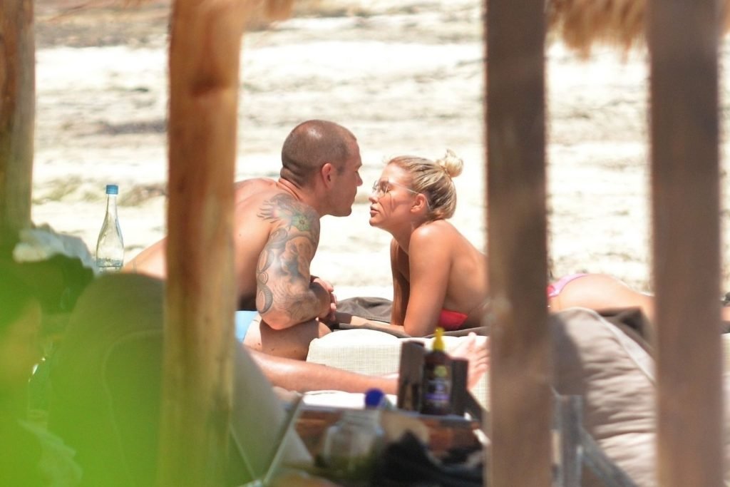 Le duo se détend au bord de la plage et partage même quelques démonstrations publiques d’affection romantiques alors qu’ils sont allongés sur le ventre et s’embrassent sur le sable. Cette journée idyllique à la plage survient après la séparation de Kelly Kelly avec son petit ami chanteur, Cole Swindell.