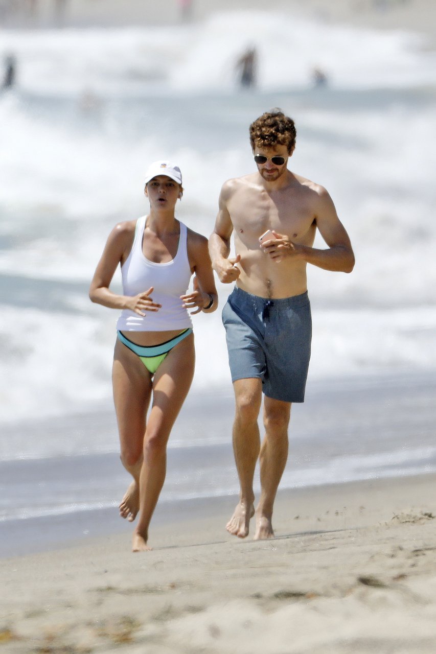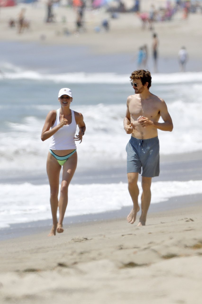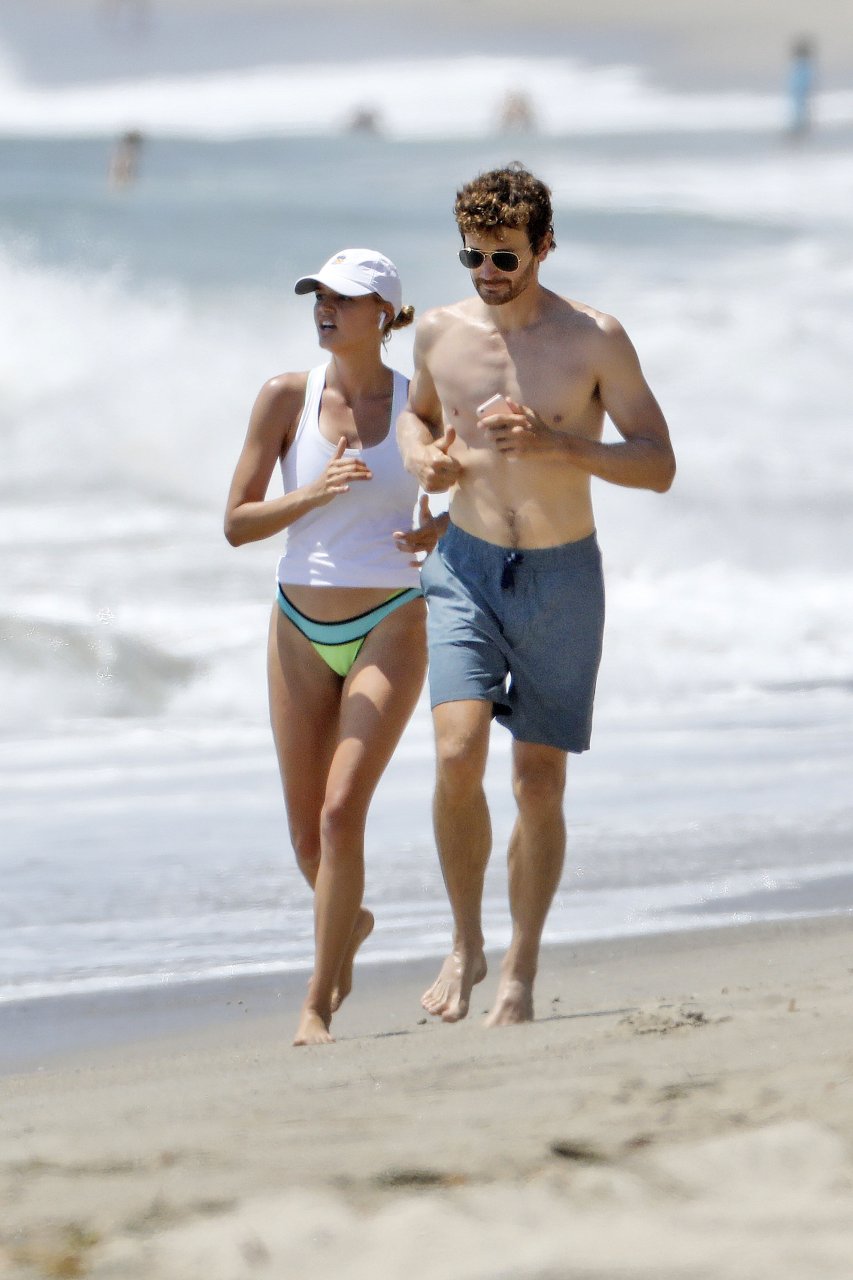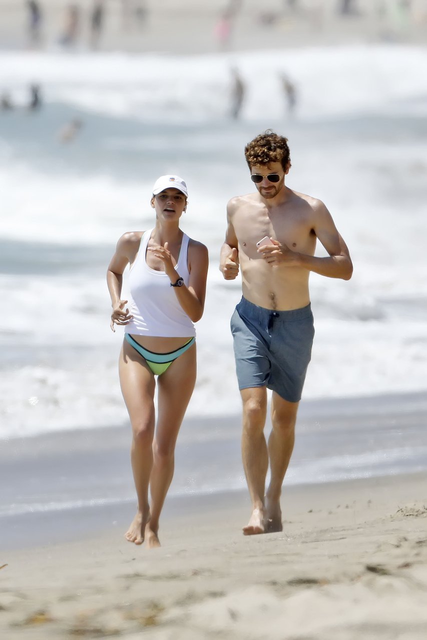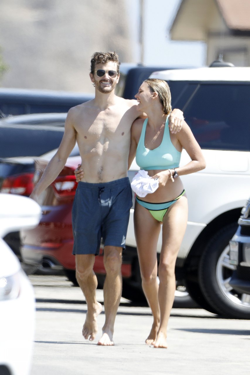 L’actrice et mannequin américaine Kelly Rohrbach (28 ans) emmène son petit ami Steuart Walton courir et prend une douche sexy en bikini sur la plage de Malibu, Californie, le 01/08/2018.